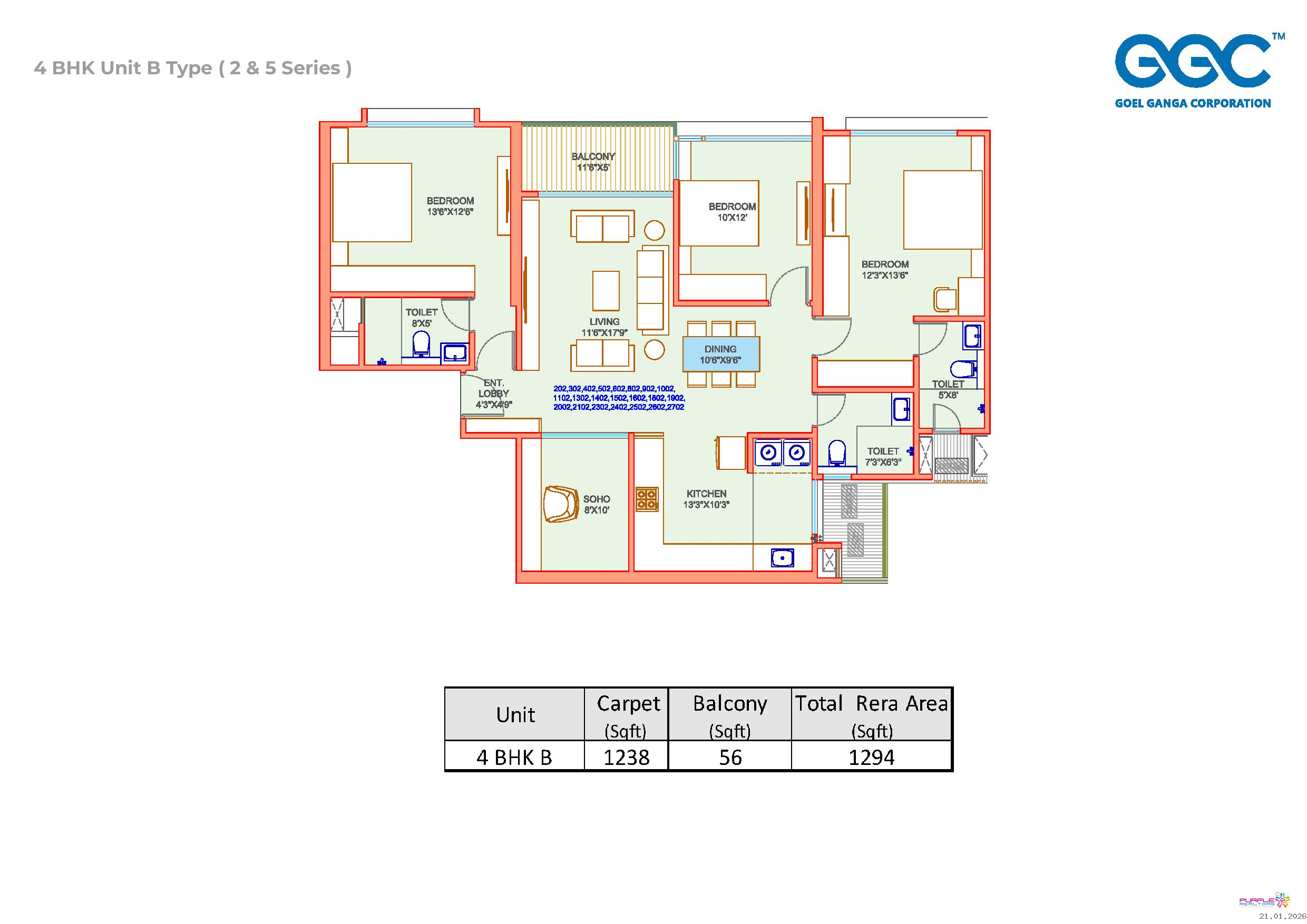 4 BHK – Carpet 1294 sq. ft. - 1.81 Cr Onwards