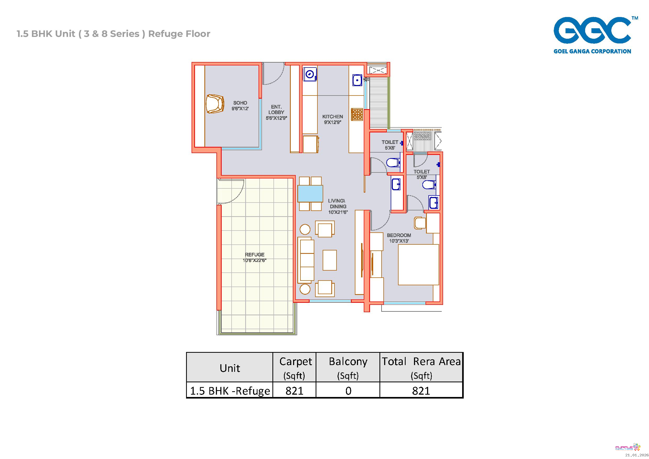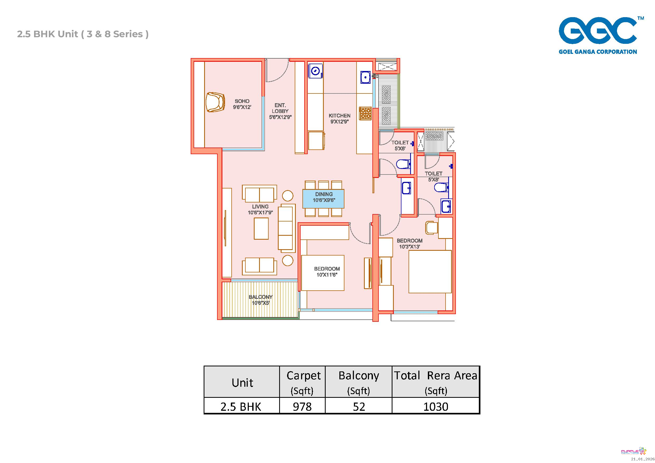2.5 BHK – Carpet 1030 sq. ft. - 1.44 cr Onwards