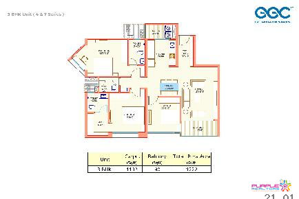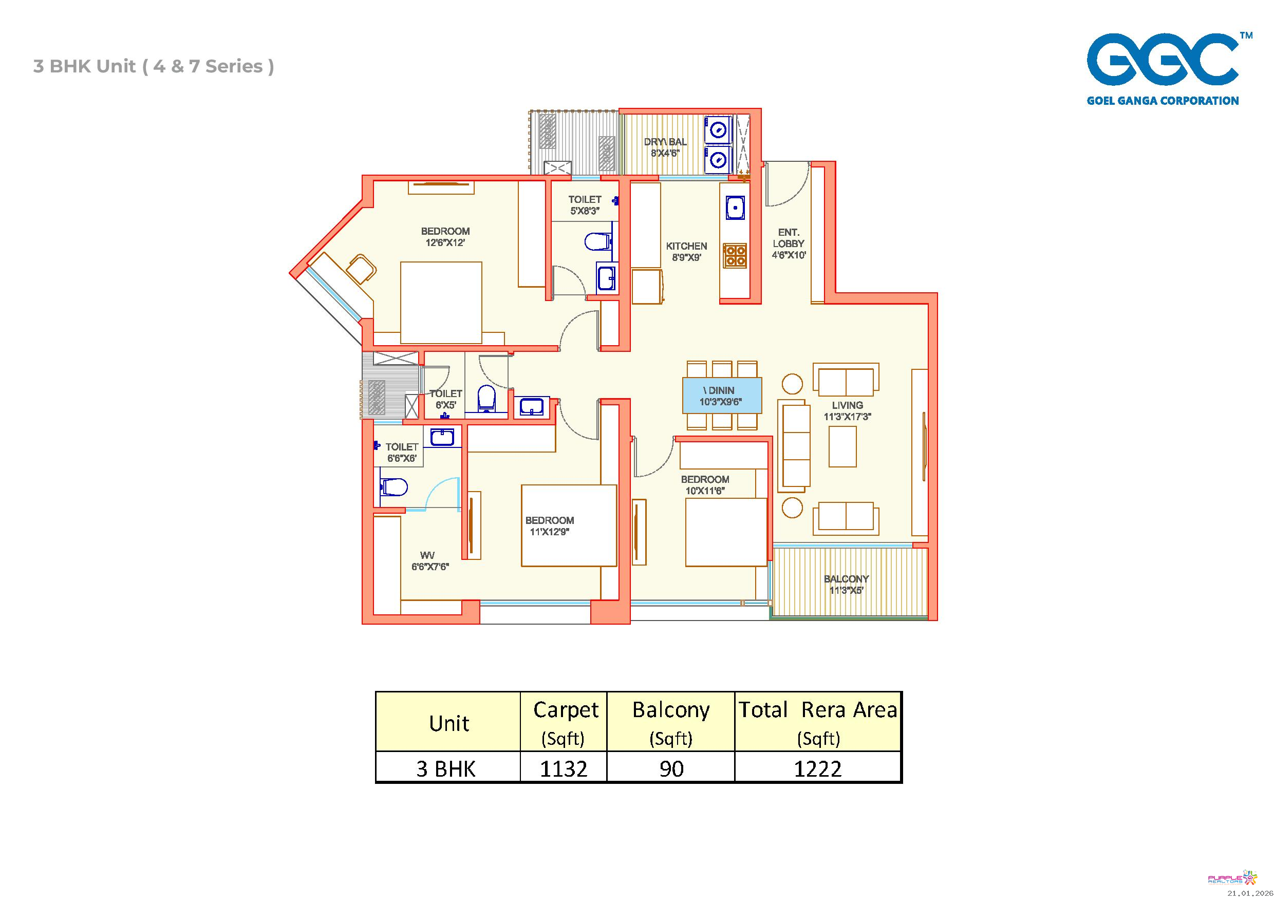 3 BHK – Carpet 1222 sq. ft .- 1.71 Cr Onwards
