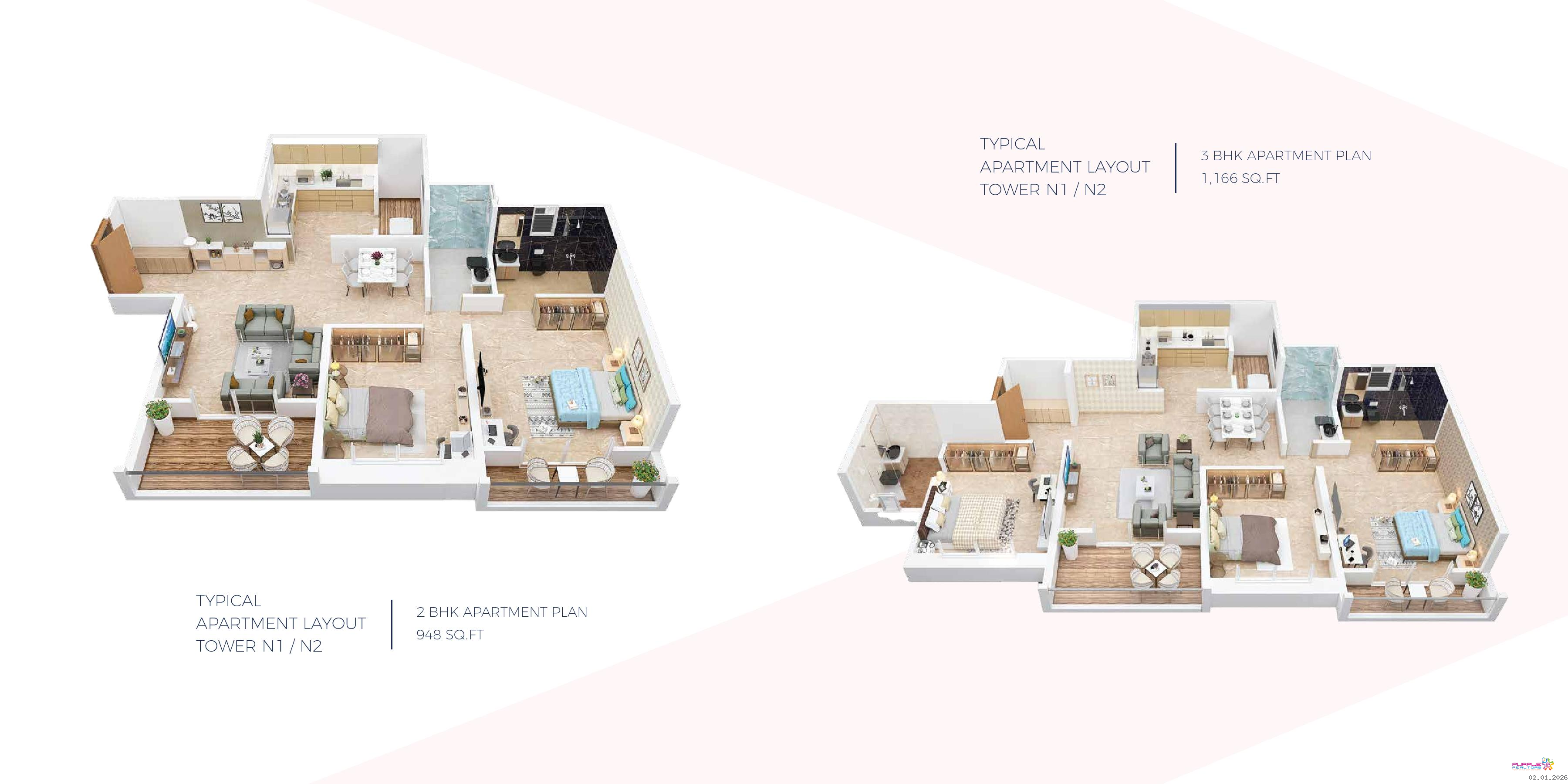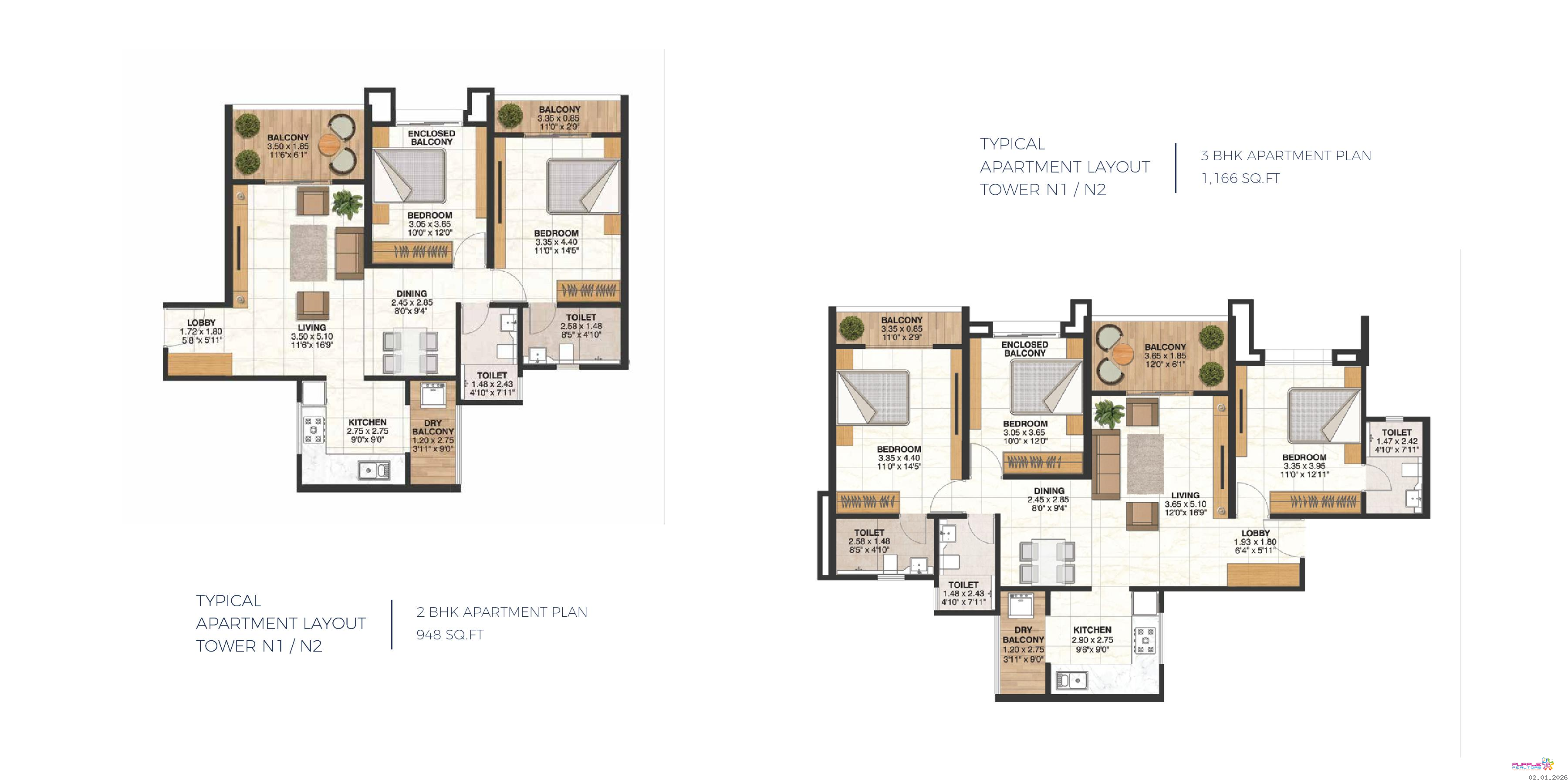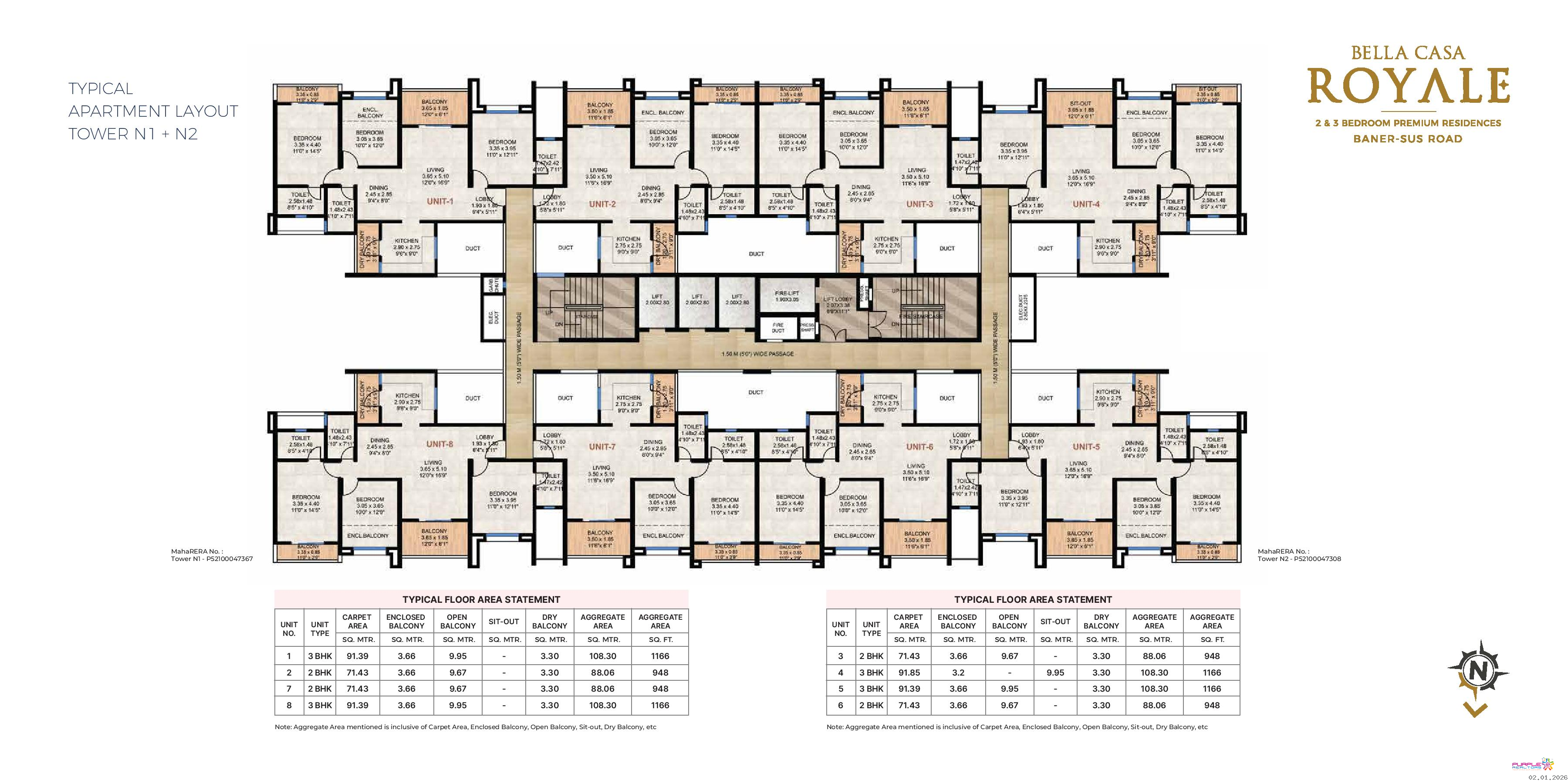N1- N2 Tower - 2 BHK –Carpet 948 sqft – 1.28cr