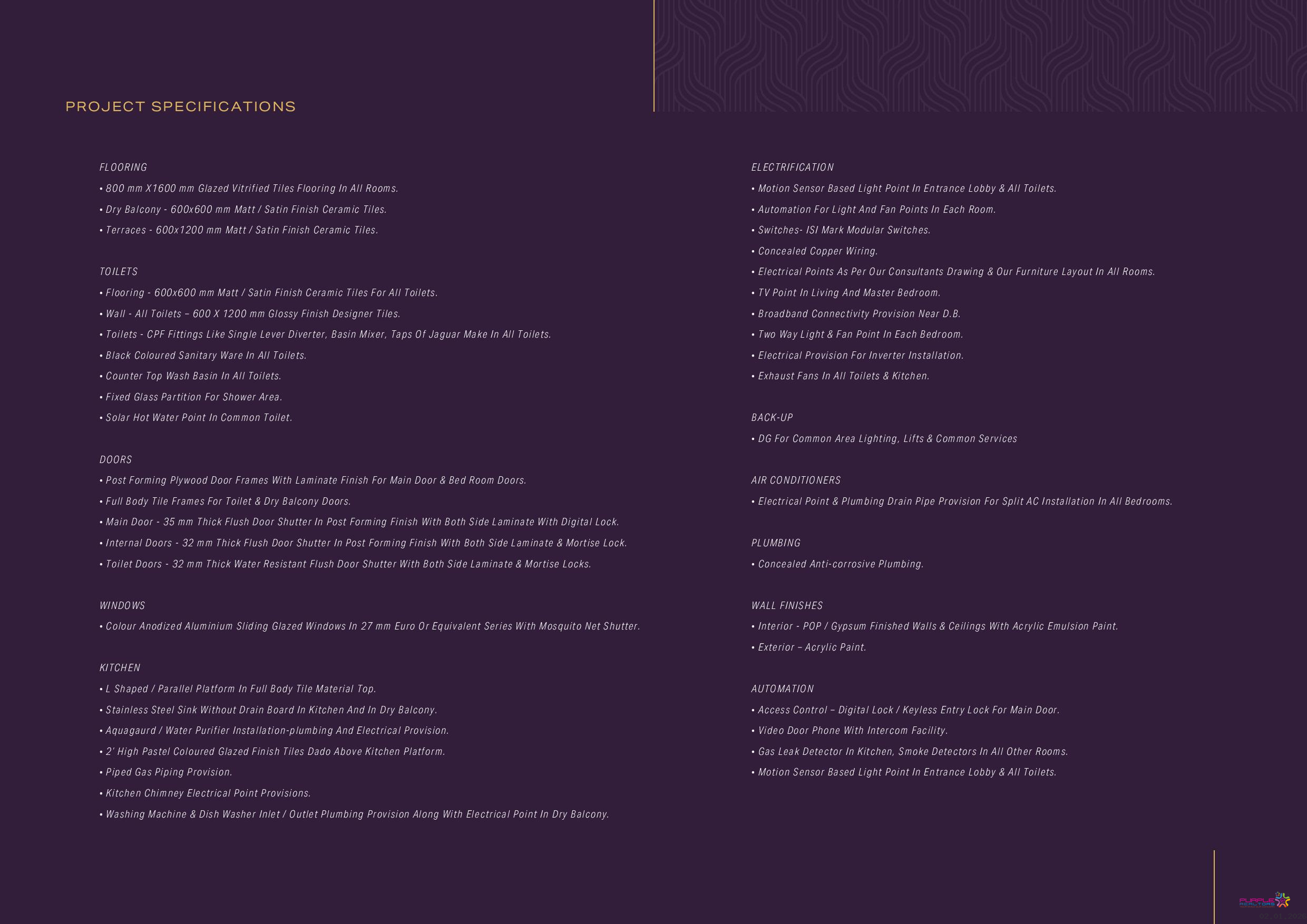 Concealed electrical copper wiring (2.5 no of points/ room) in all rooms.