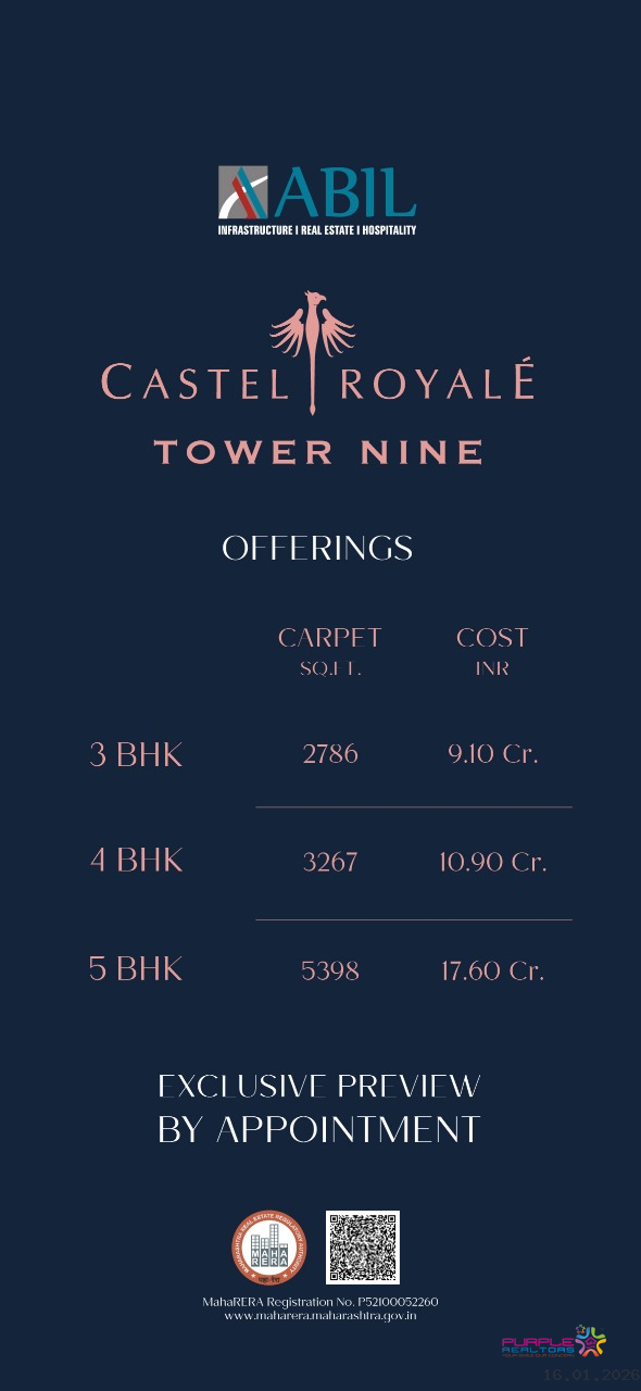 ABIL Group Presents Castel Royale Tower Nine: Ultra Luxurious 3 / 4 / 5 & 6 BHK in Pune, Range Hills Bhosale Nagar Ext