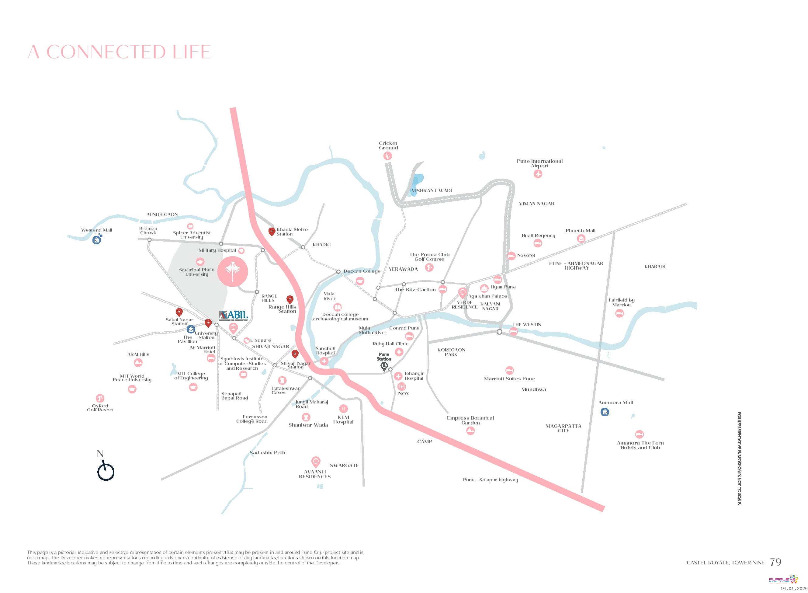 Easy connectivity to Pune Airport, Schools, Hospitals, Malls, Hotels, and Pune Railway Station.
