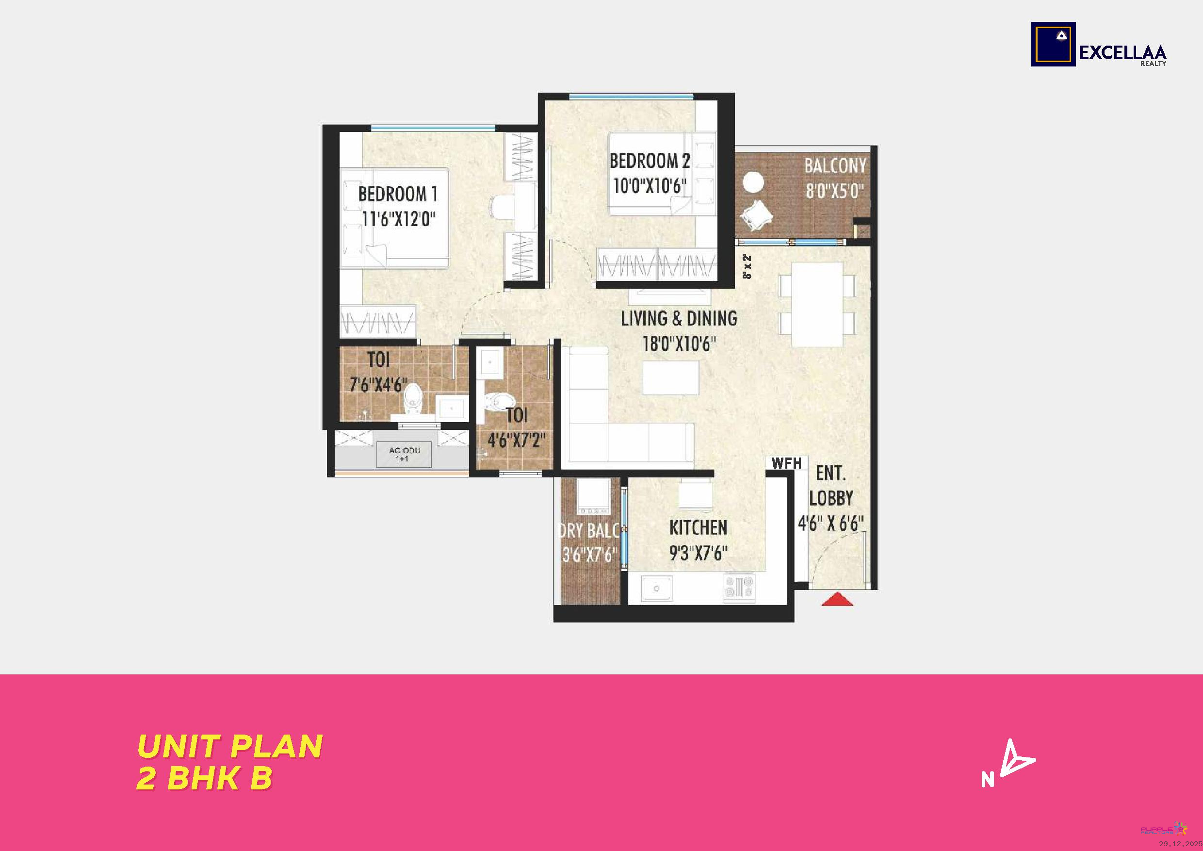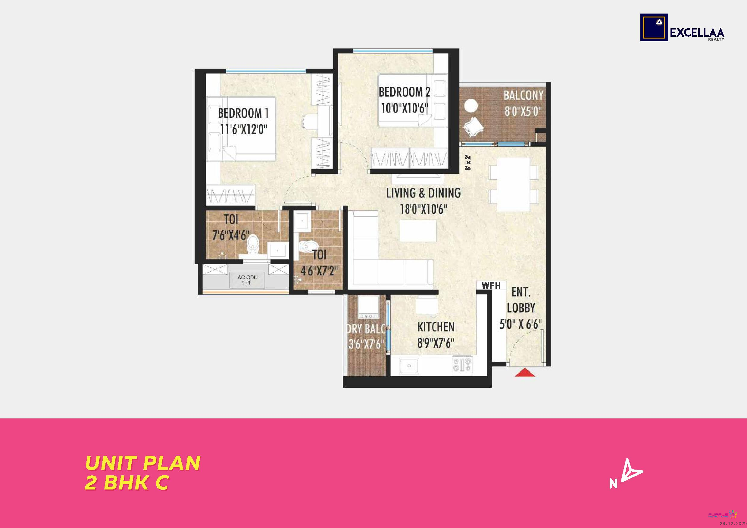 2 BHK - Carpet 725 to 825 Sq. Ft - Rs. 85 L to 95 L