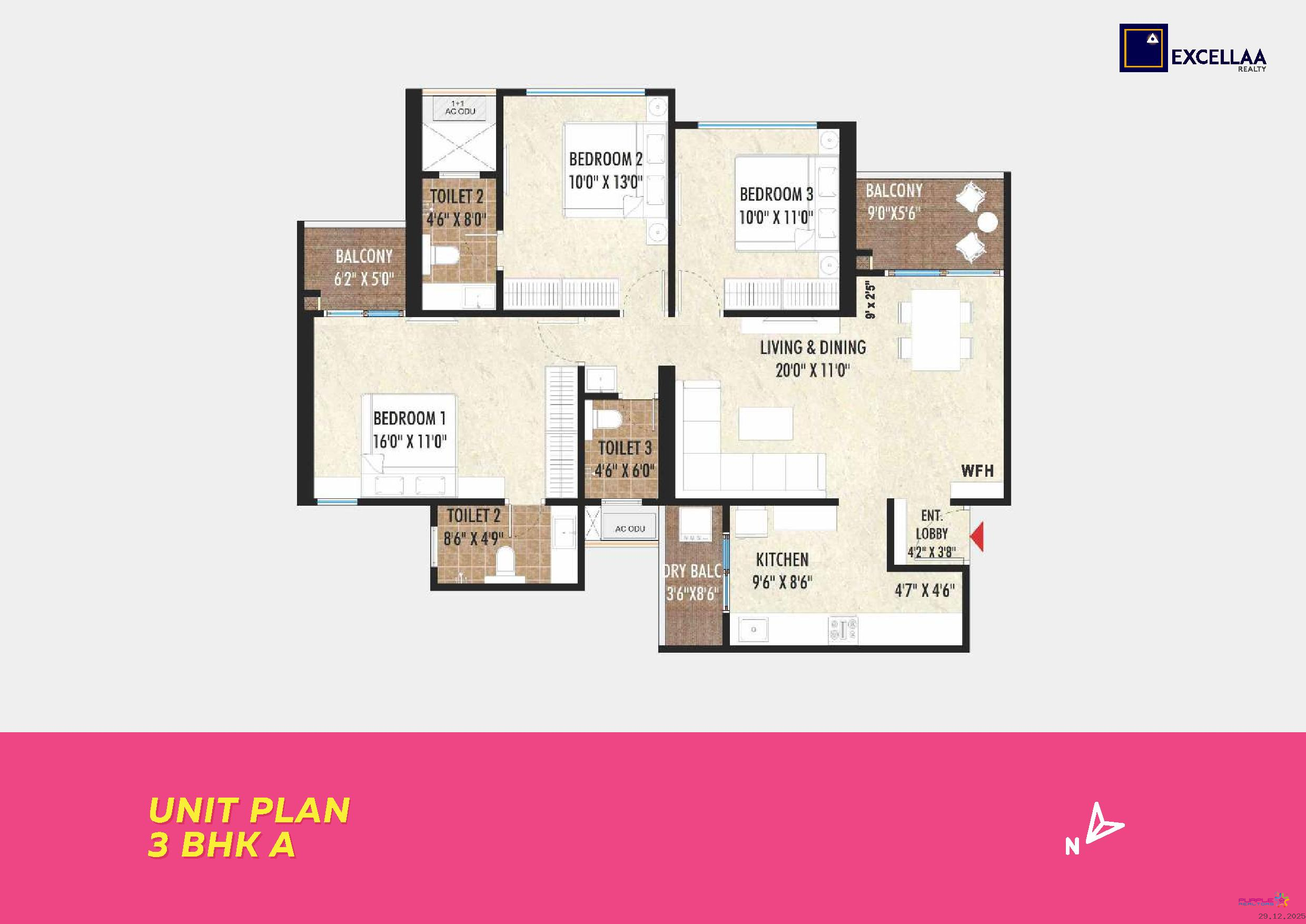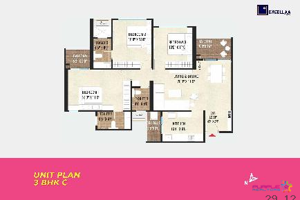 3 BHK - Carpet 1000 to 1100 Sq.ft - Rs.1.15cr to 1.30cr