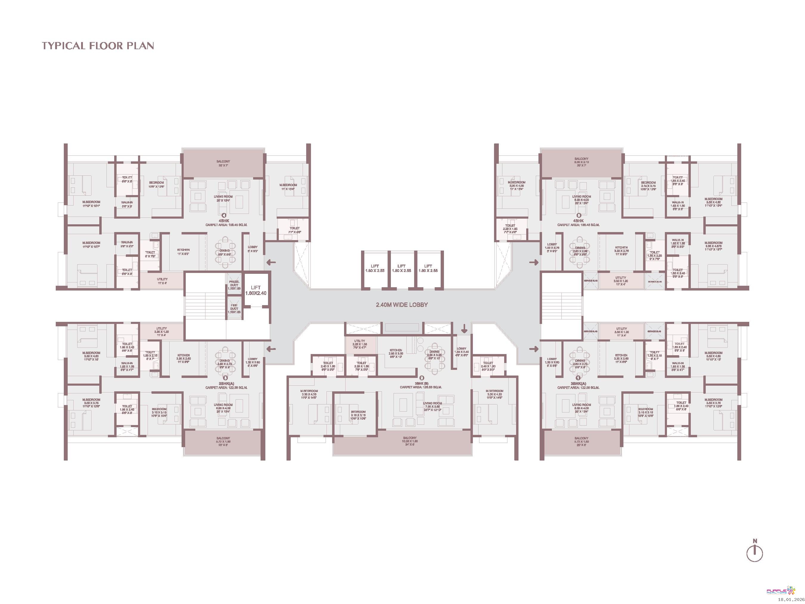 4 BHK unit No - 205, 305, 505, 1505, 1705, 1805, 1905, 2004