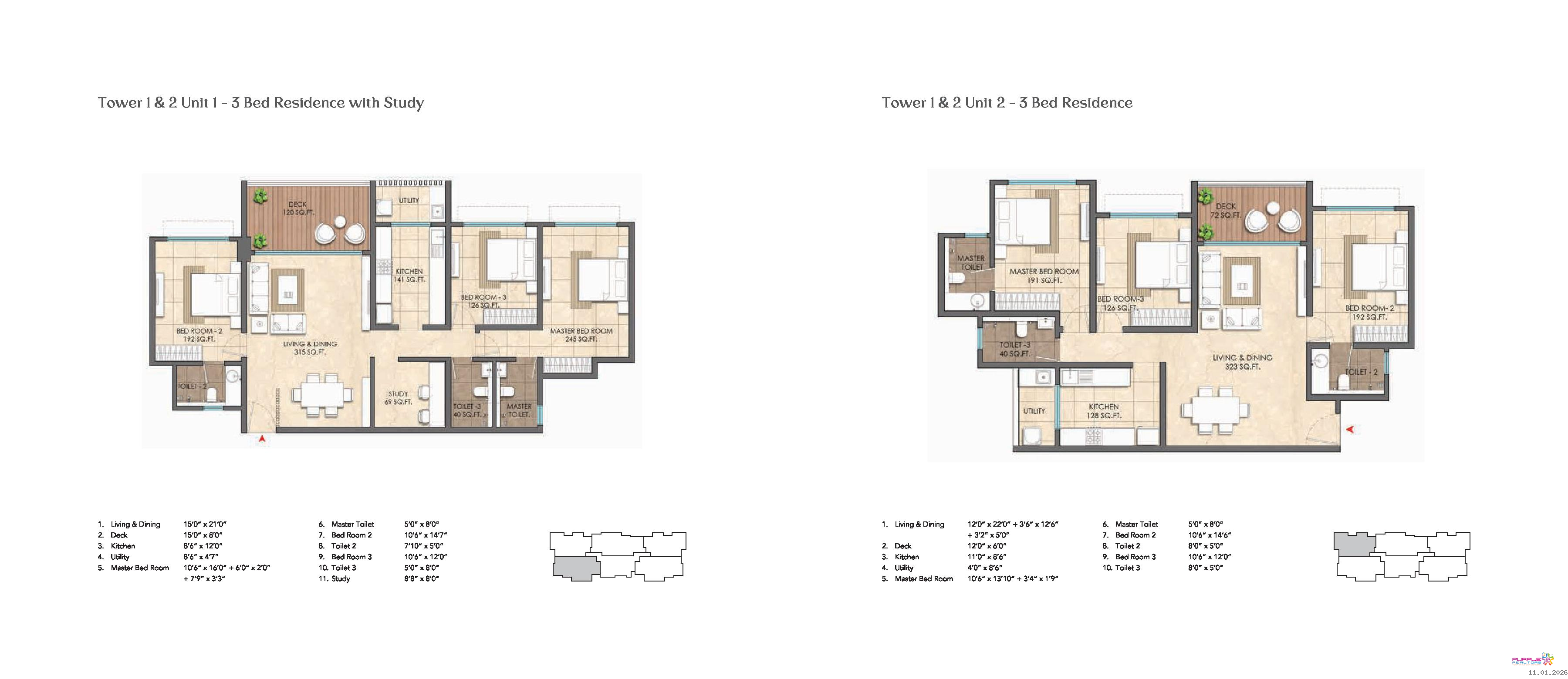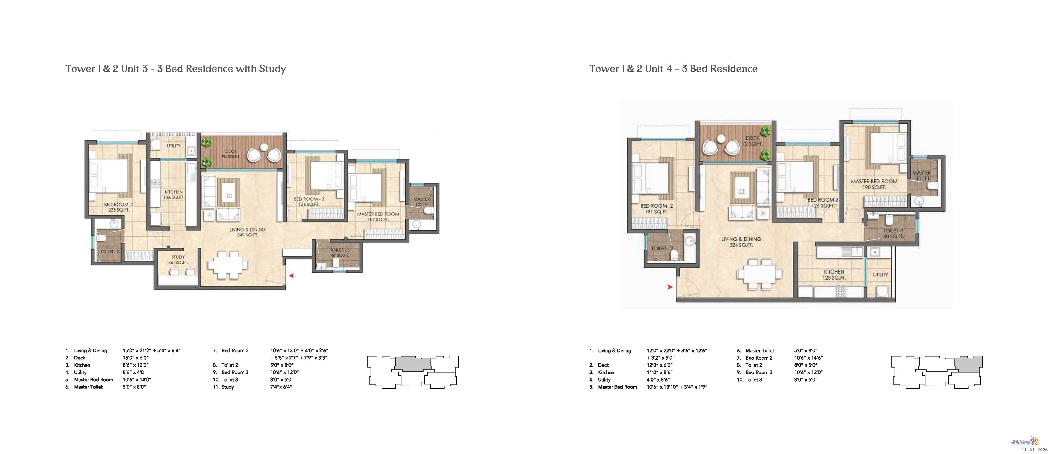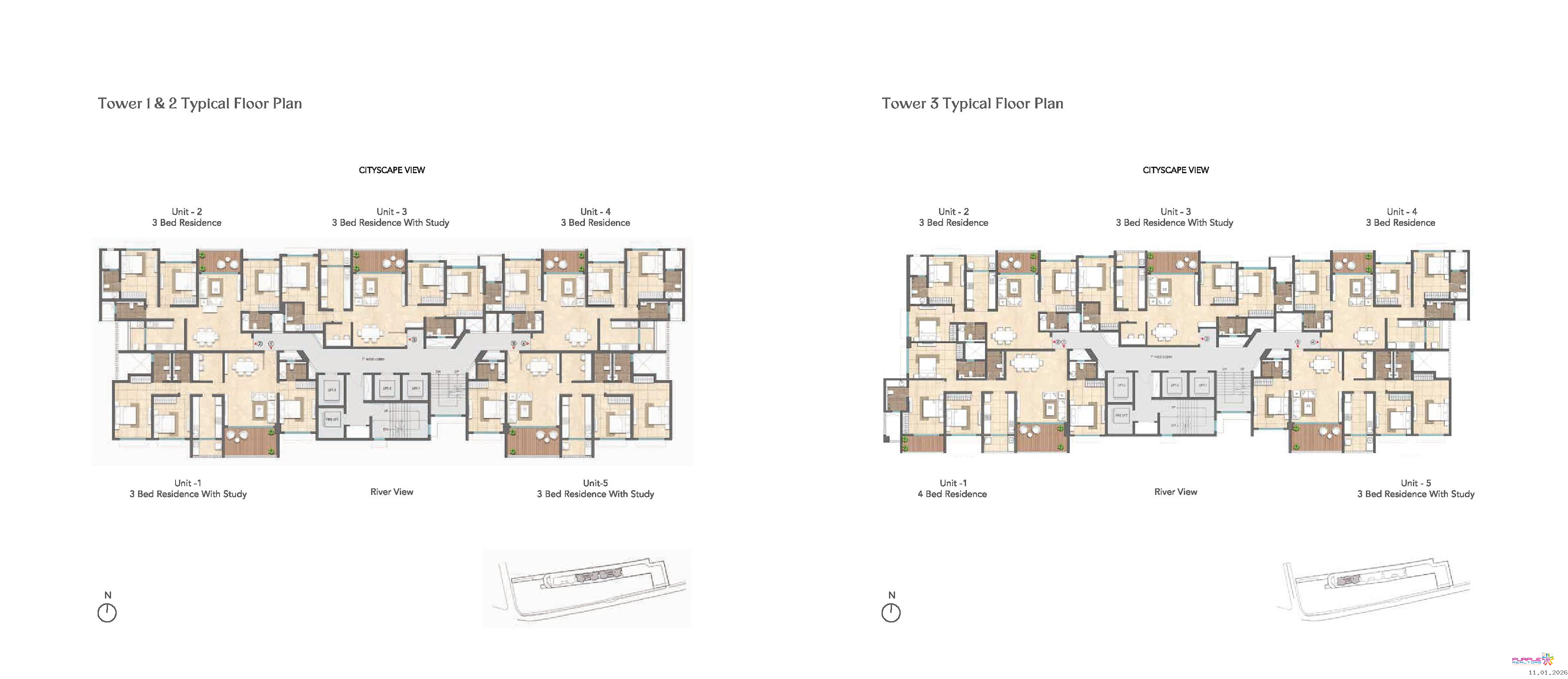 3 BHK with Study Carpet 1336 to 1396 sqft - Sourcing Price - 2.60 Cr.