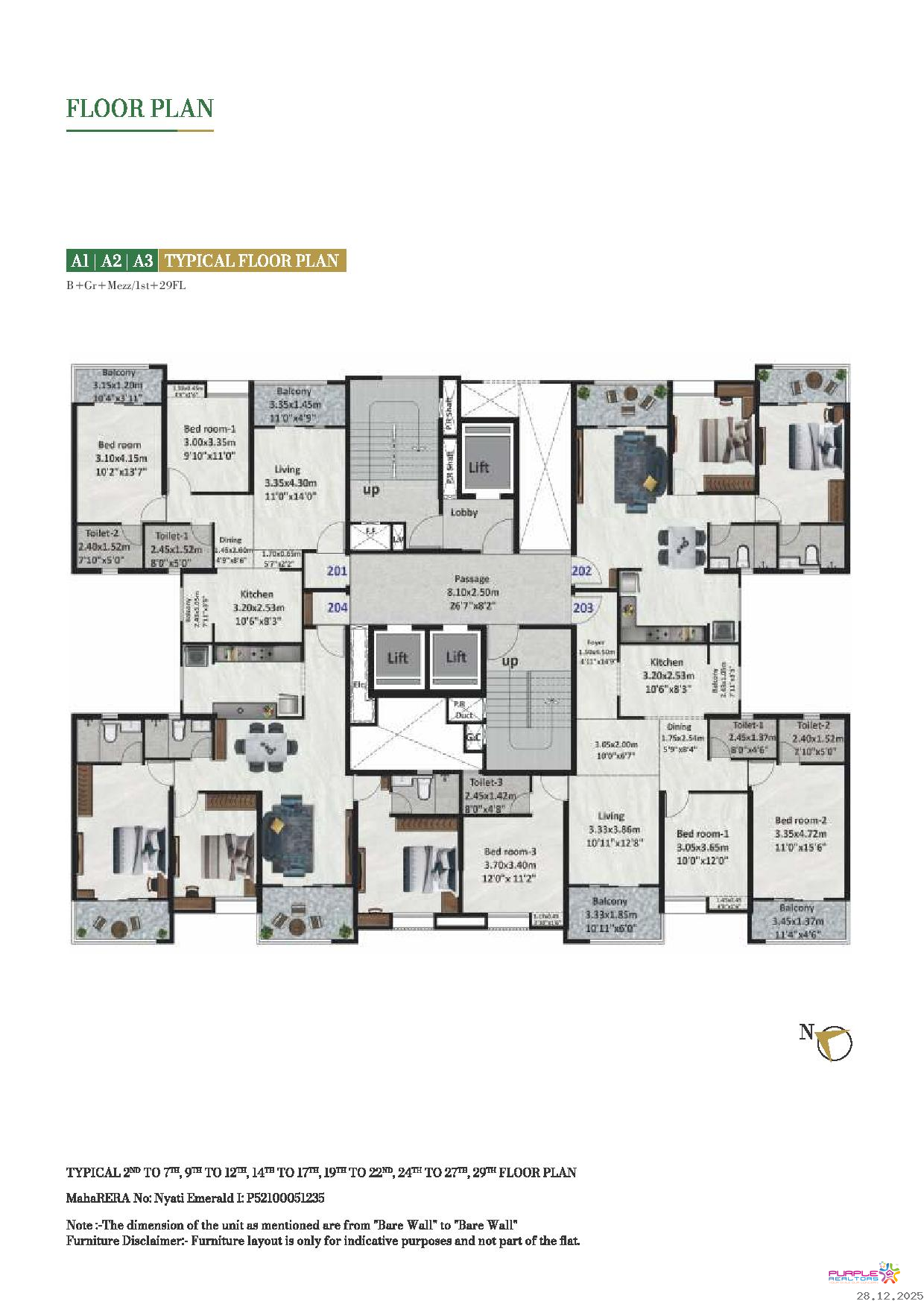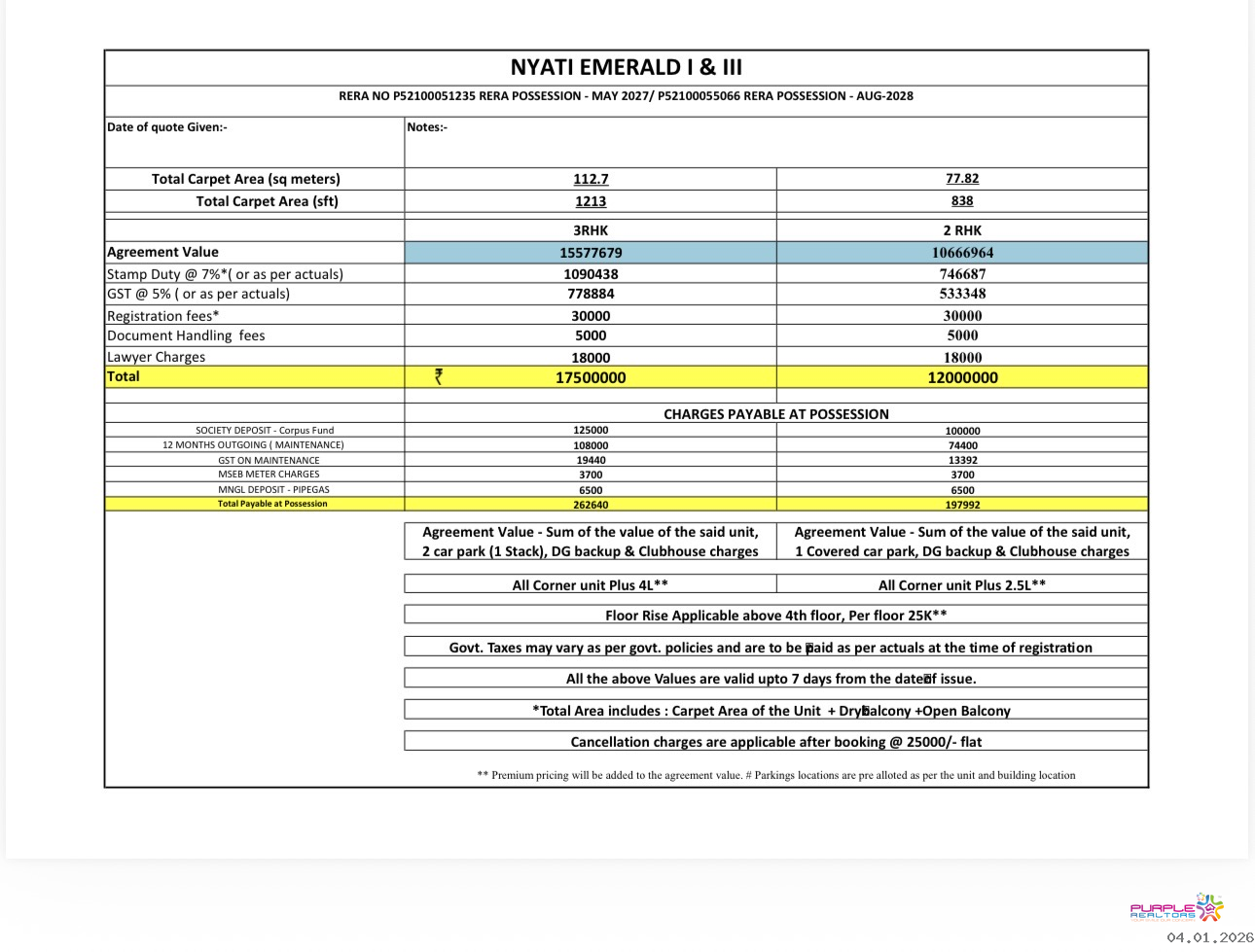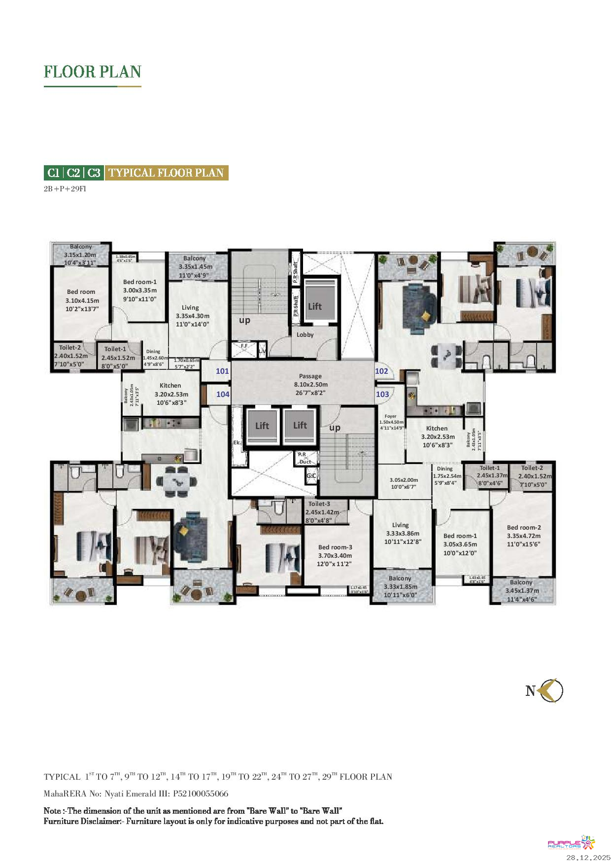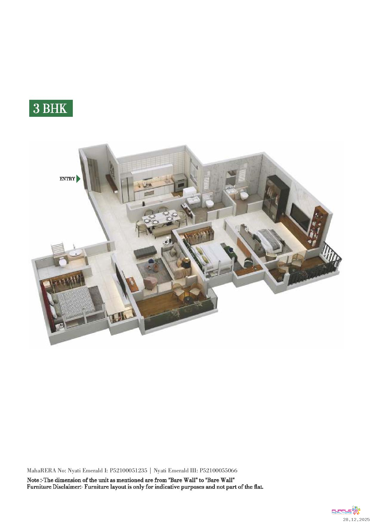 3 BHK- Carpet 1212 sqft - 1.75cr Onwards