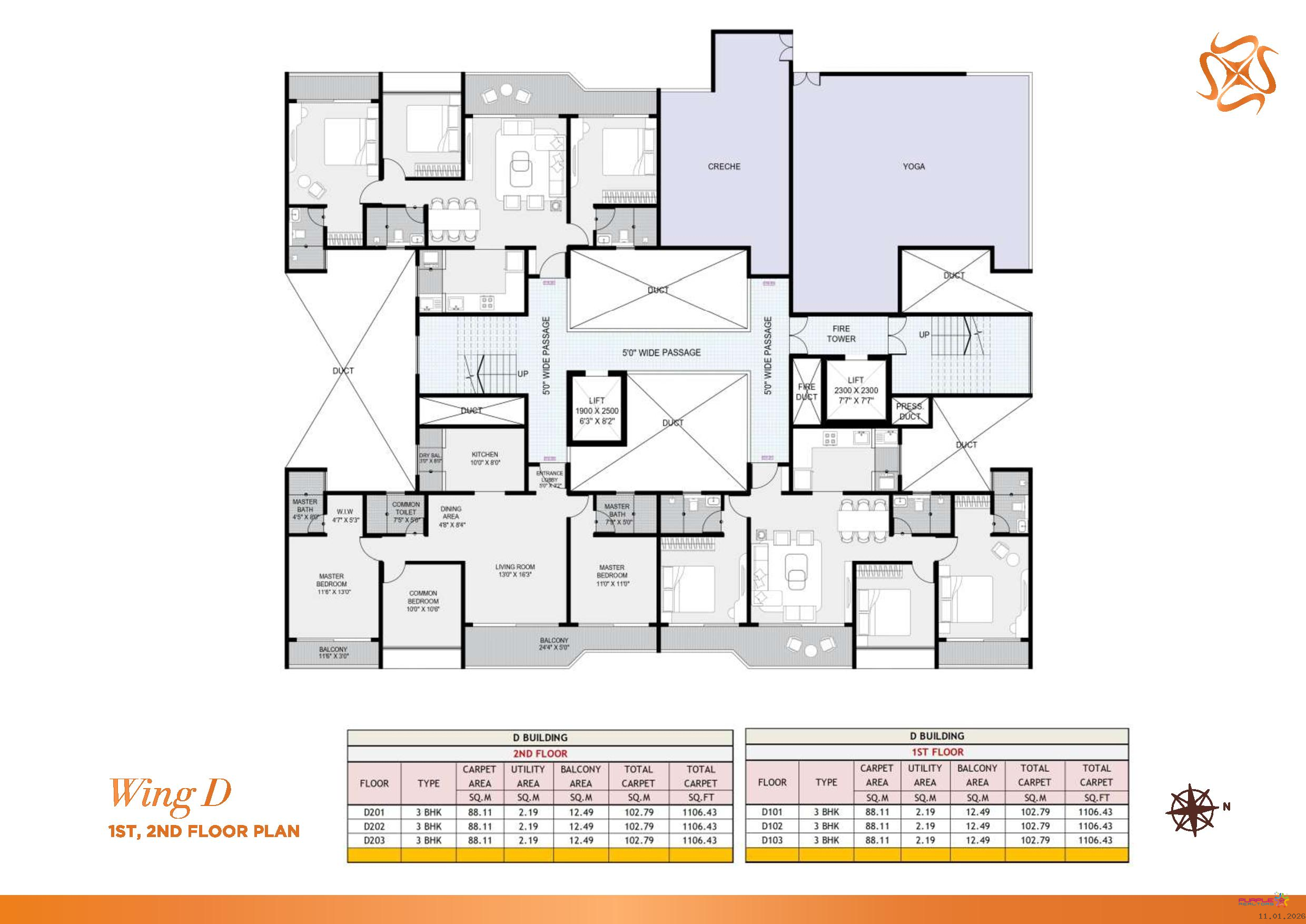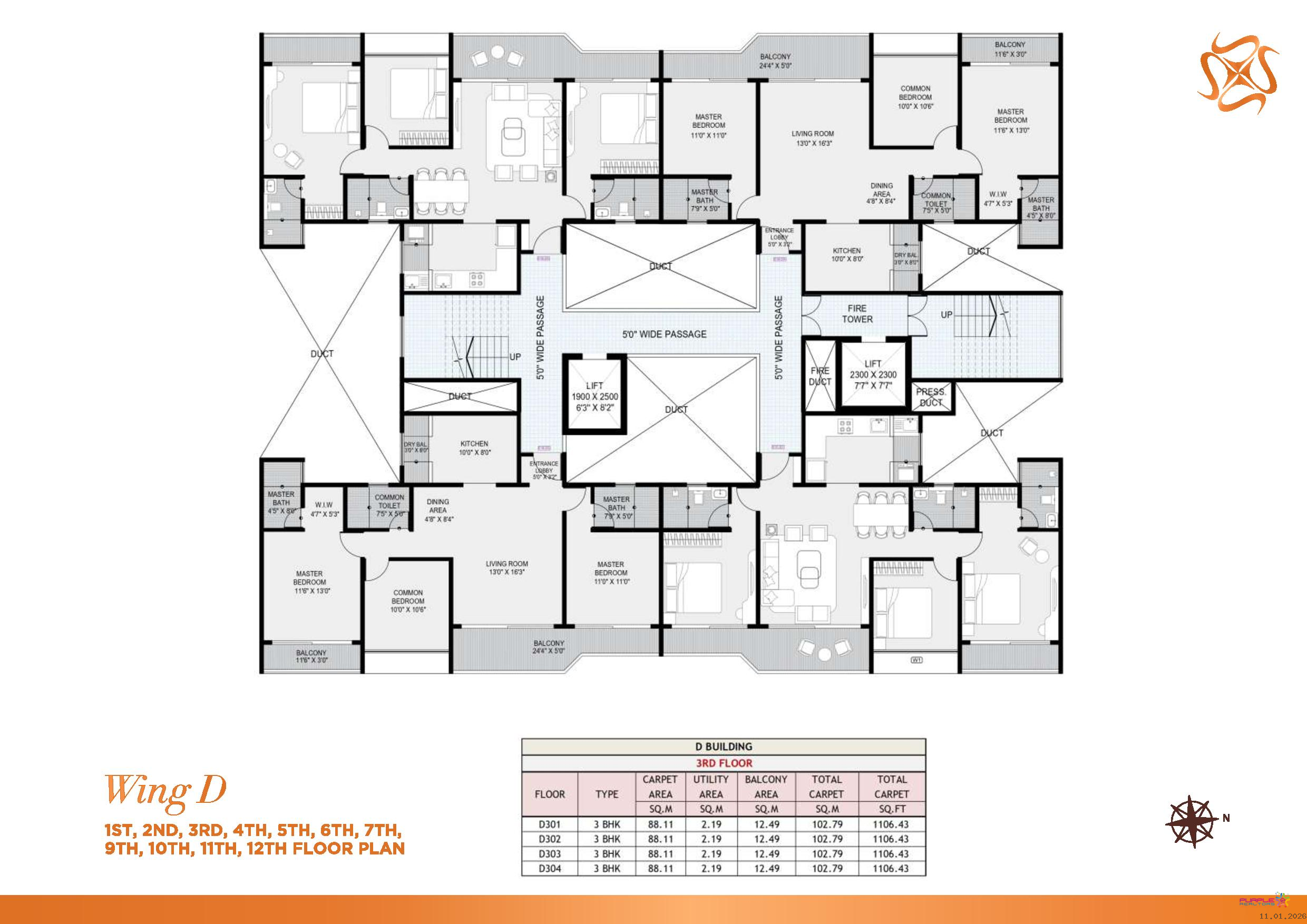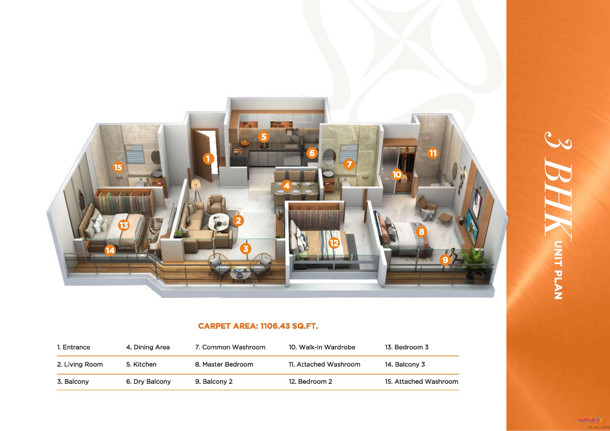 3 BHK – Carpet 1106 sq.ft – 1.10Cr Onwards