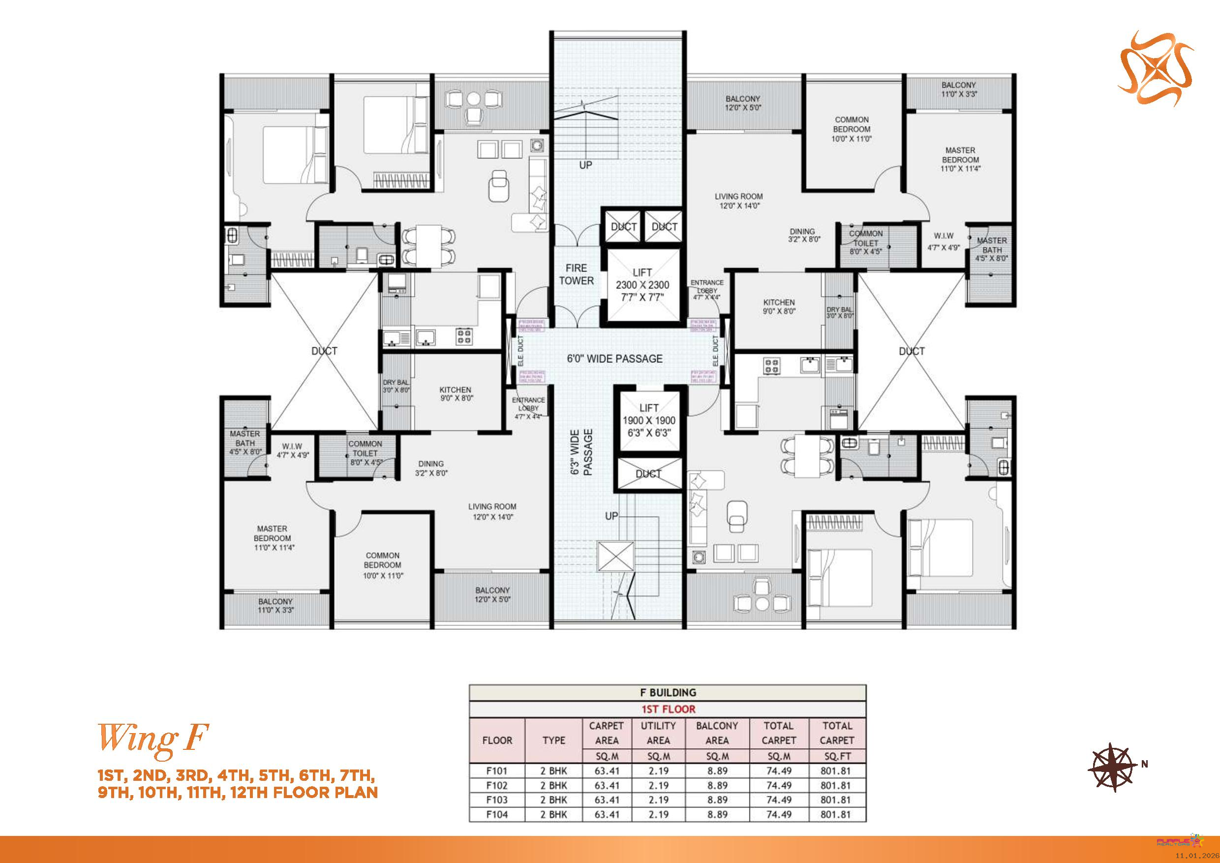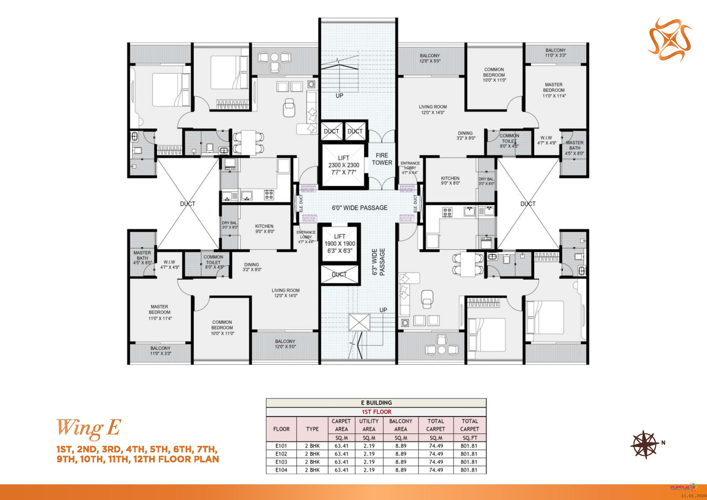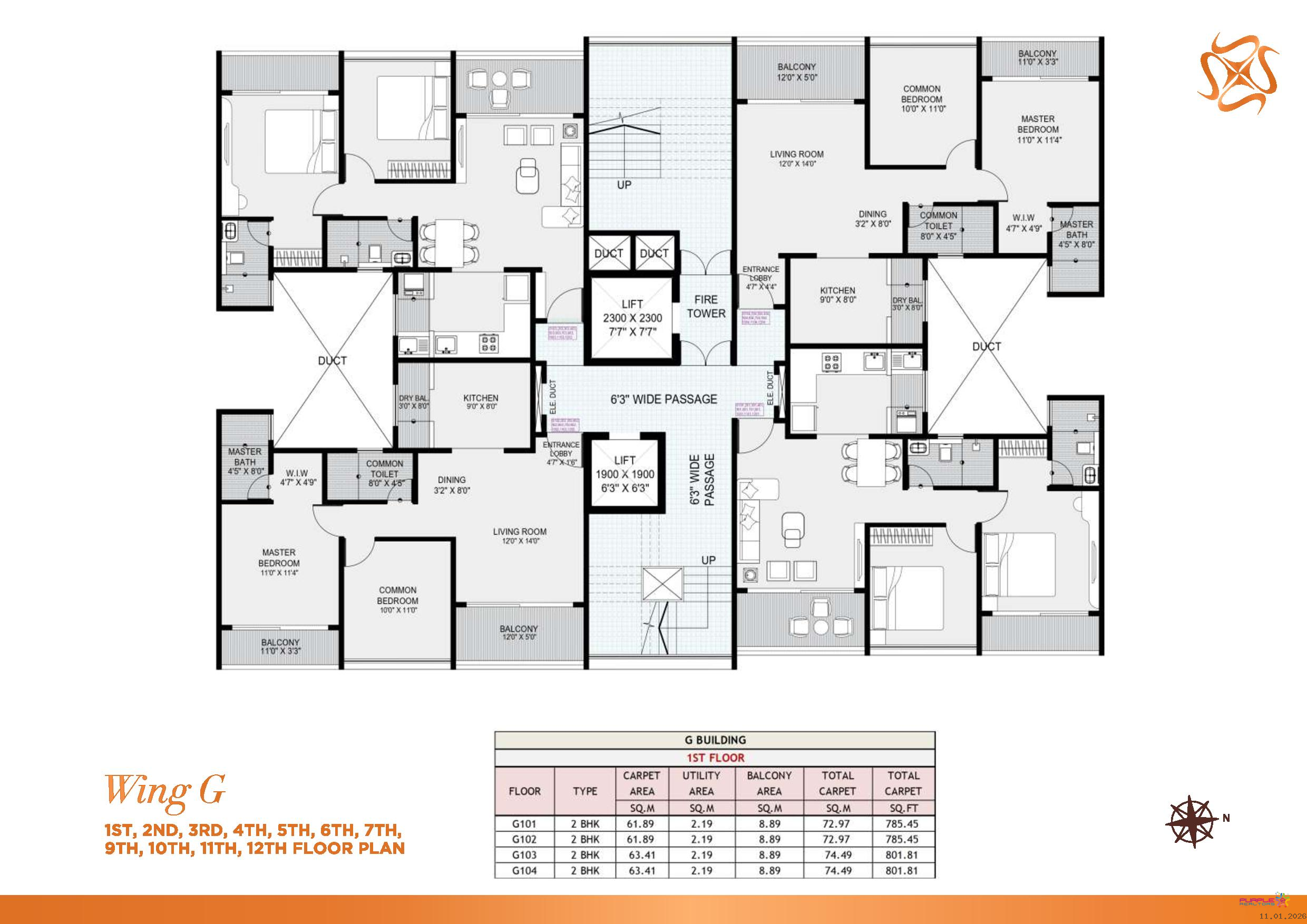 3 BHK – Carpet 1106 sq.ft – 1.10Cr Onwards