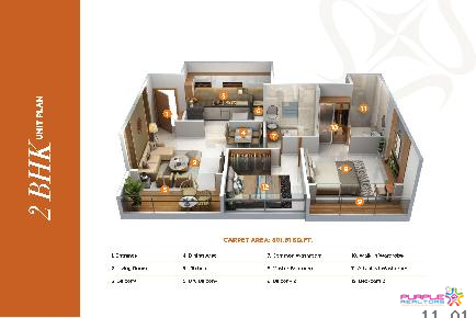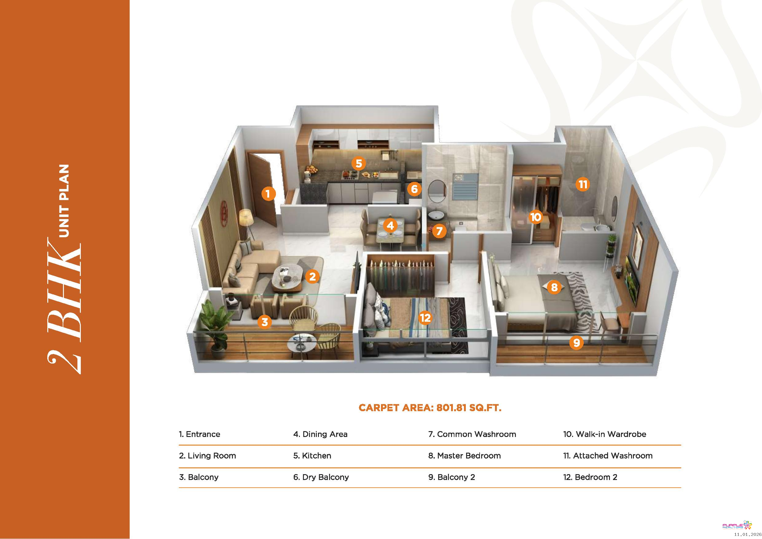 2 BHK – Carpet 802 sq.ft – 75.76 Lakh Onwards
