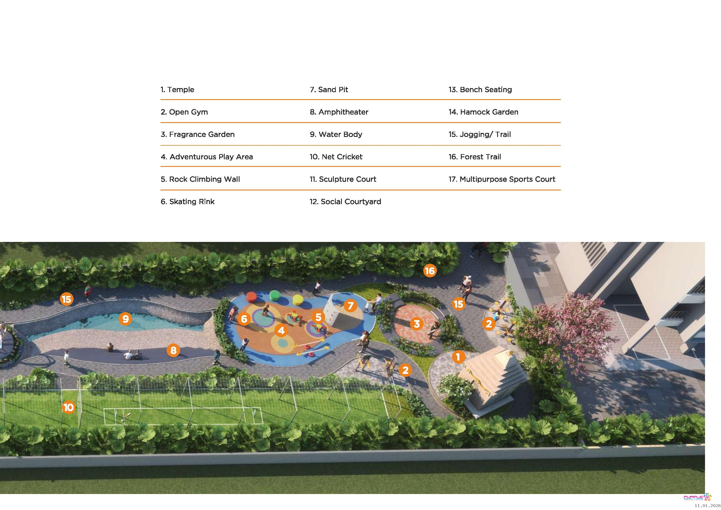 13. 1.5m Wide Jogging Track / 14. Open Air Gym