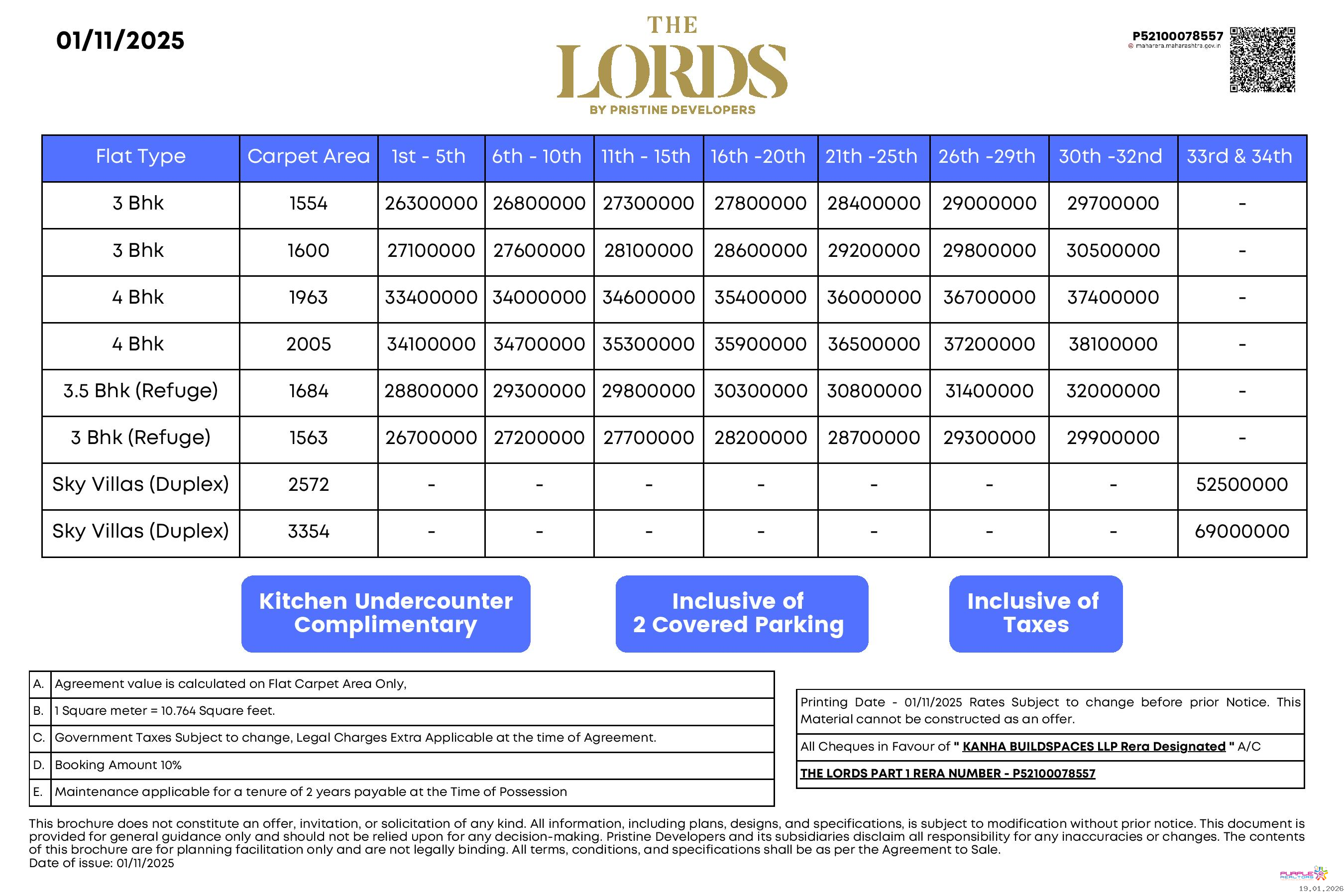 - Offering 3 and 4.5 BHK homes