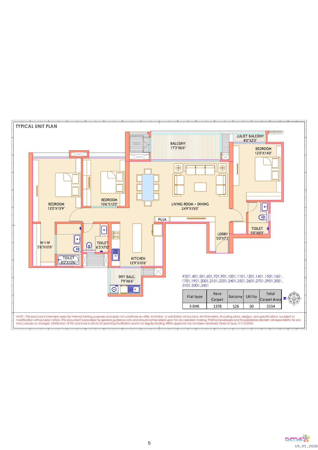 3 BHK - Carpet 1554 sqft - 2.63 cr onwards