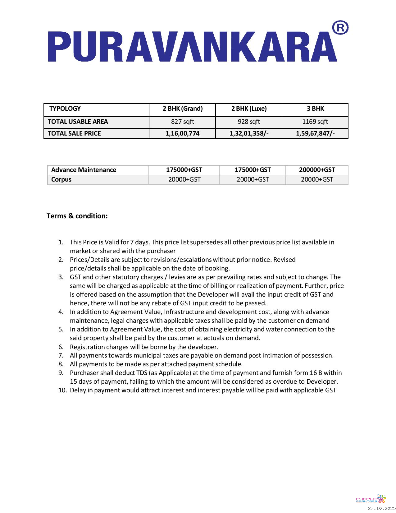 3 BR Grand - 1170 sqft (Usable Carpet Area)- 1.57 Cr All Inclusive