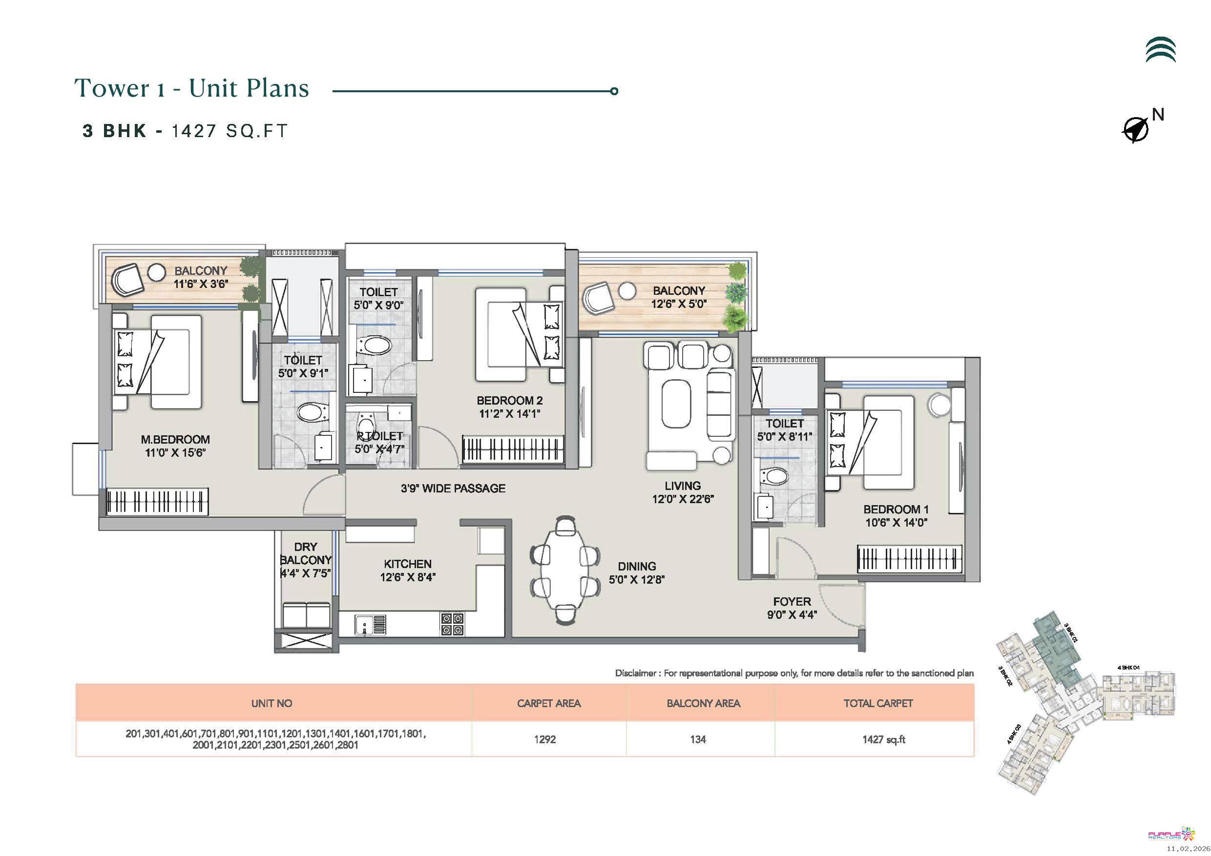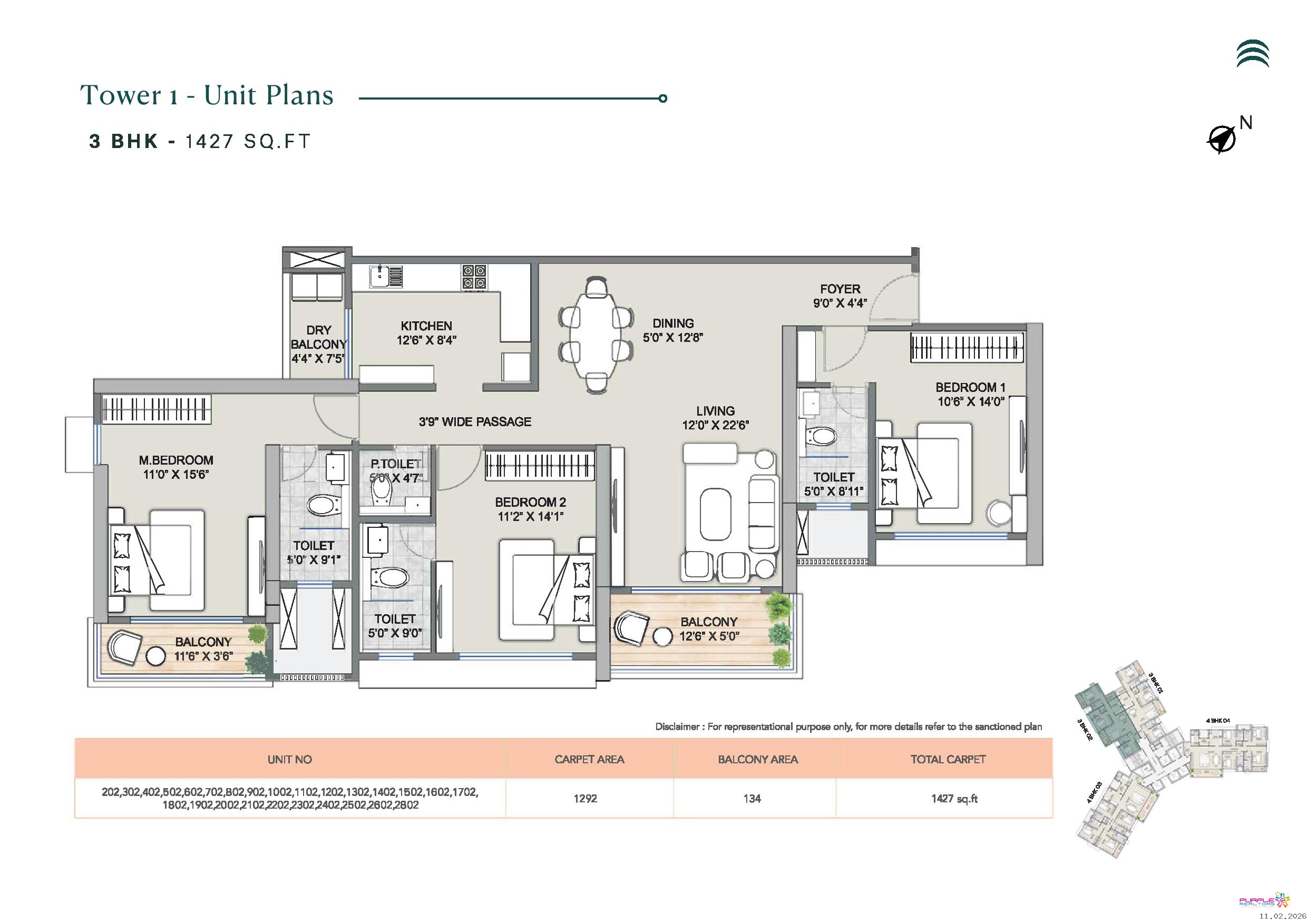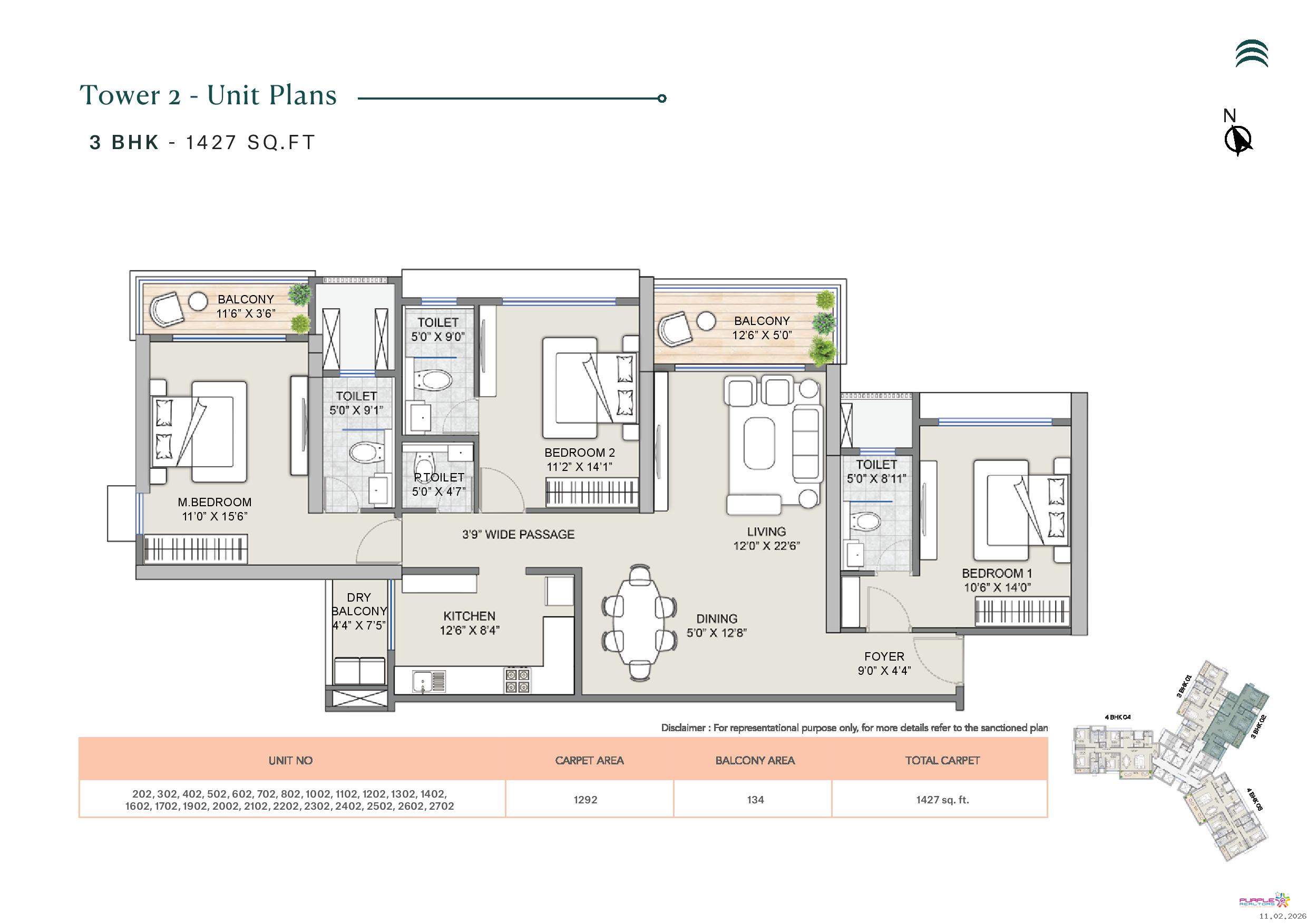3 BHK - Carpet 1427 sqft - 3.30cr onwards (2nd floor)