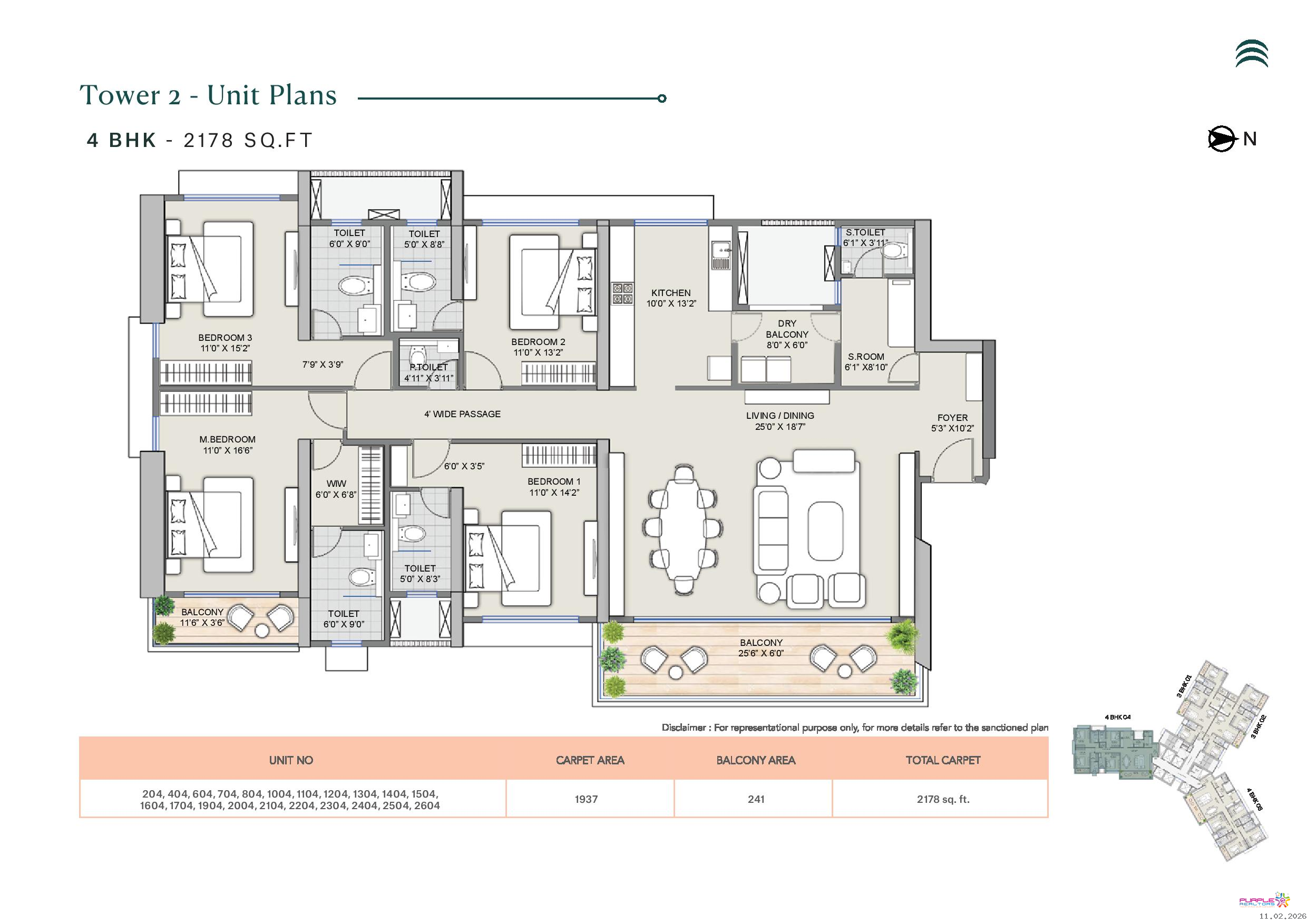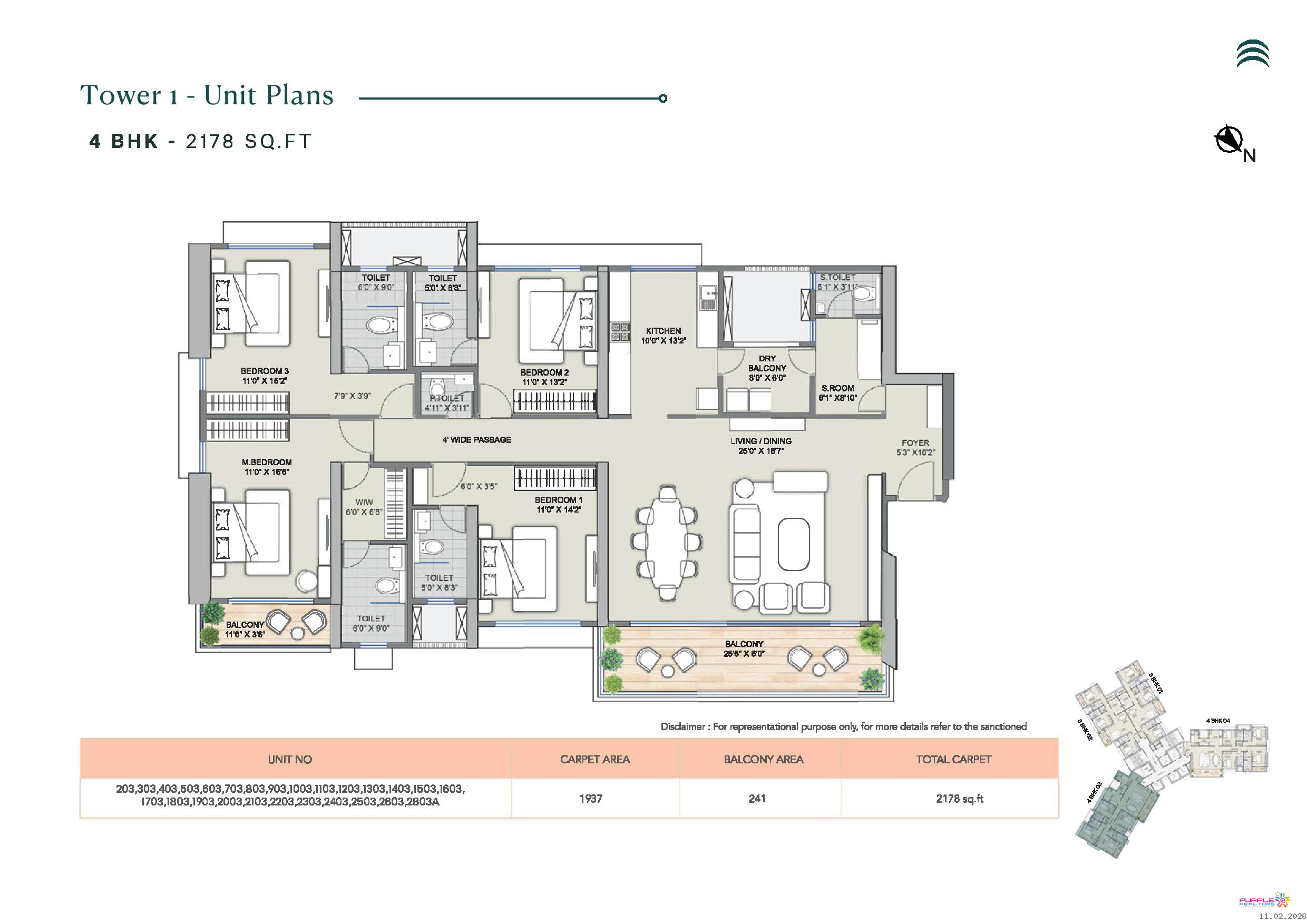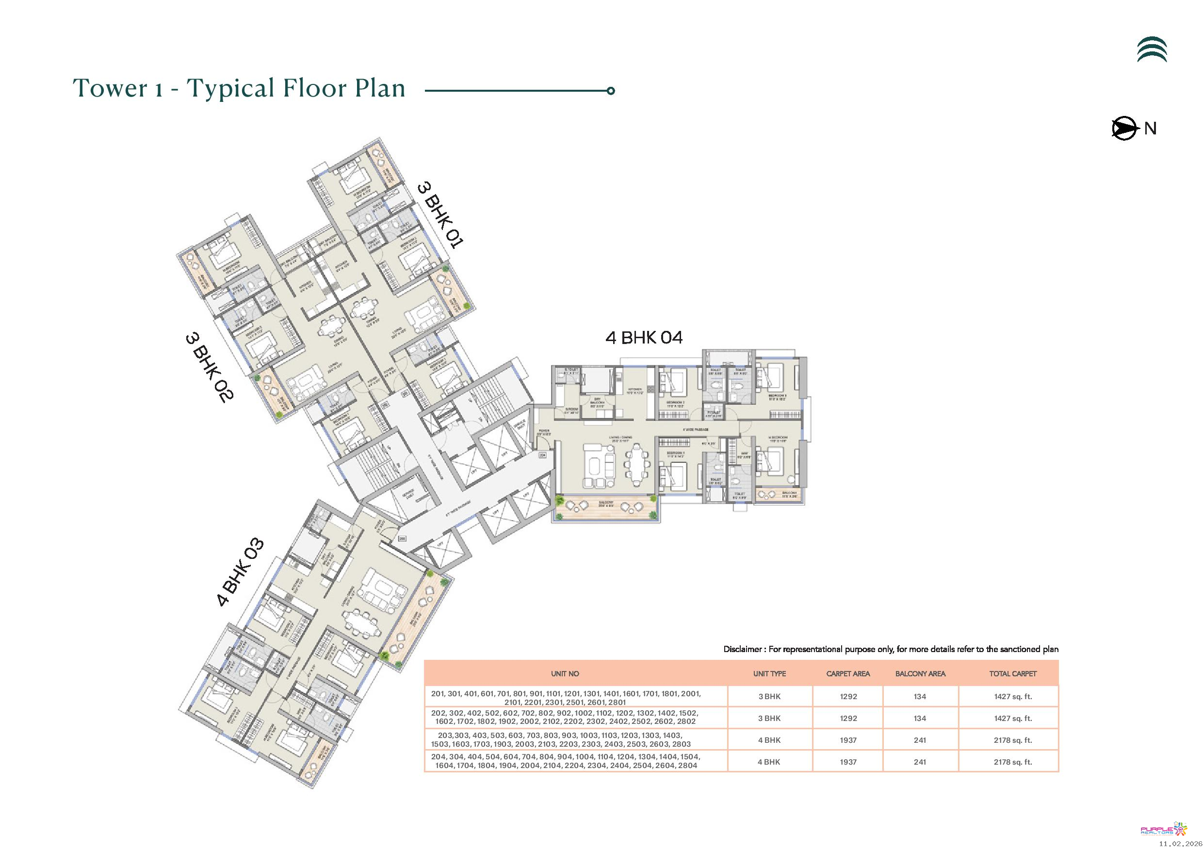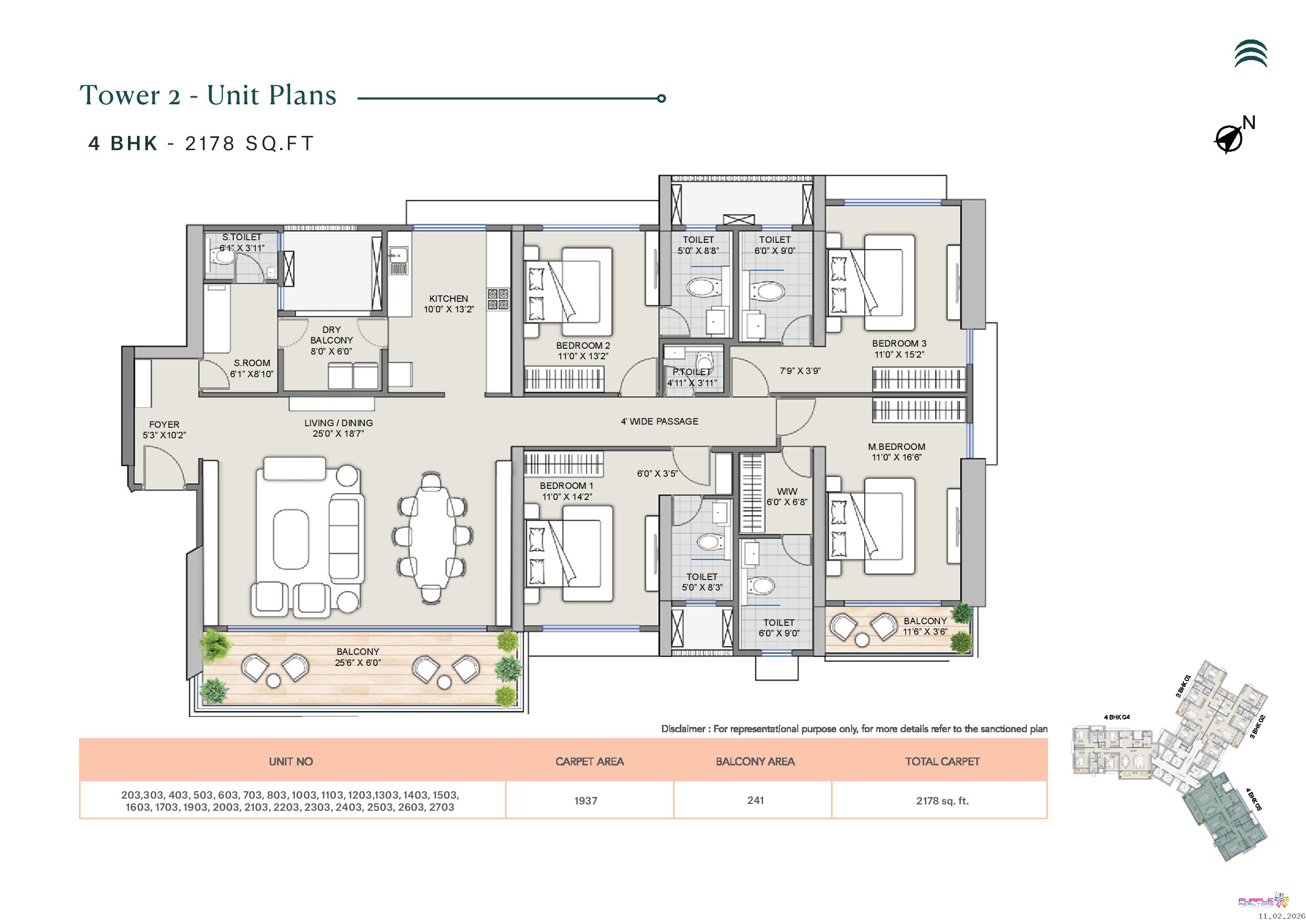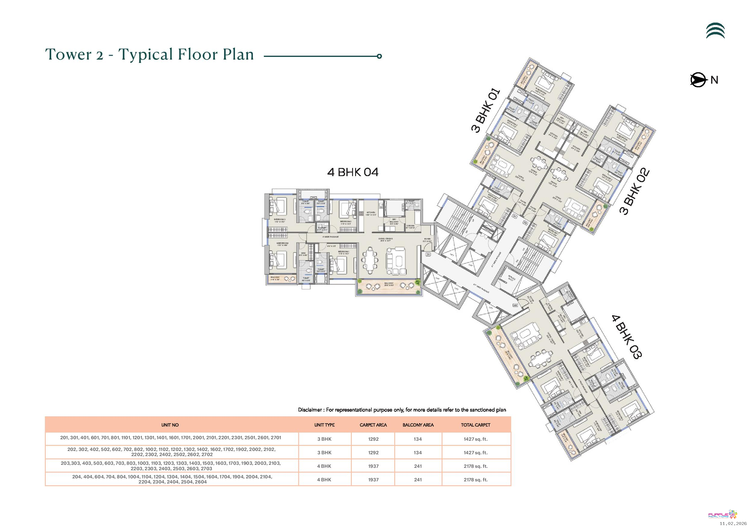 4 BHK - Carpet 2178 sqf - 5.16 Cr onwards (2nd floor)