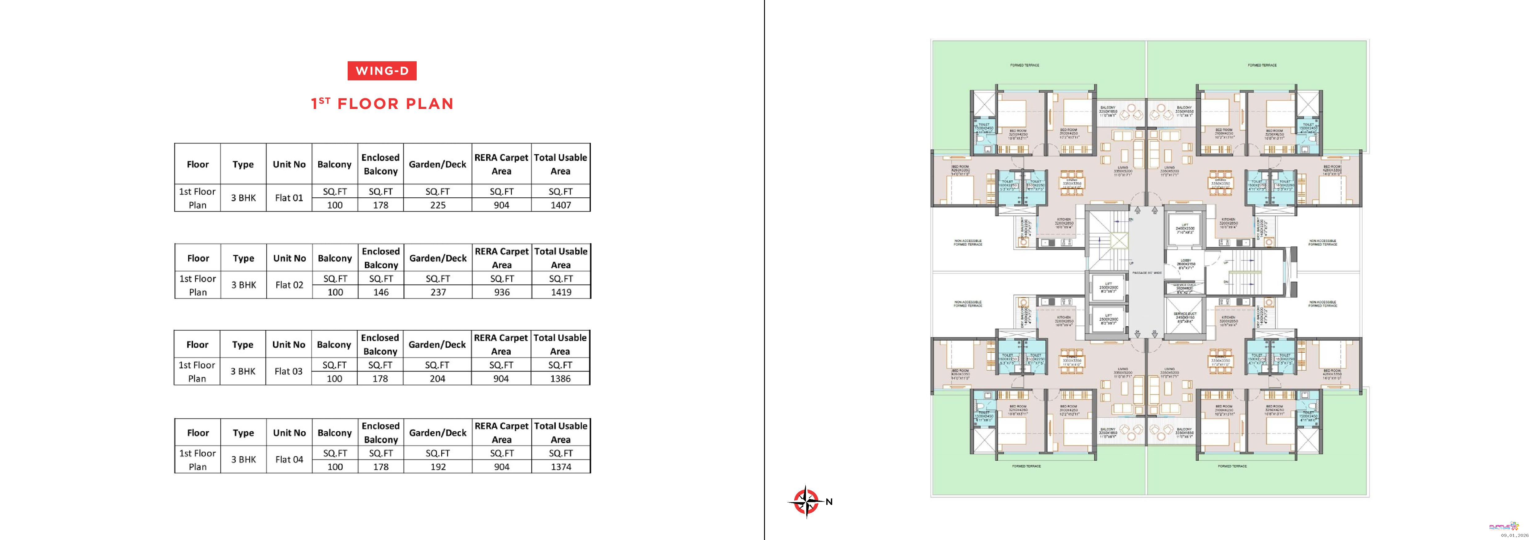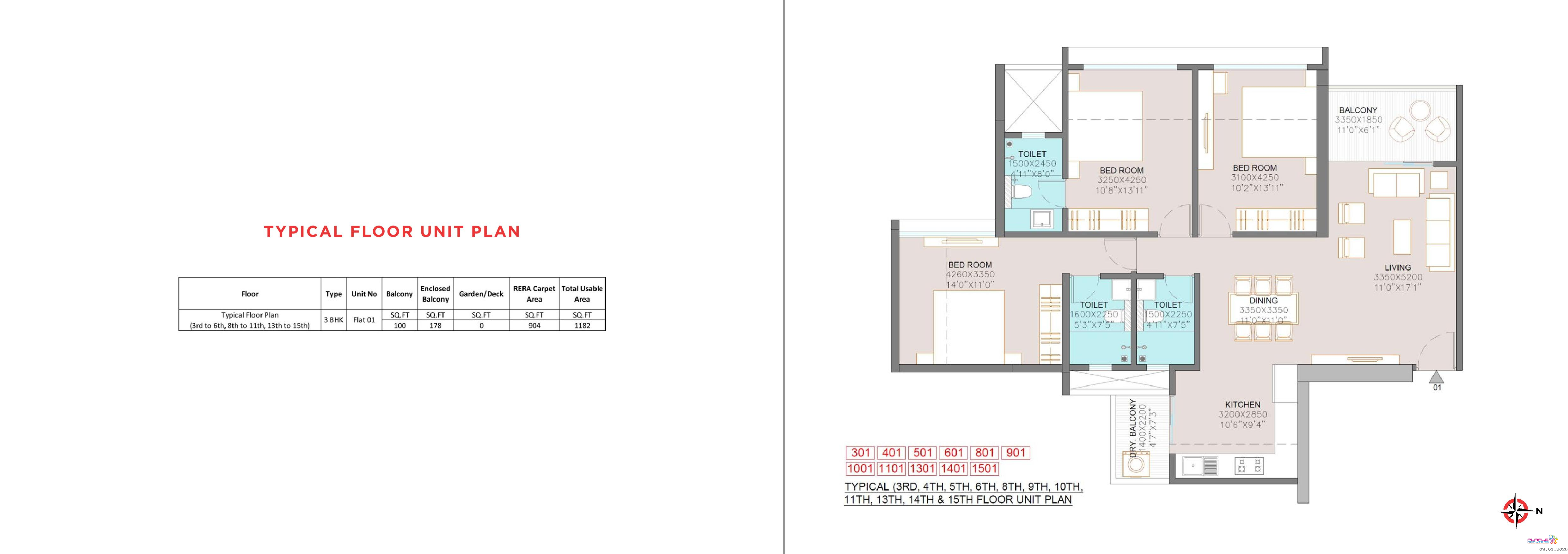 1st to 15th Floor – 3 BHK