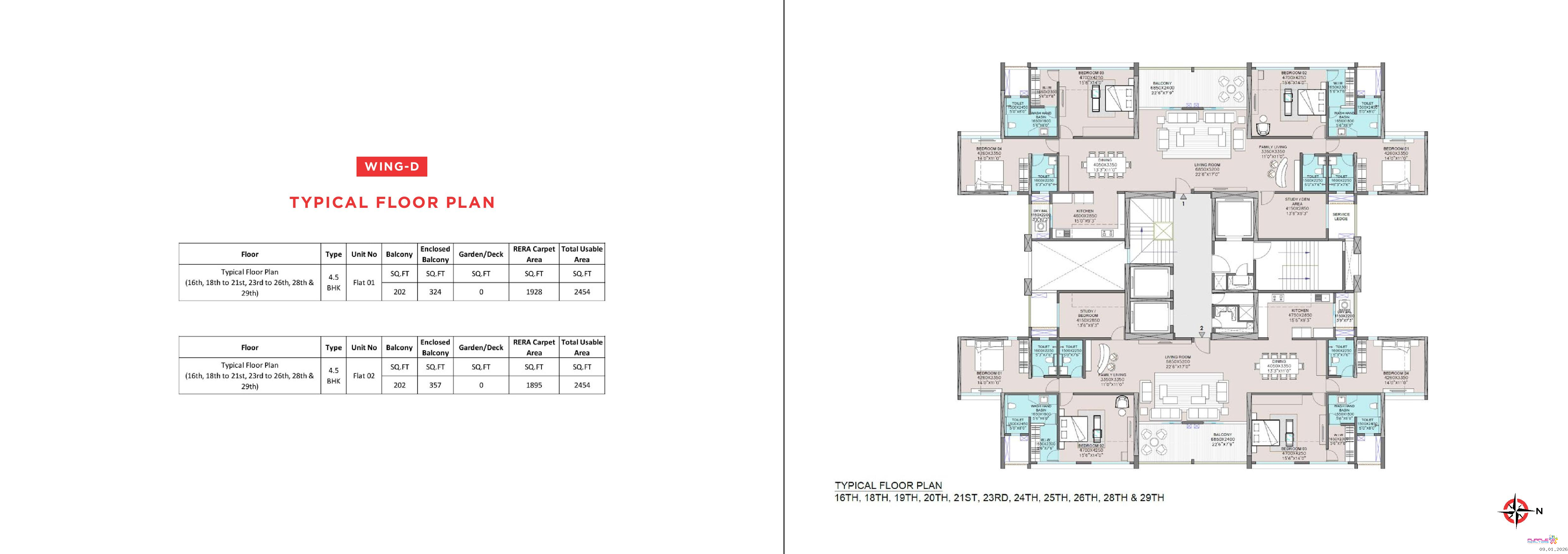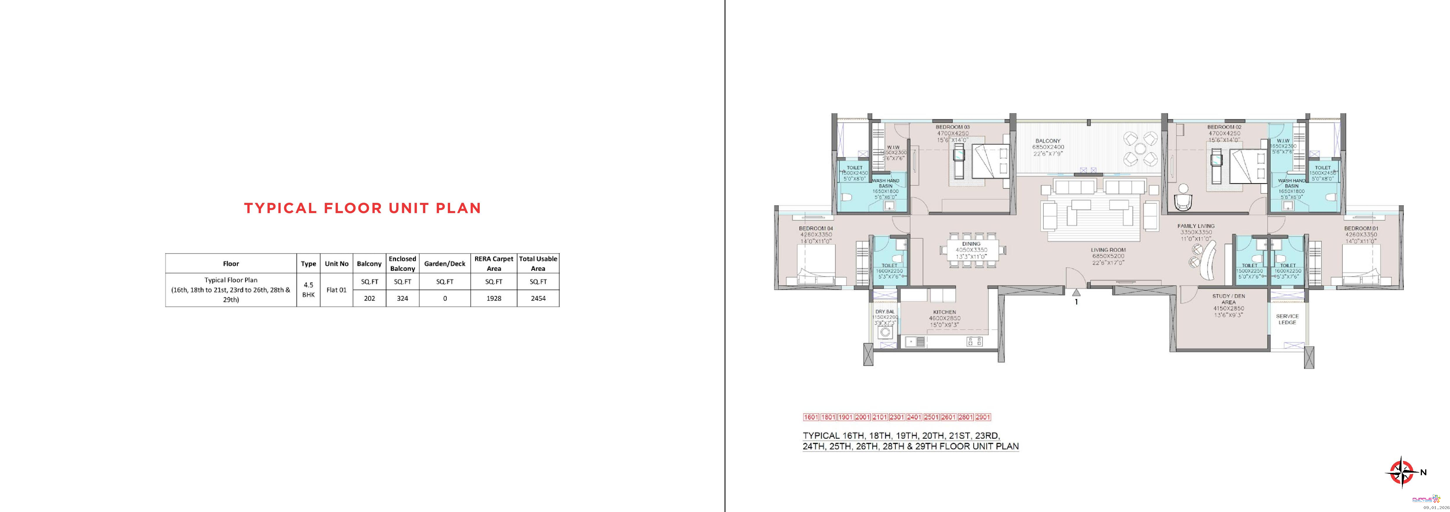 16th to 29th Floor – 4.5 BHK