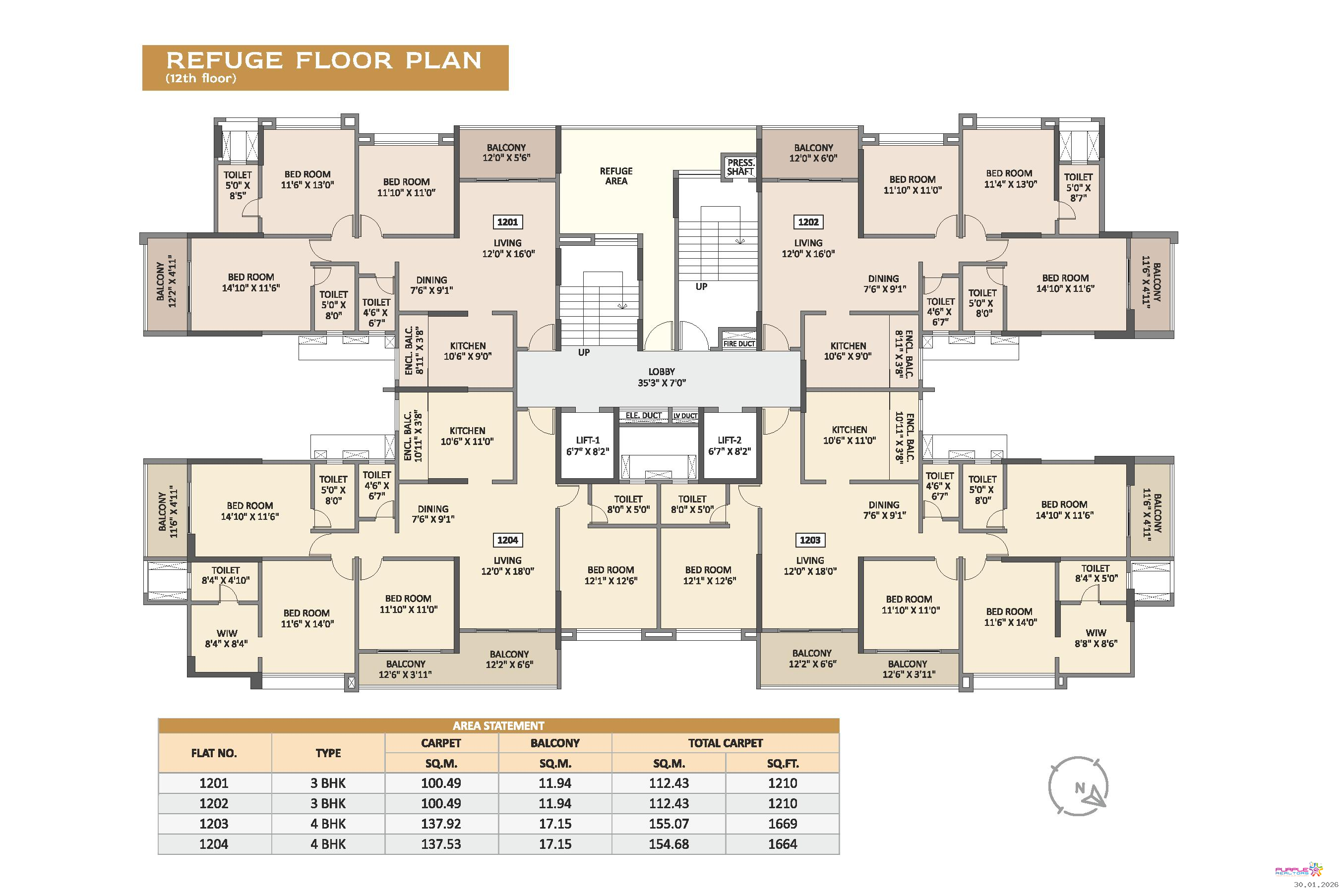 3 BHK - Carpet 1210 sqft - 1.87 cr Onwards