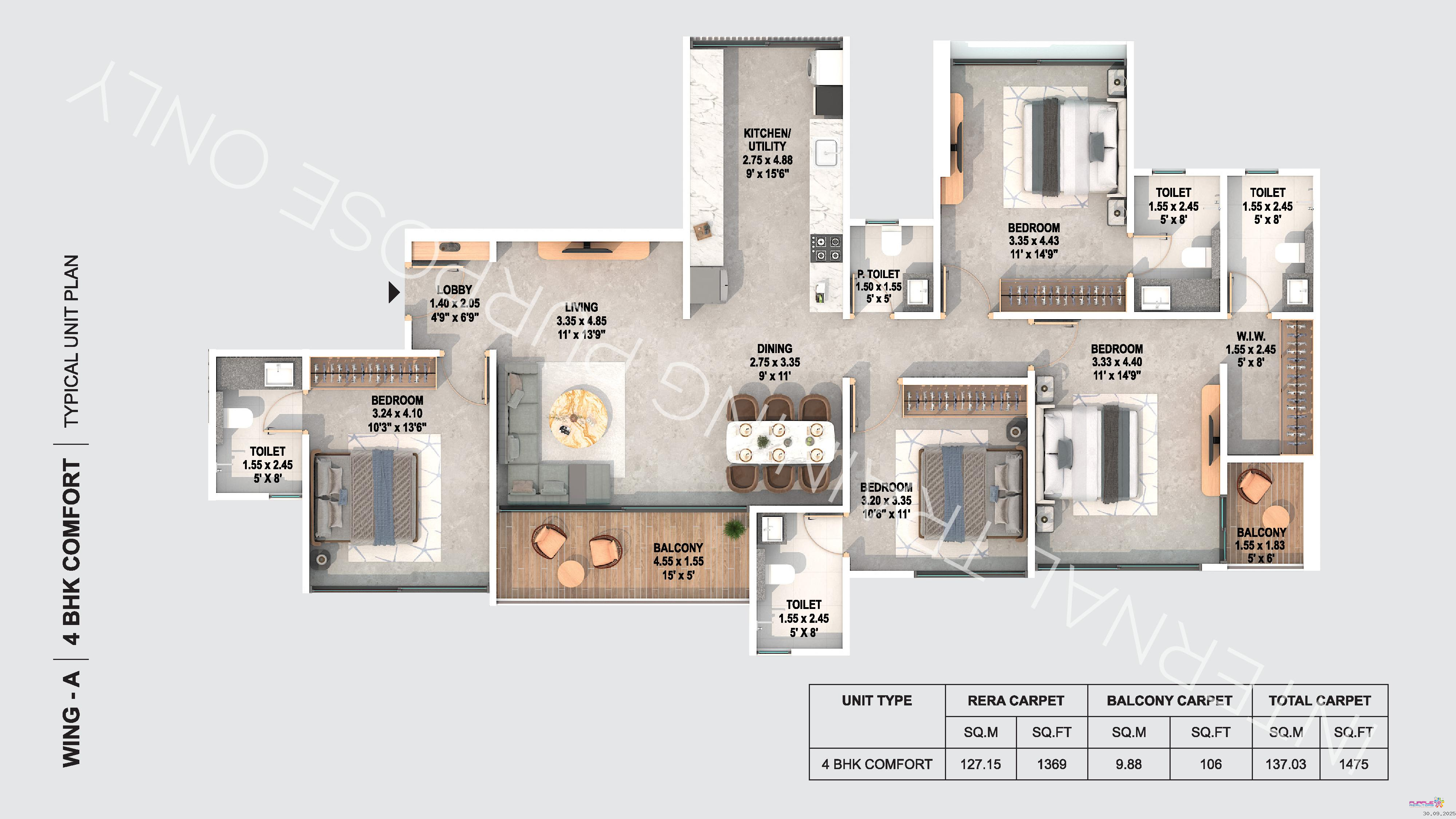 4 BHK | 1600-1625 sq.ft. carpet – Starting 2.51 Cr (Package) + Floor Rise
