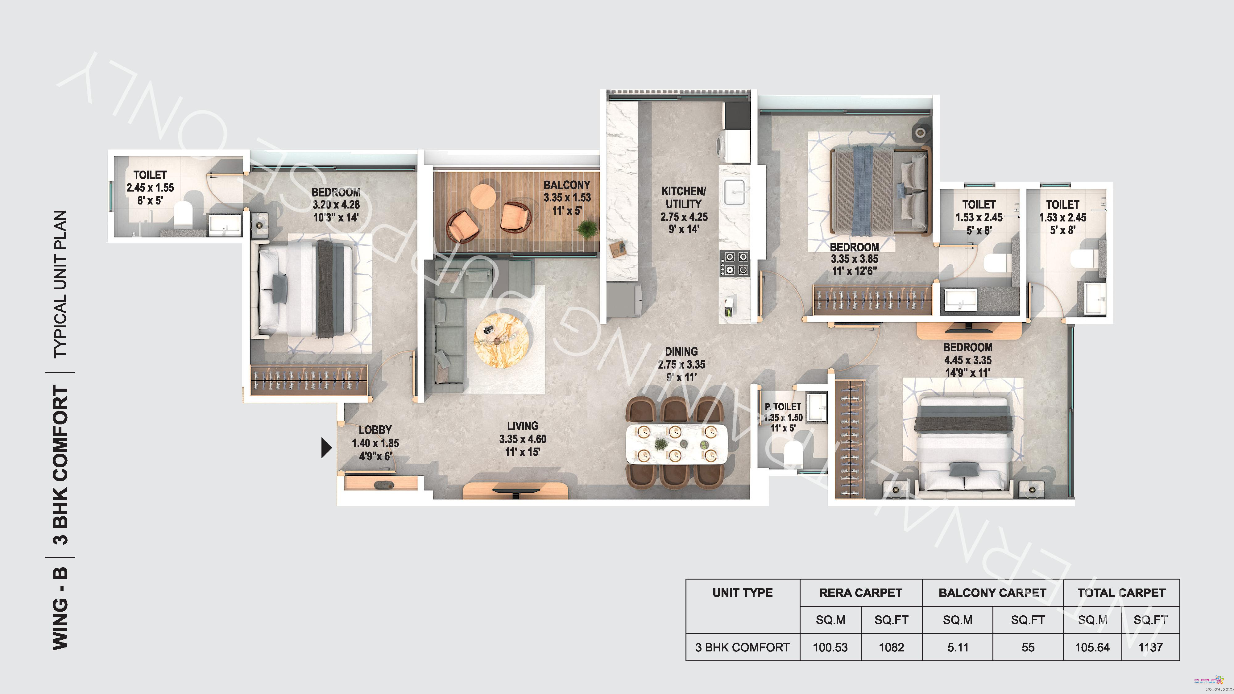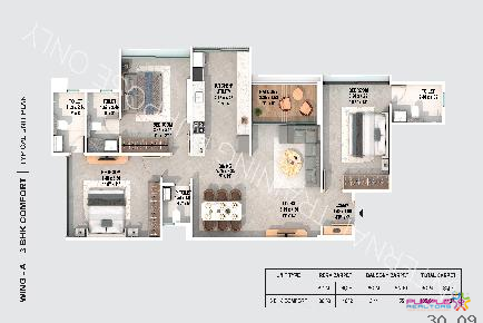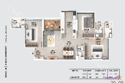 3 BHK | 1125 - 1150 sq.ft. carpet – Starting 1.77 Cr (Package) + Floor Rise