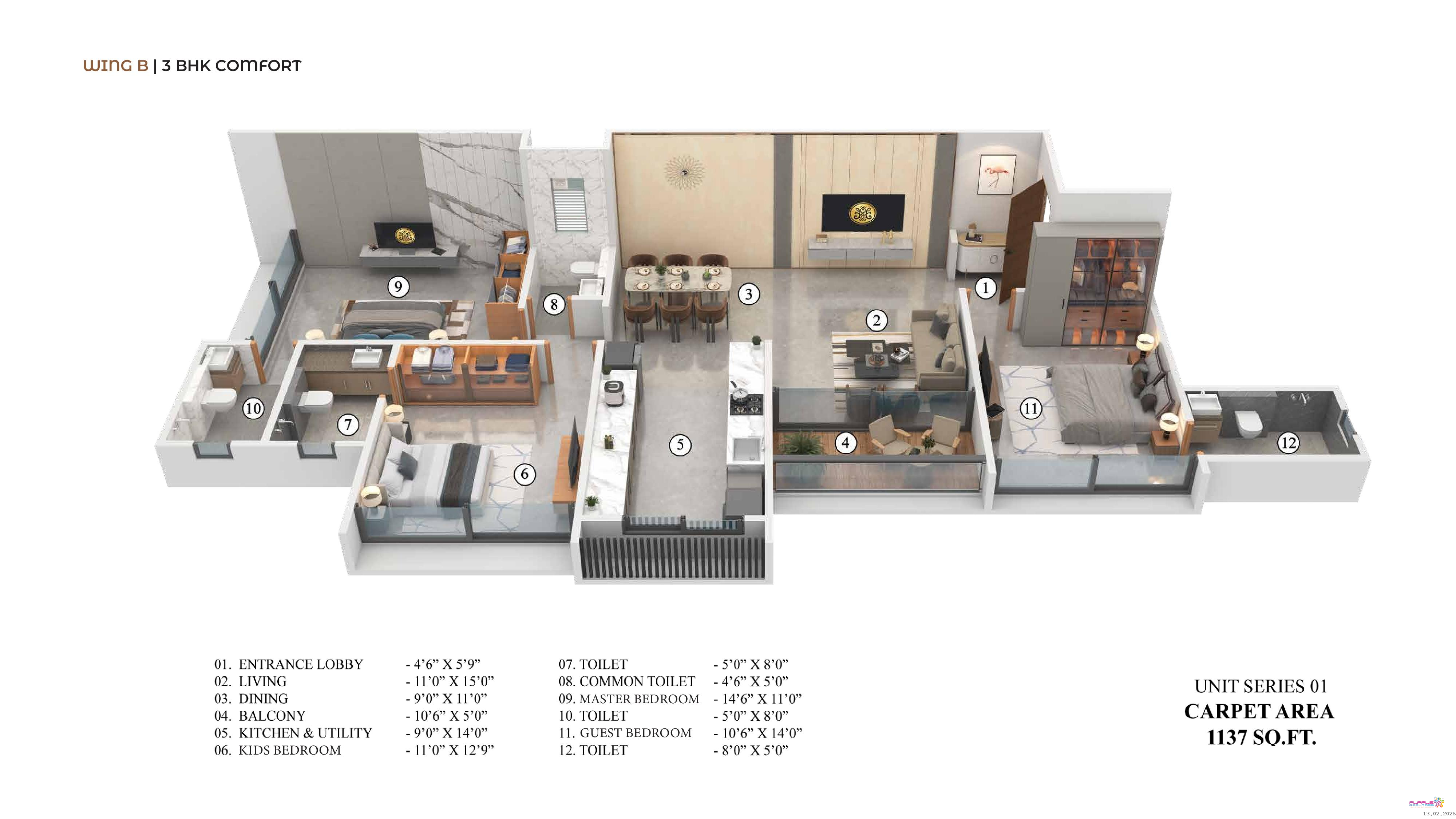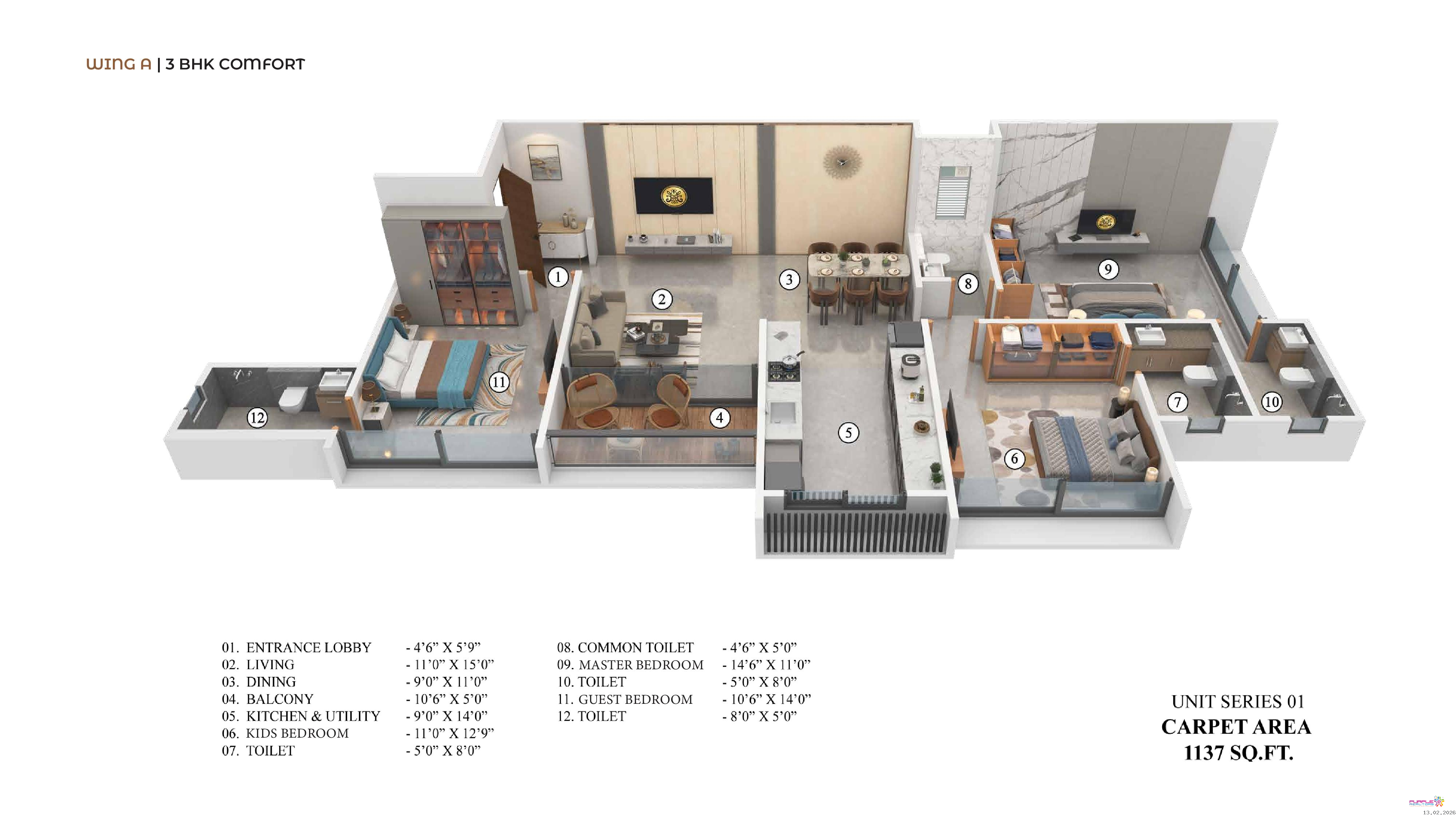 3 BHK | 1137 sq.ft. carpet – Starting ?1.85 Cr (Package) + Floor Rise