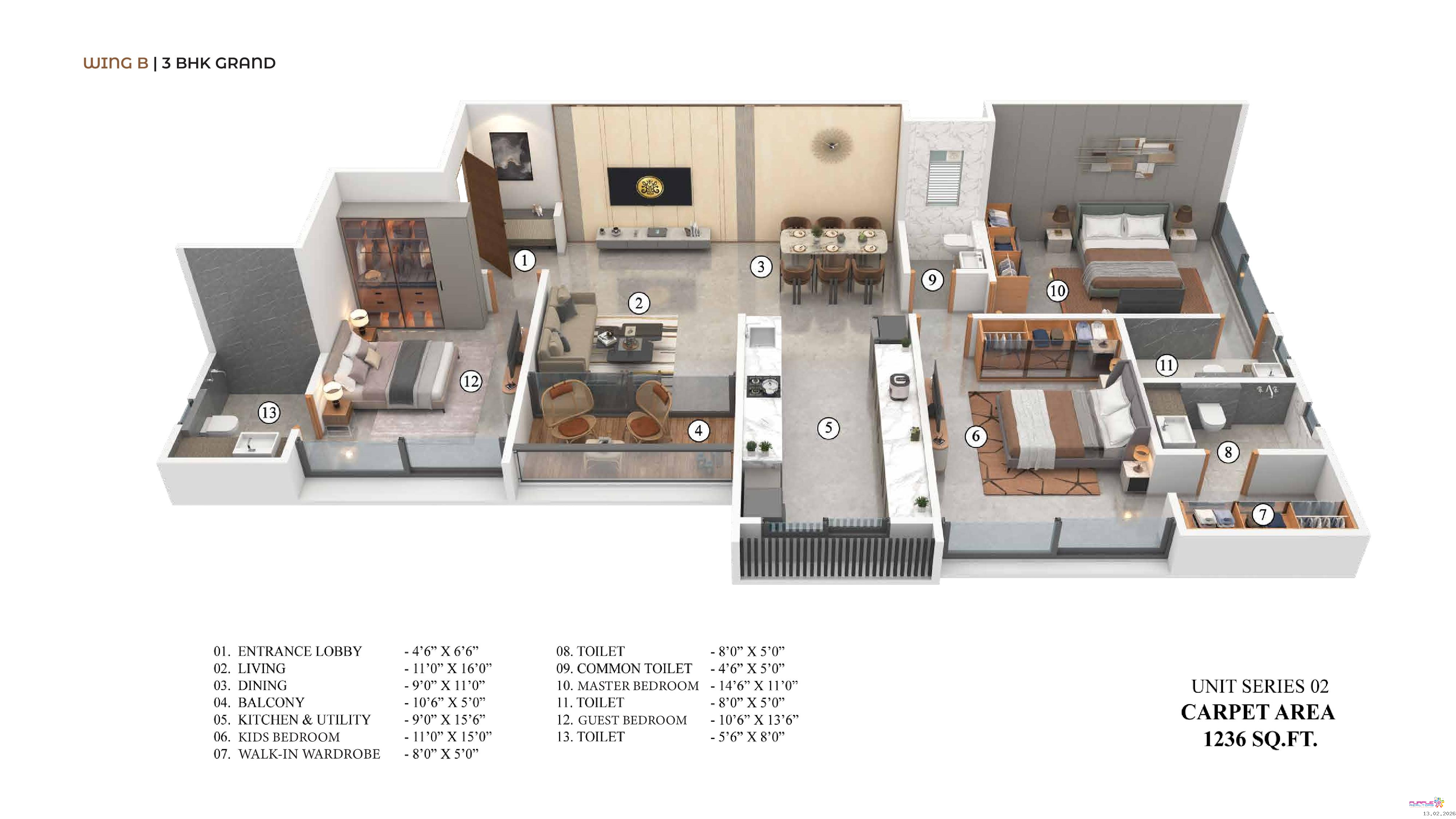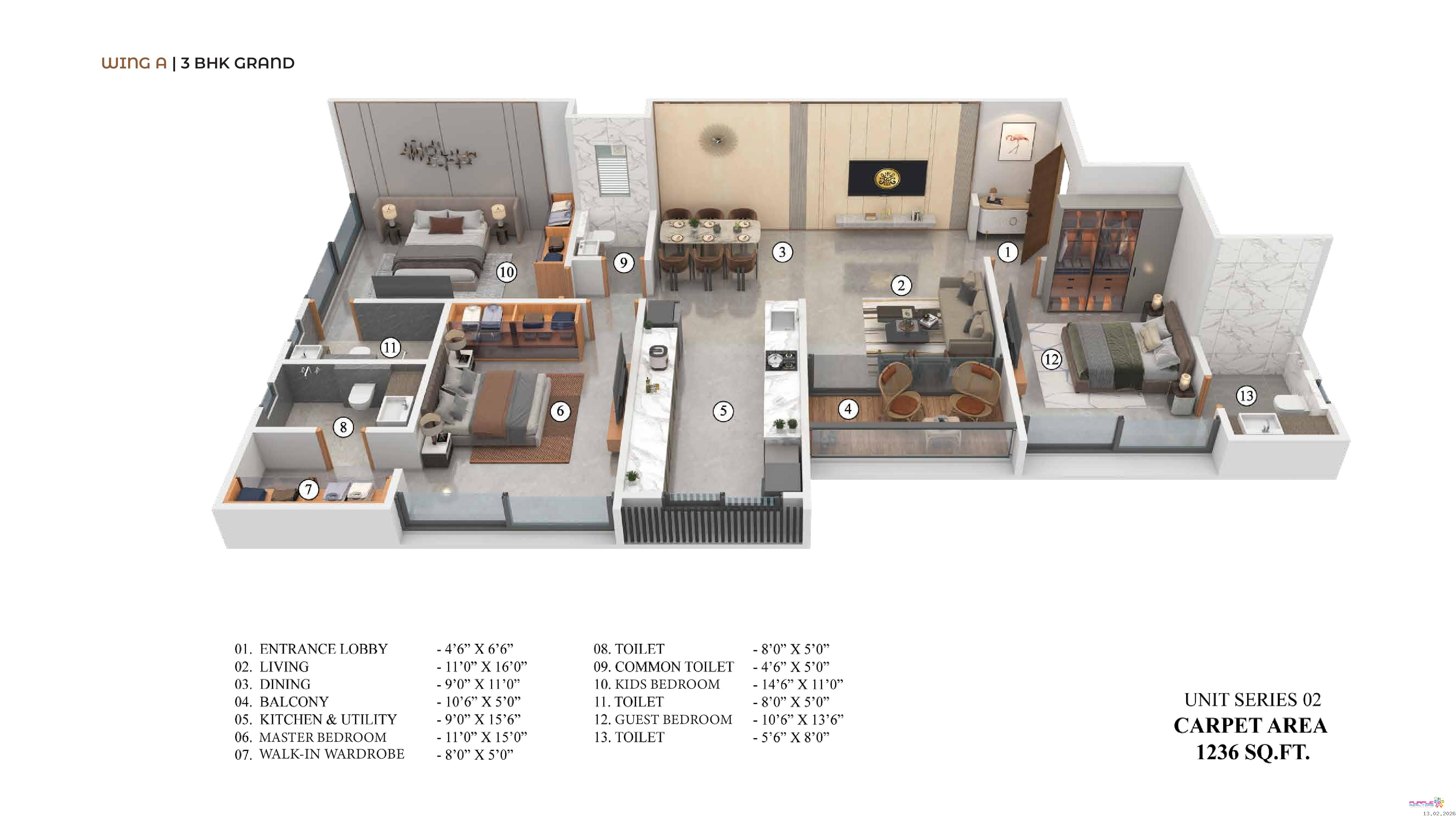 3 BHK | 1236 sq.ft. carpet – Starting ?2.01 Cr (Package) + Floor Rise