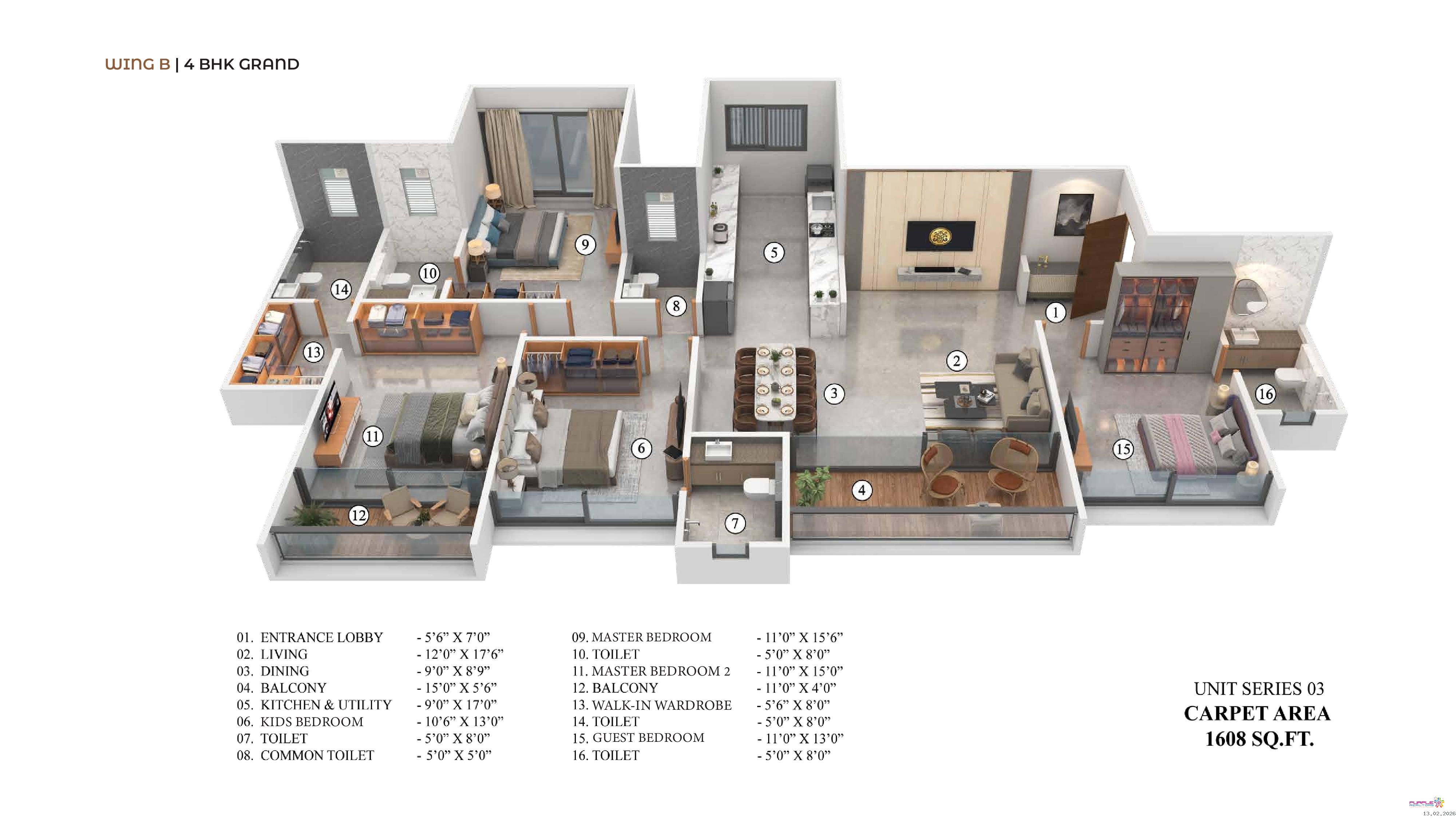 4 BHK | 1608 sq.ft. carpet – Starting ?2.62 Cr (Package) + Floor Rise