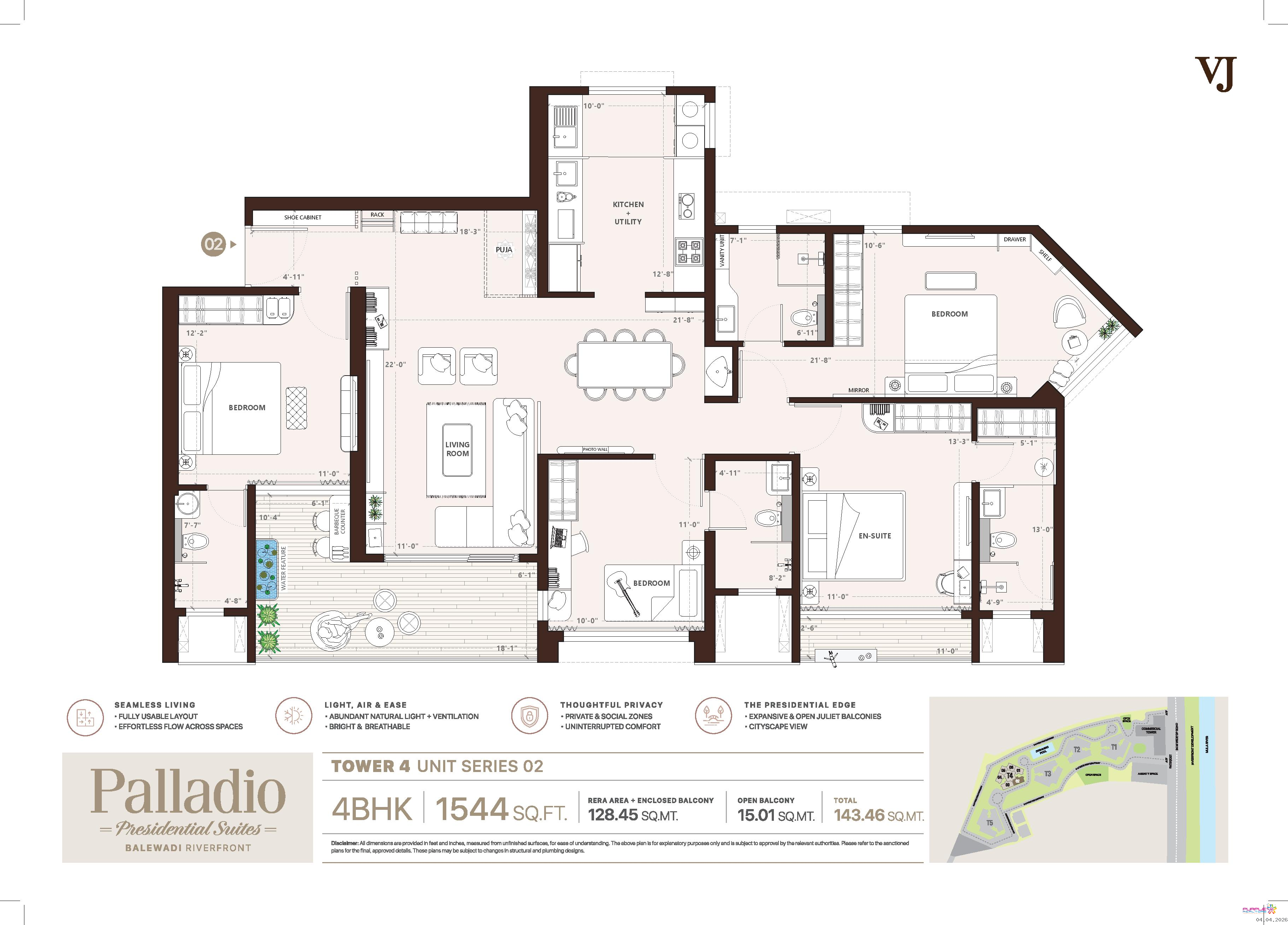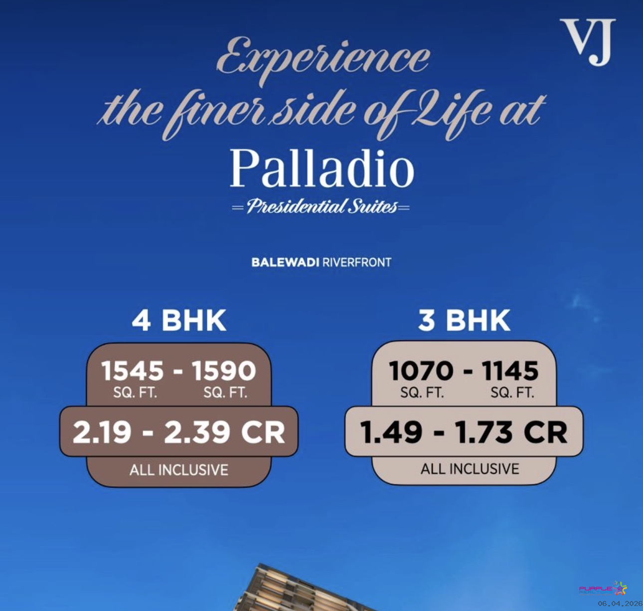 Address: VJ Palladio Presidential Suites Balewadi S.No. 48/1 to 48/11(part), 45/1/1(Part)Balewadi at Balewadi, Haveli, Pune, 411045
