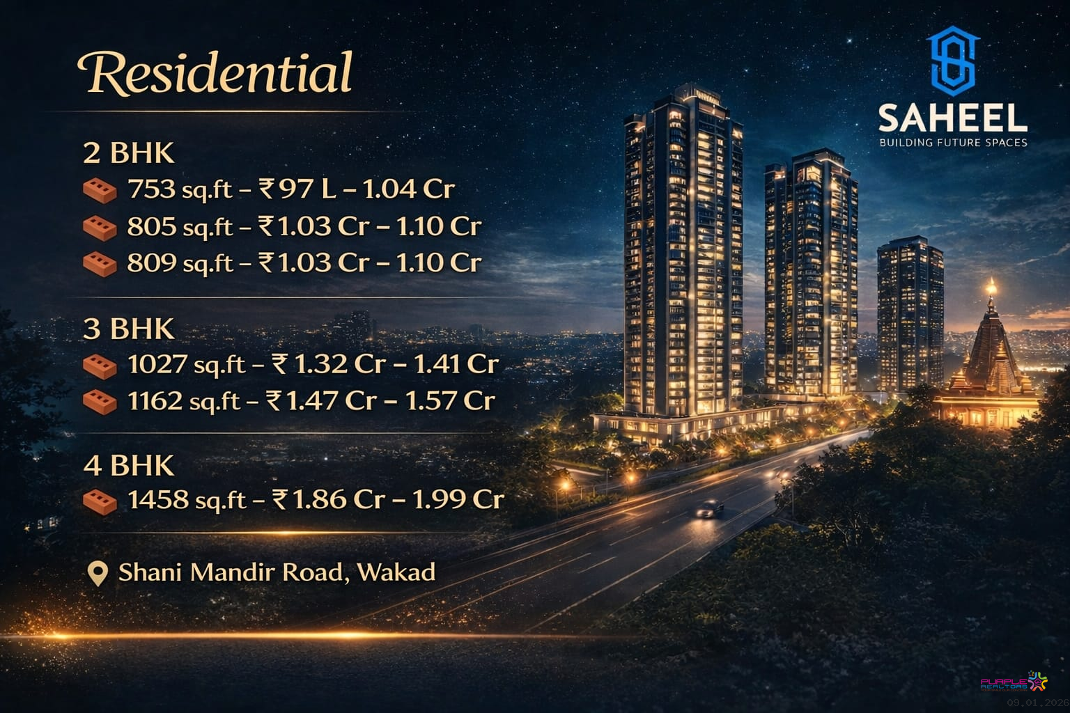 Address: Saheel 5 Star Shani Mandir Rd, Wakad, Pune, Pimpri-Chinchwad, Maharashtra 411057 S. NO. 111/1/2, BESIDE INDIRA SCHOOL, DOWNTOWN WAKAD, PUNE, MAHARASHTRA – 411033