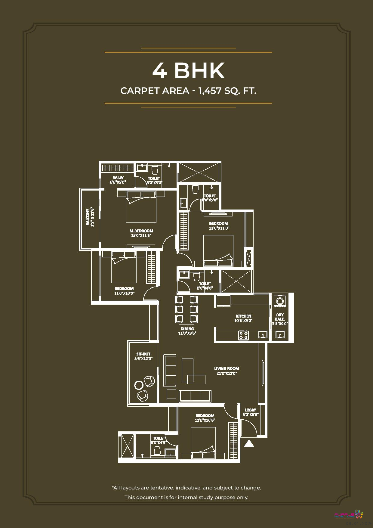 4 BHK - Carpet Area: 1458 sq.ft. - 1.86 cr Onwards