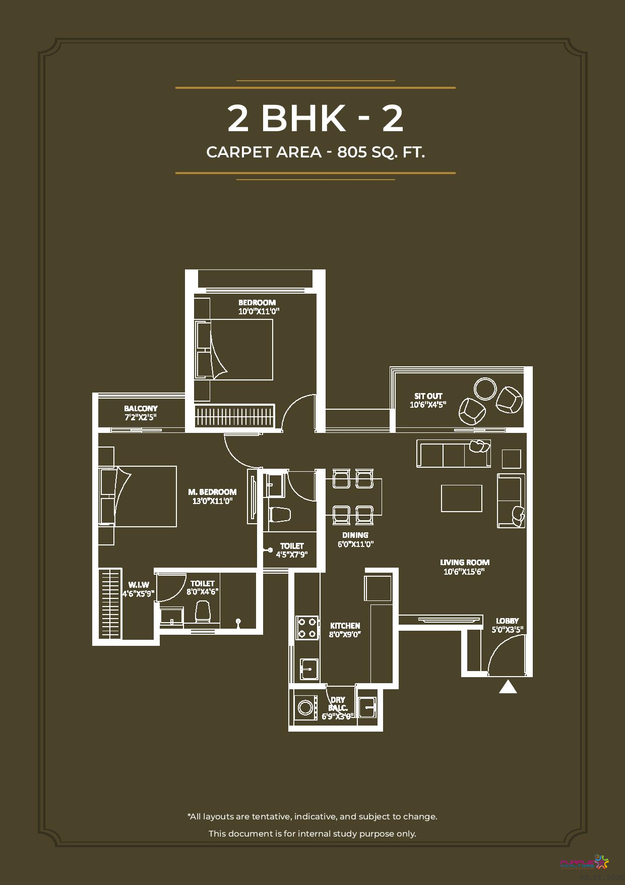 2 BHK - Carpet Area: 753 to 809 sq.ft - 97 Lac Onwards