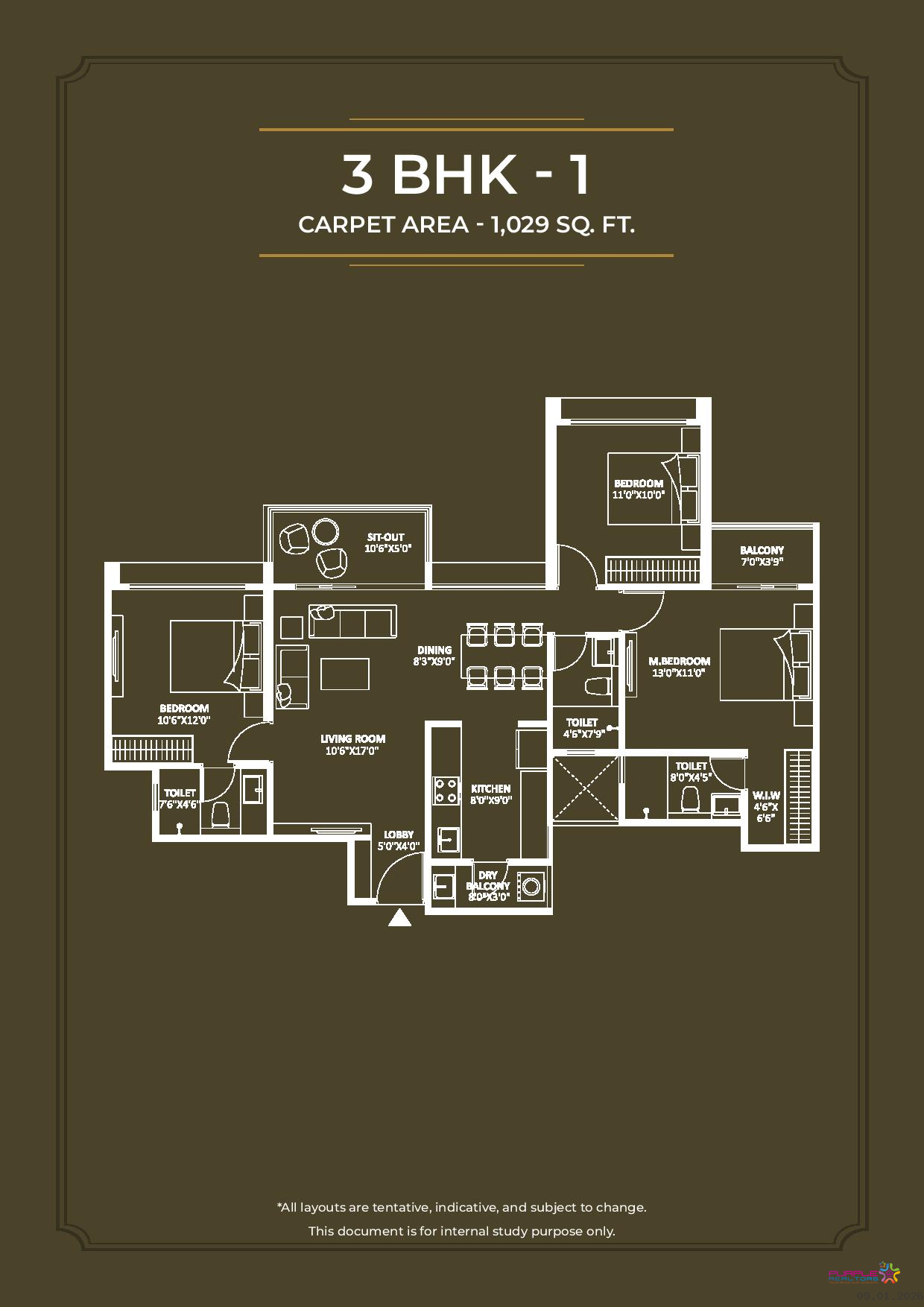 3 BHK - Carpet Area: 1027 to 1162 sq.ft. - 1.47 cr Onwards