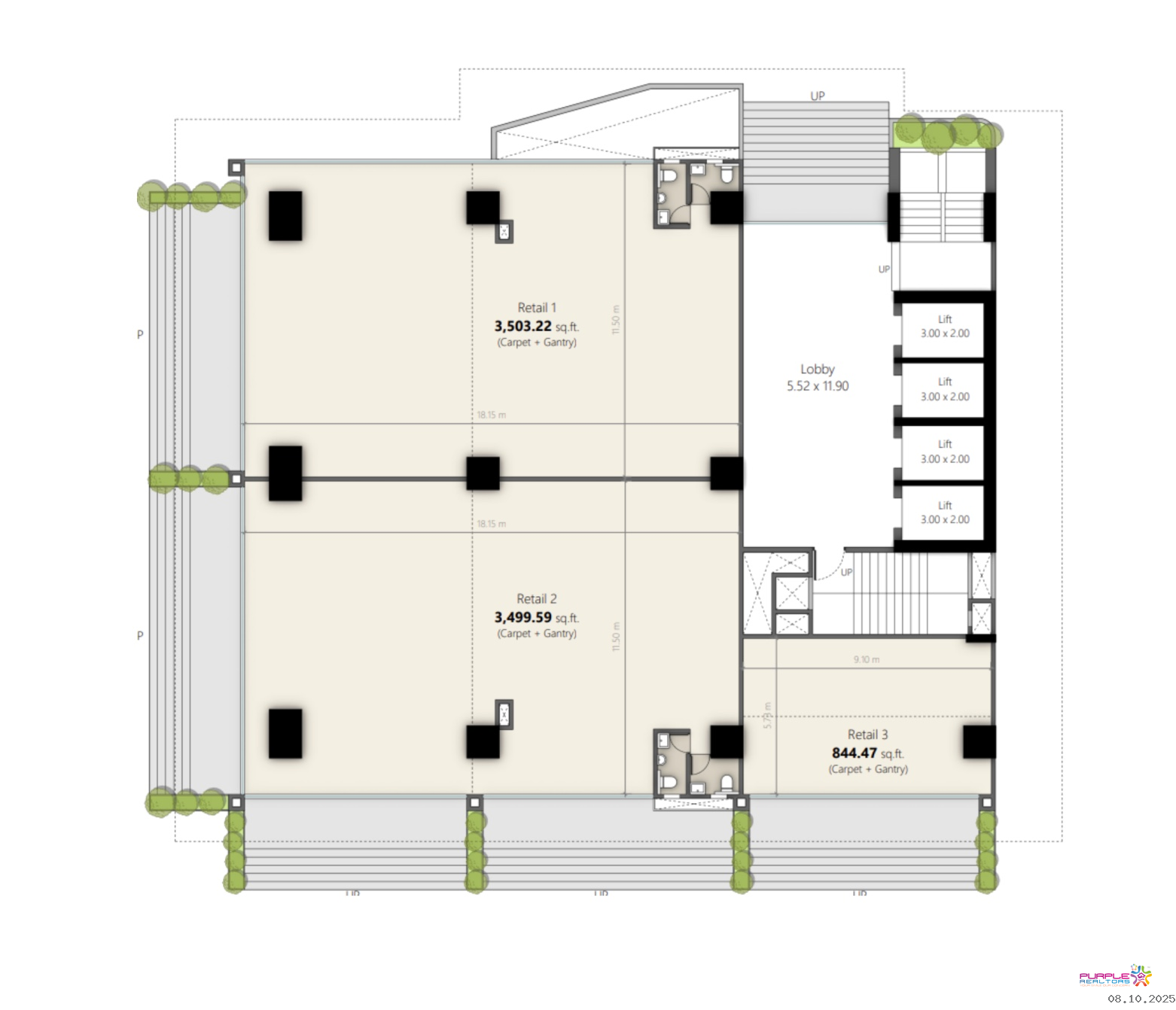 Retail - Carpet 844 sqft & 3499 sqft - Rent 225/- sqft on carpet area