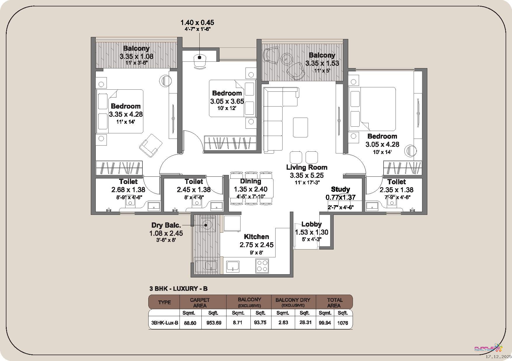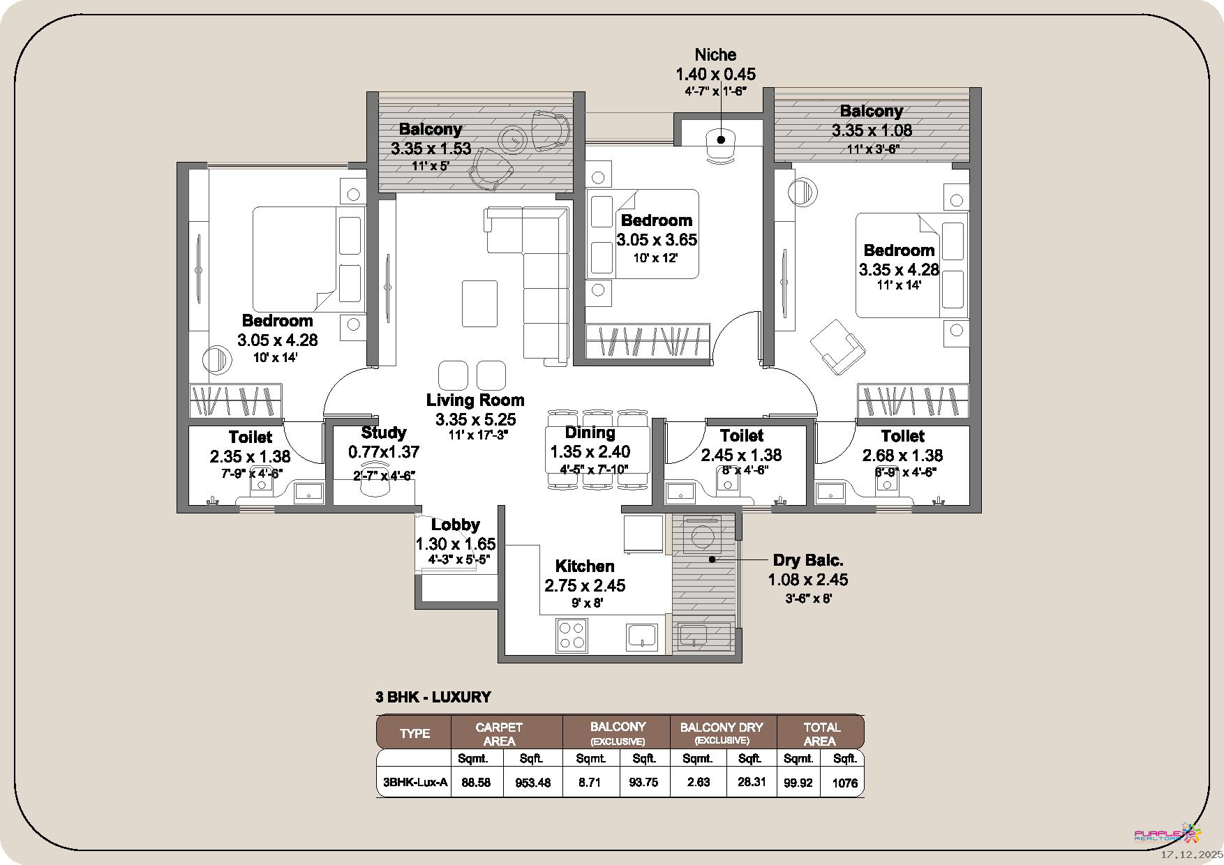 3 BHK Luxury | 1076 sq.ft | 1.65 Cr