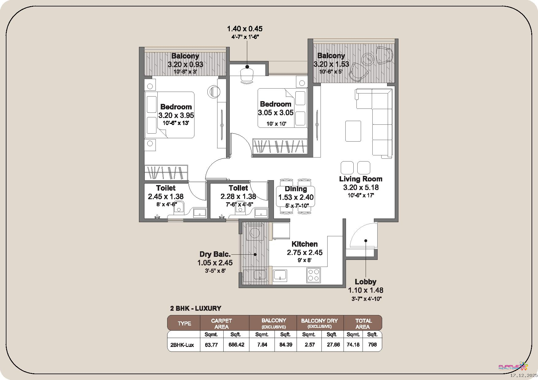 2 BHK Luxury | 798 sq.ft | 1.18 Cr