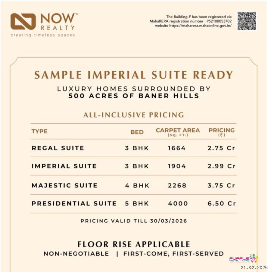 24K Sereno by NOW Realty Promoters and Builders Private Limited ( RERA No E Wing P52100024374 F Wing P52100053702 ) Baner Pune