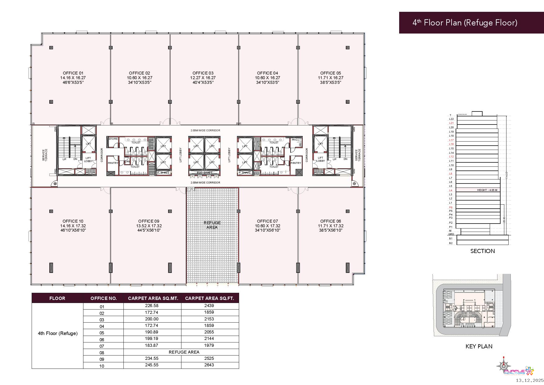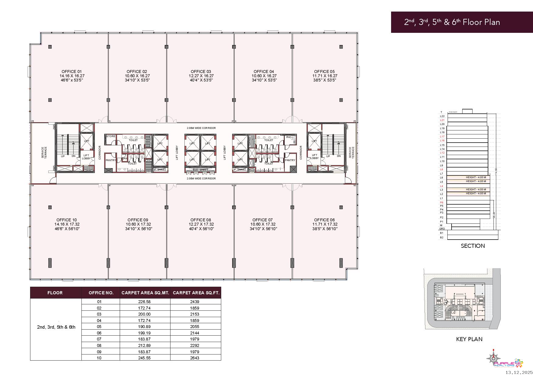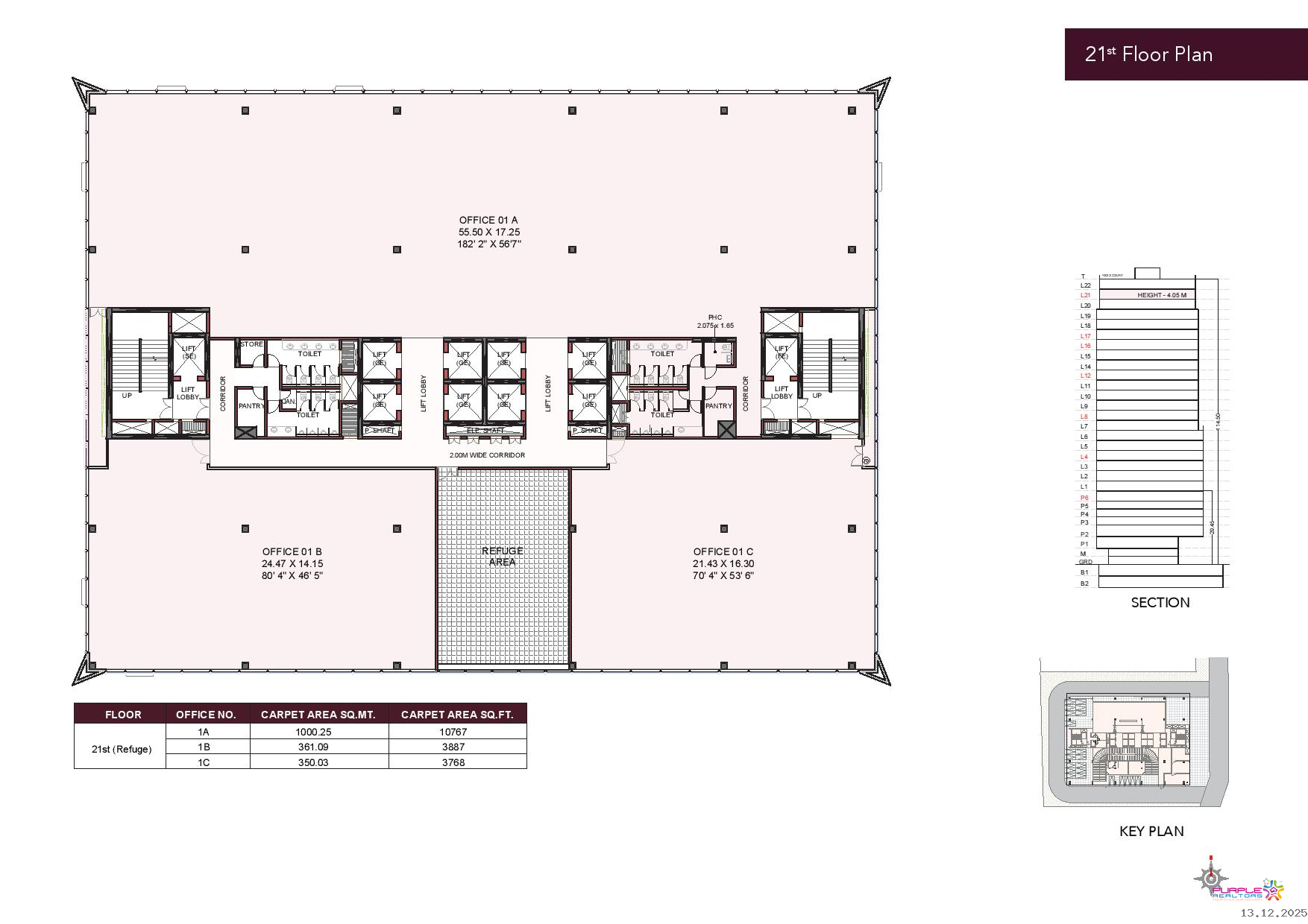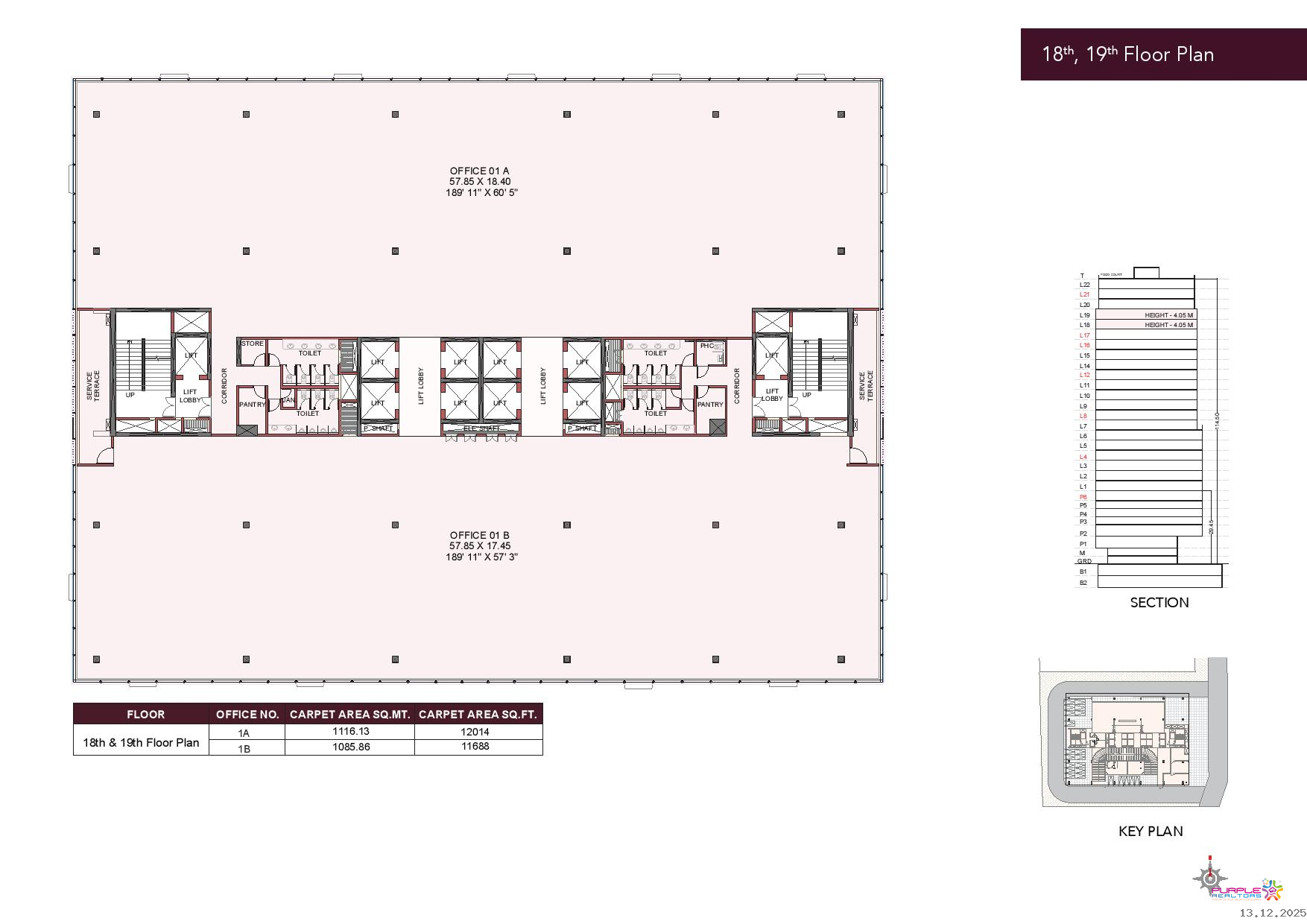No of Floors:3 Basement + Lobby + 5 Level Podium Parking + Amenities + 21 Floors Office Floor