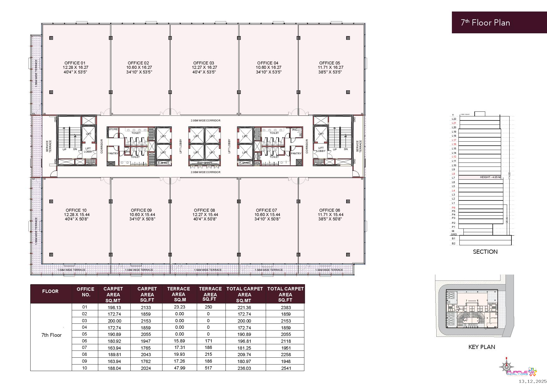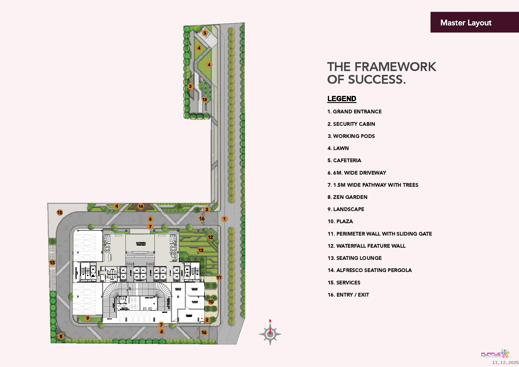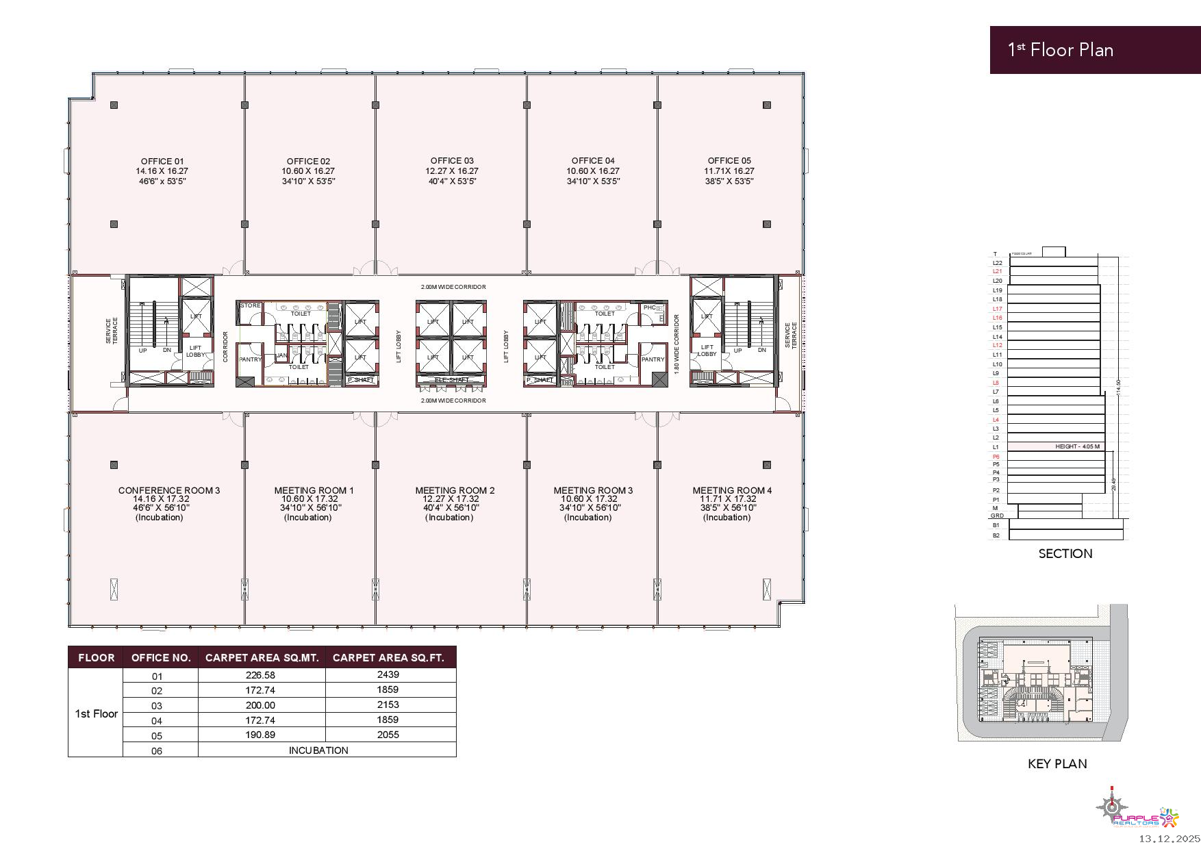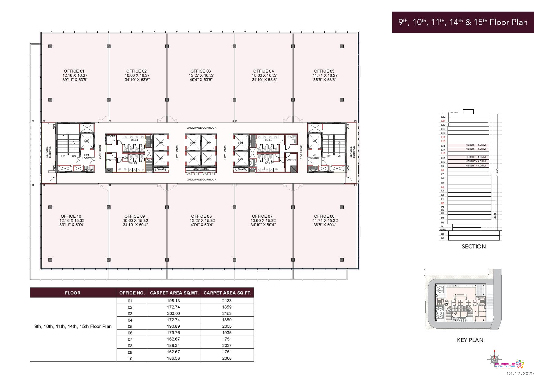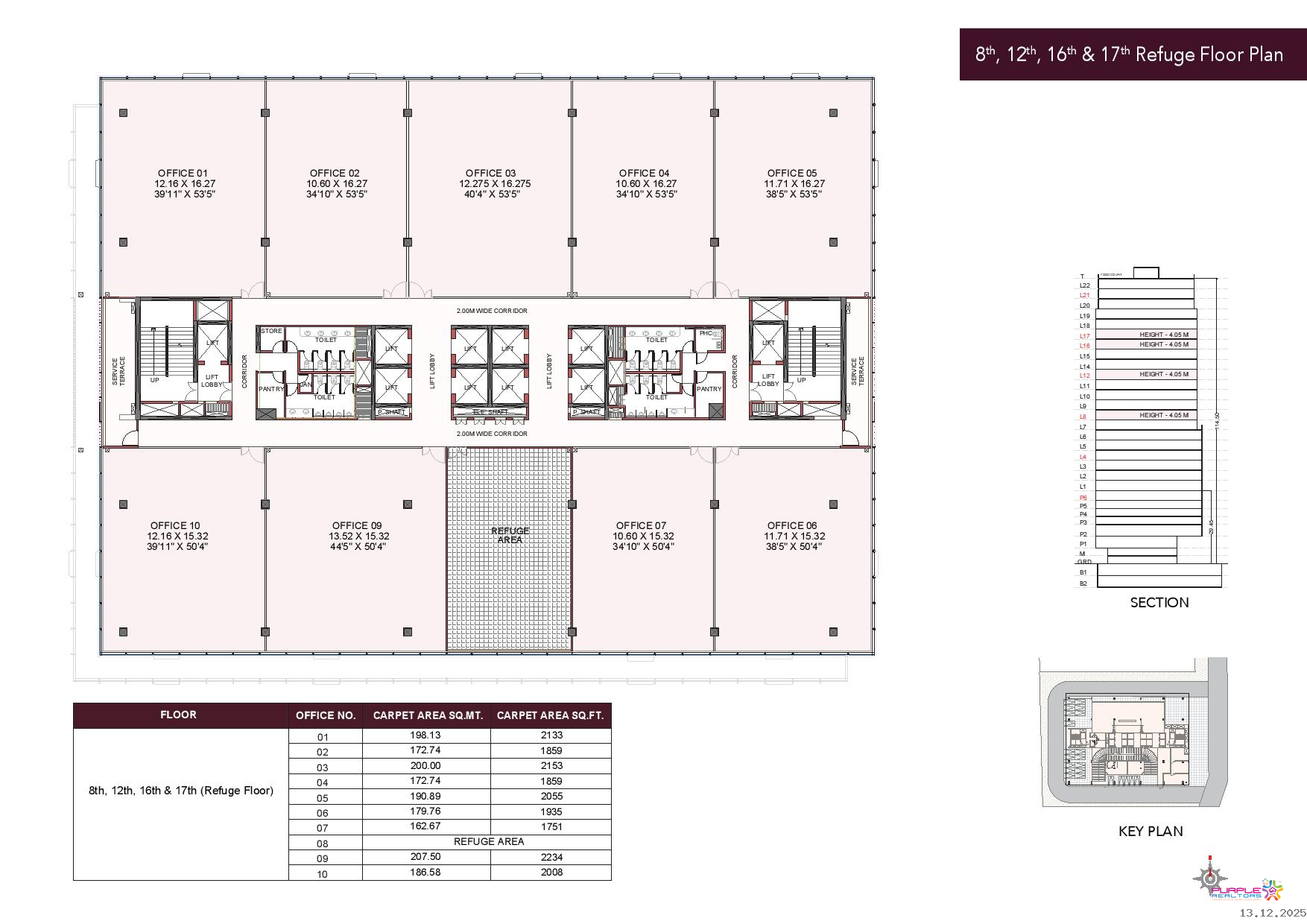 No of Floors:3 Basement + Lobby + 5 Level Podium Parking + Amenities + 21 Floors Office Floor