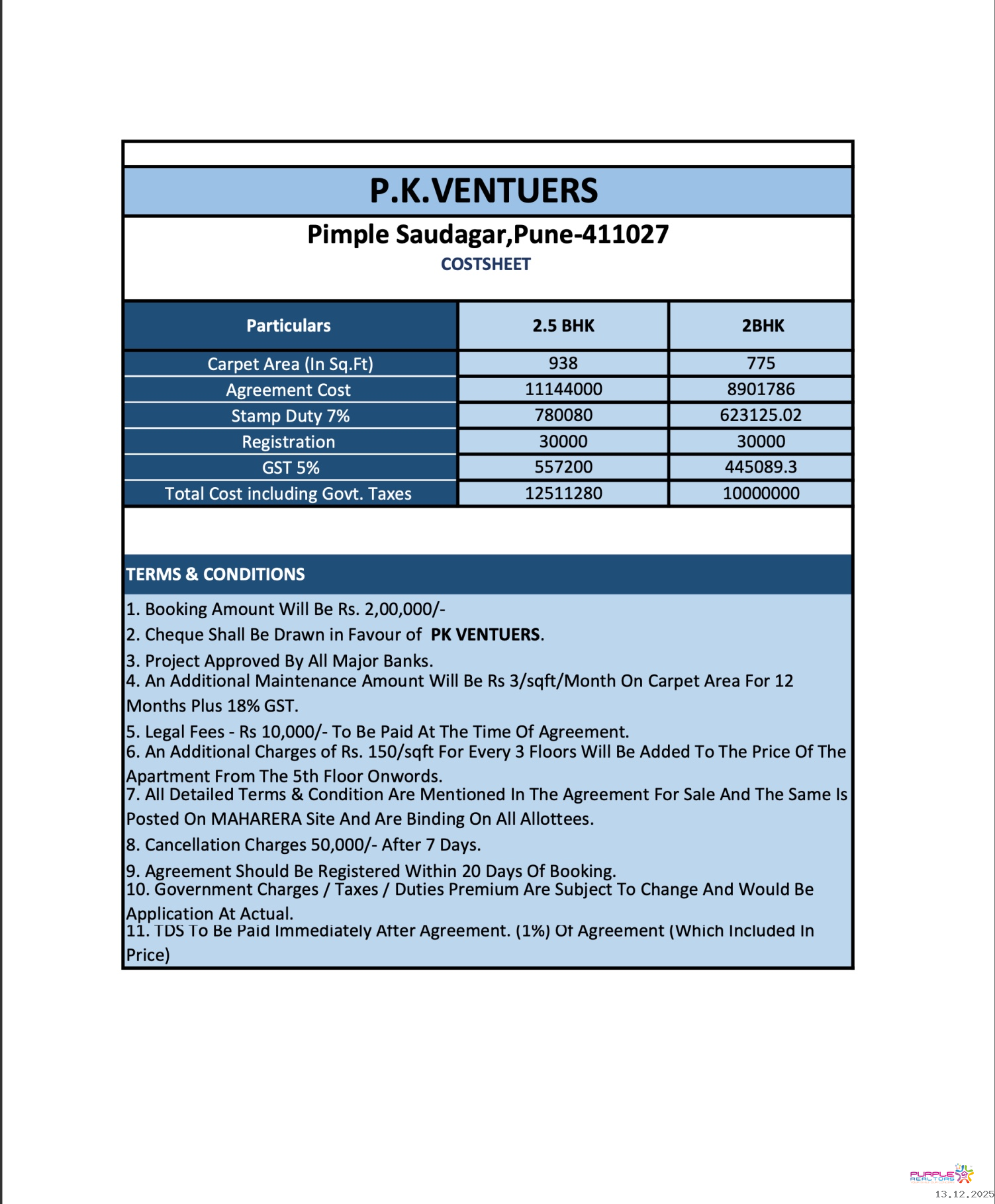 2.5 BHK - Carpet 938 sqft