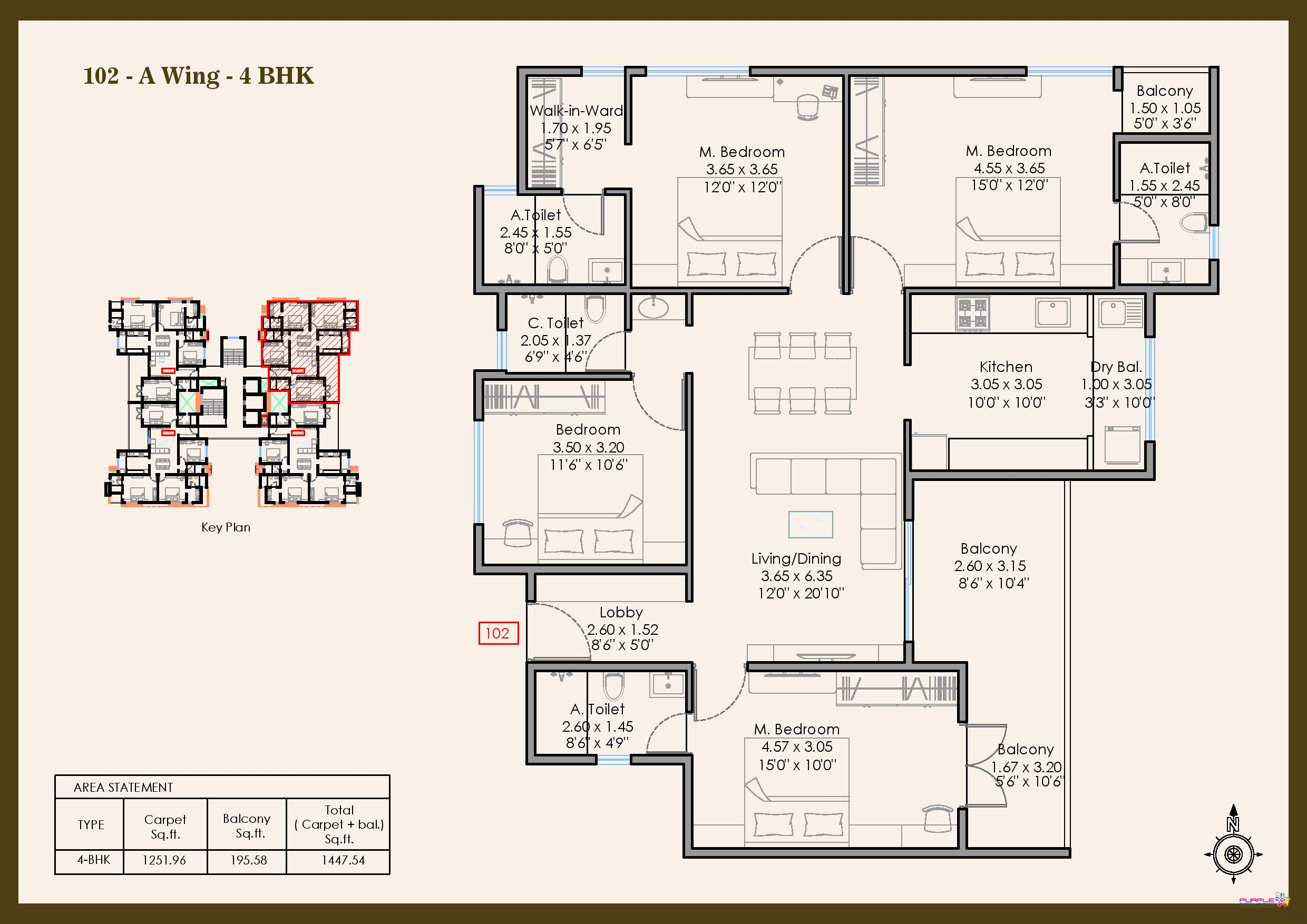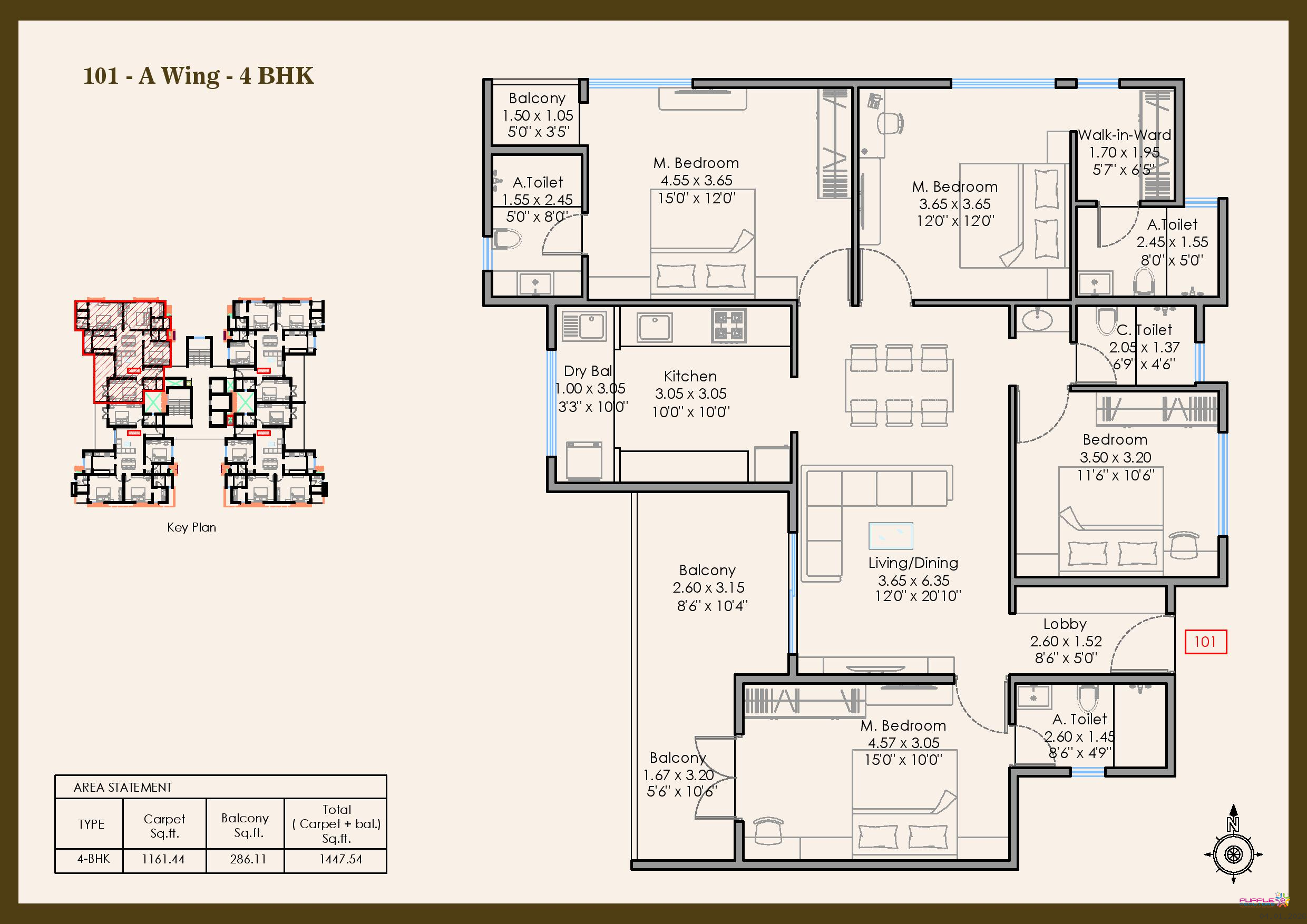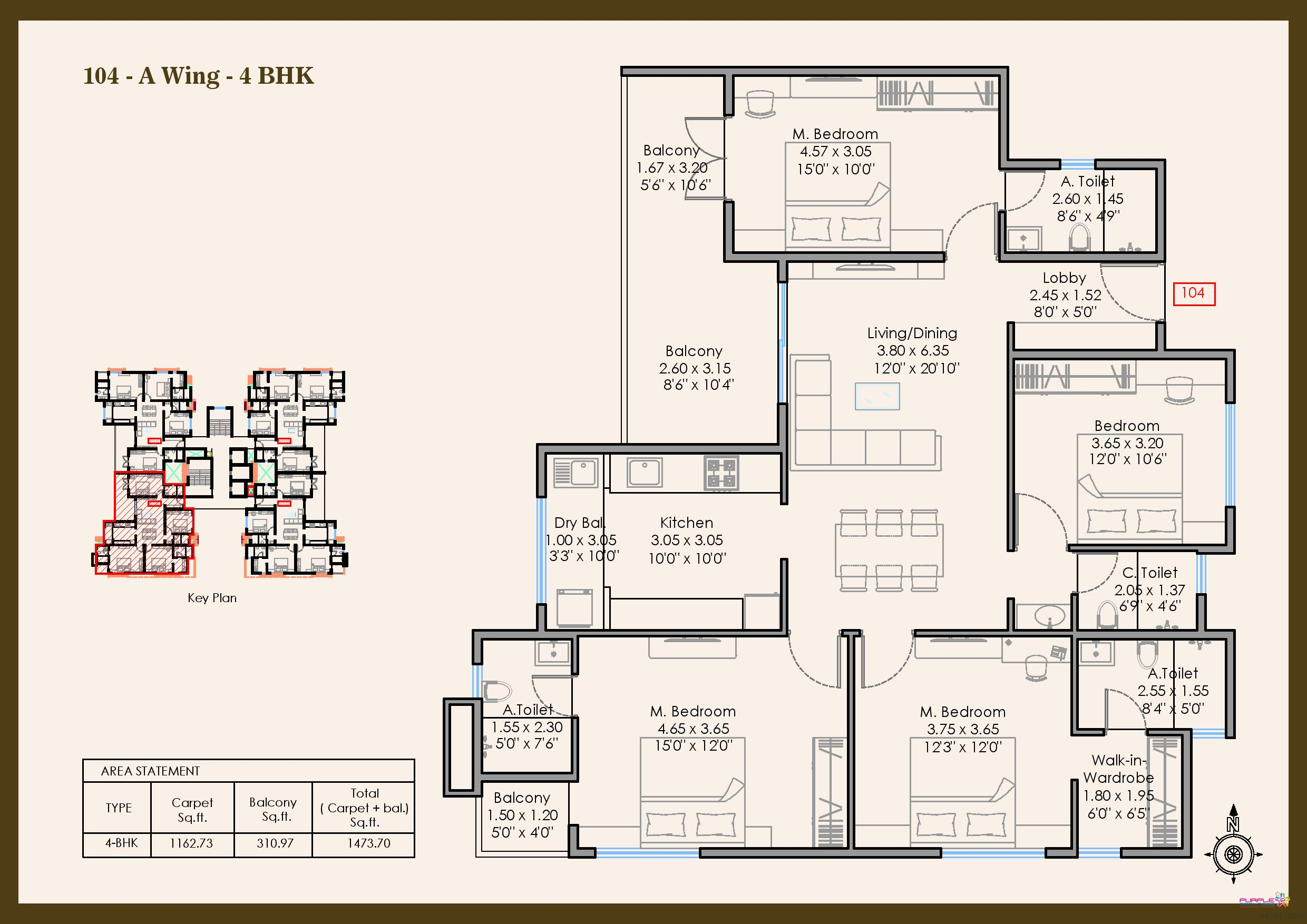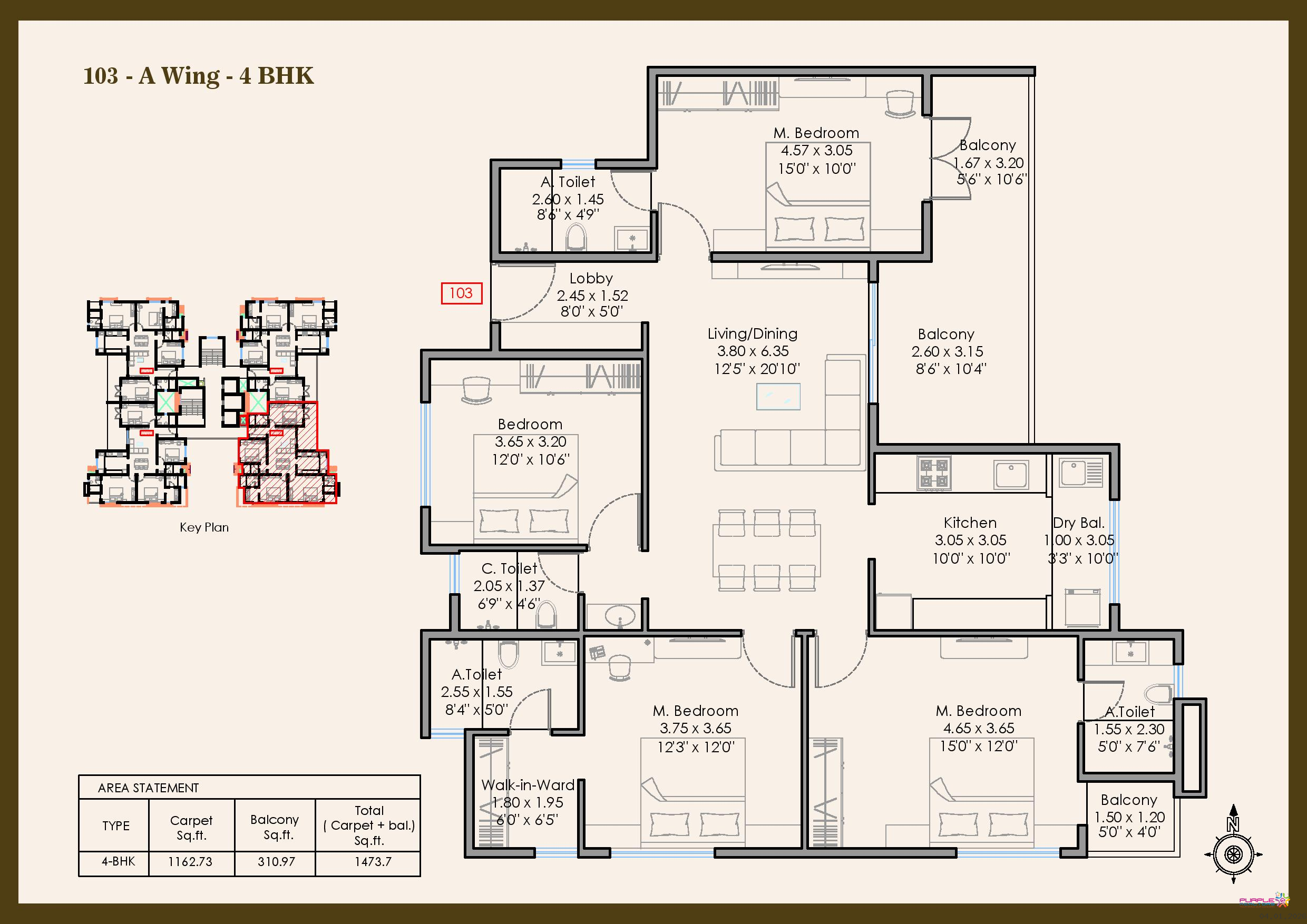 4 BHK - Carpet 1448 to 1474 sqft - 2.41cr Onwards