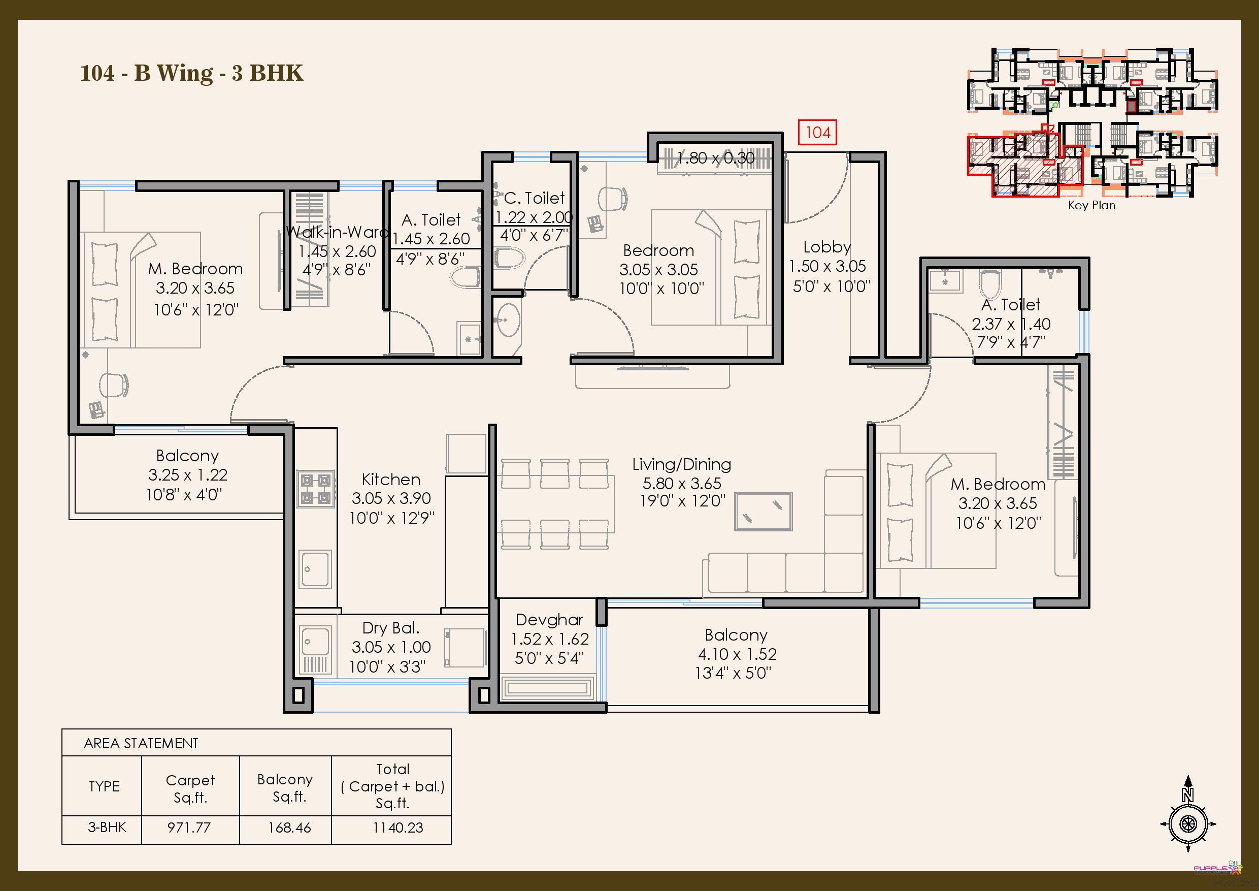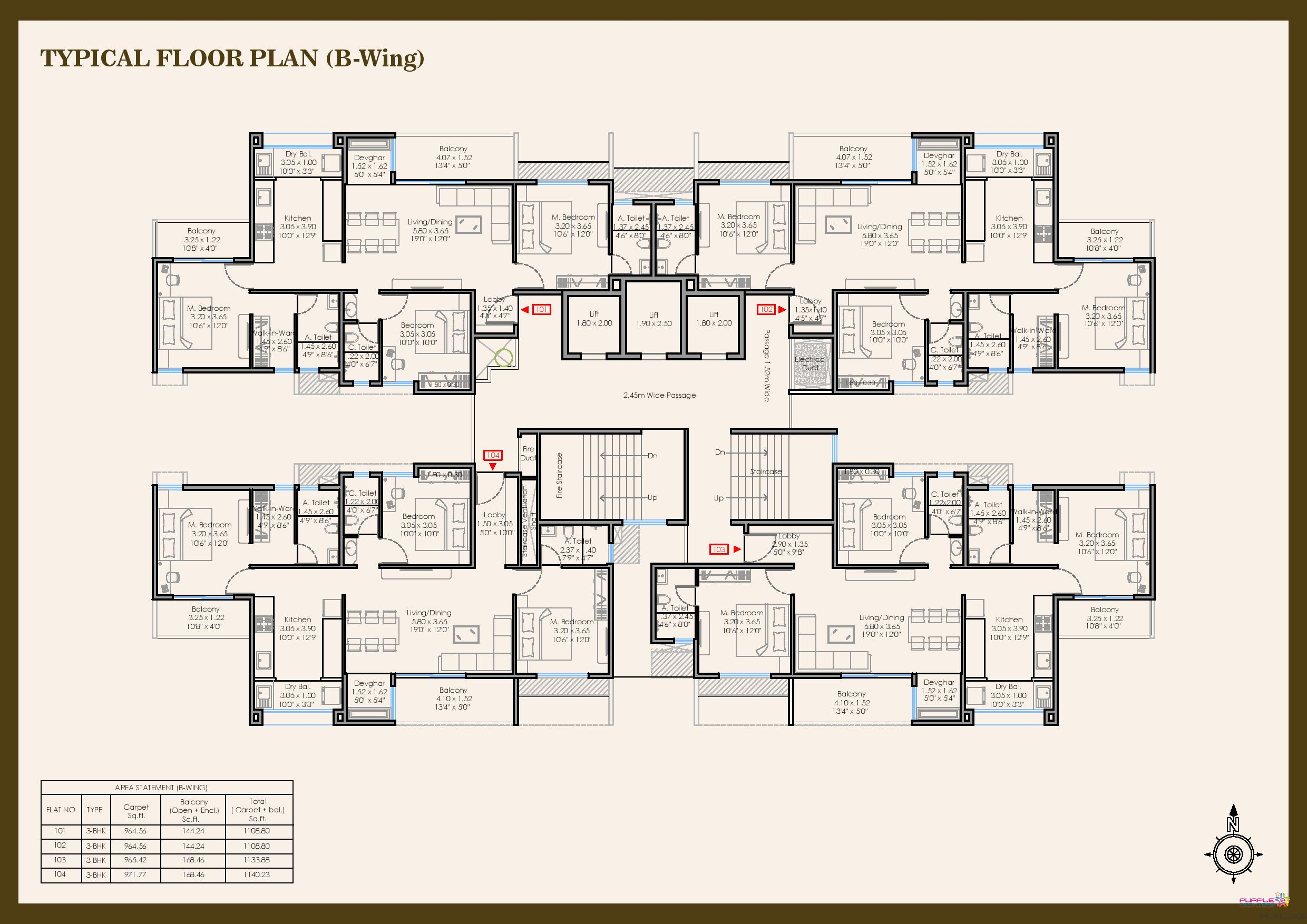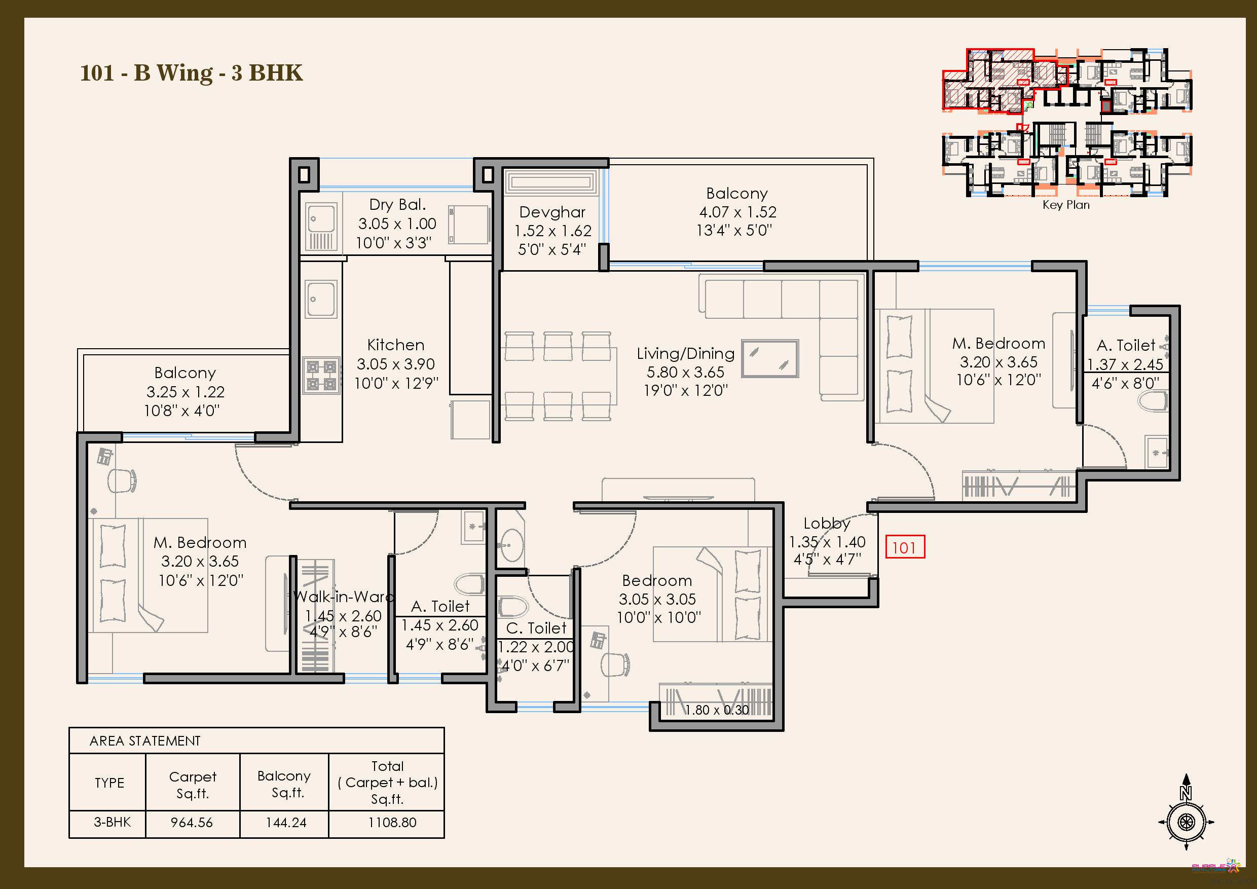 3 BHK - Carpet 1109 to1140 sqft - 1.85cr Onwards