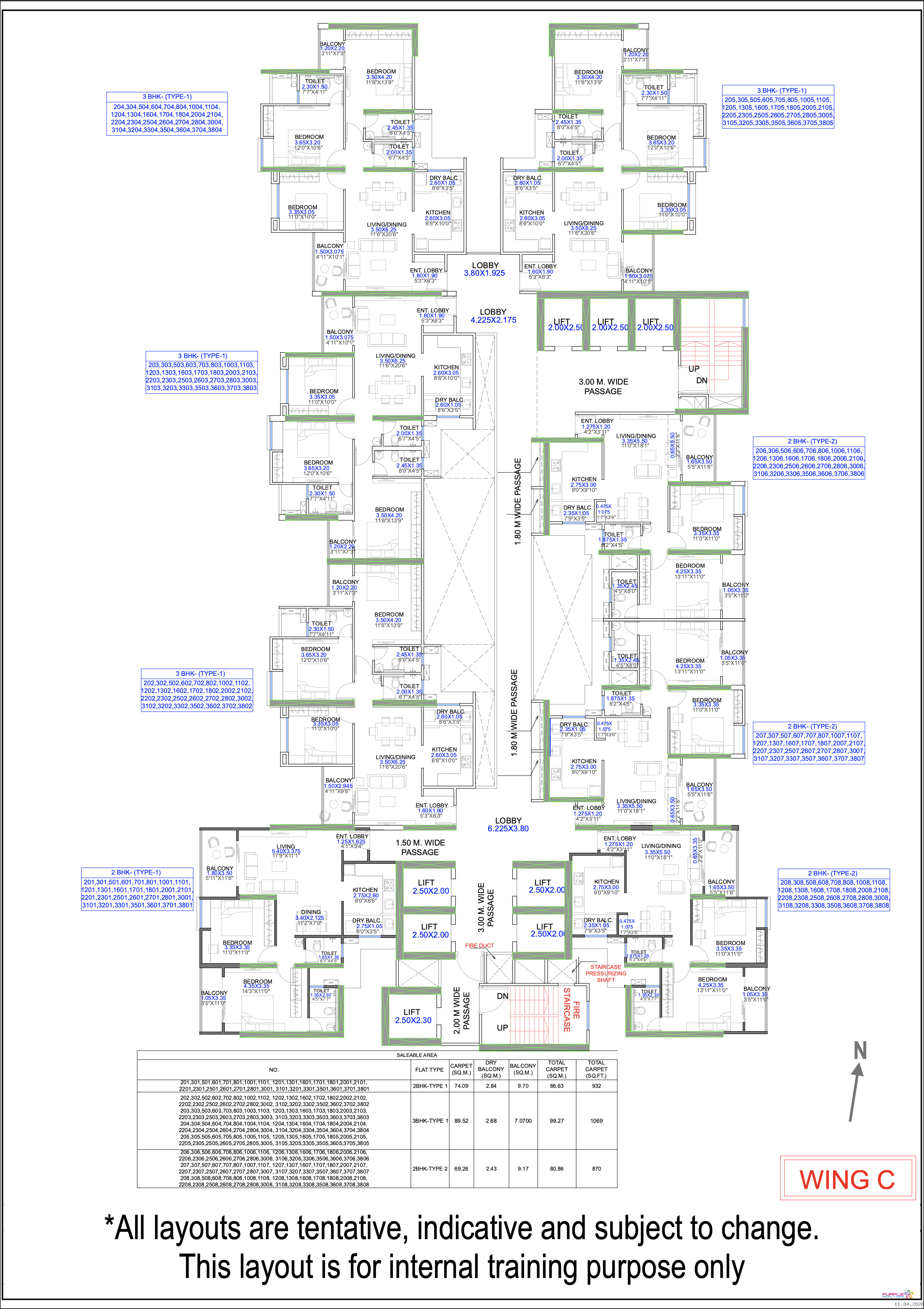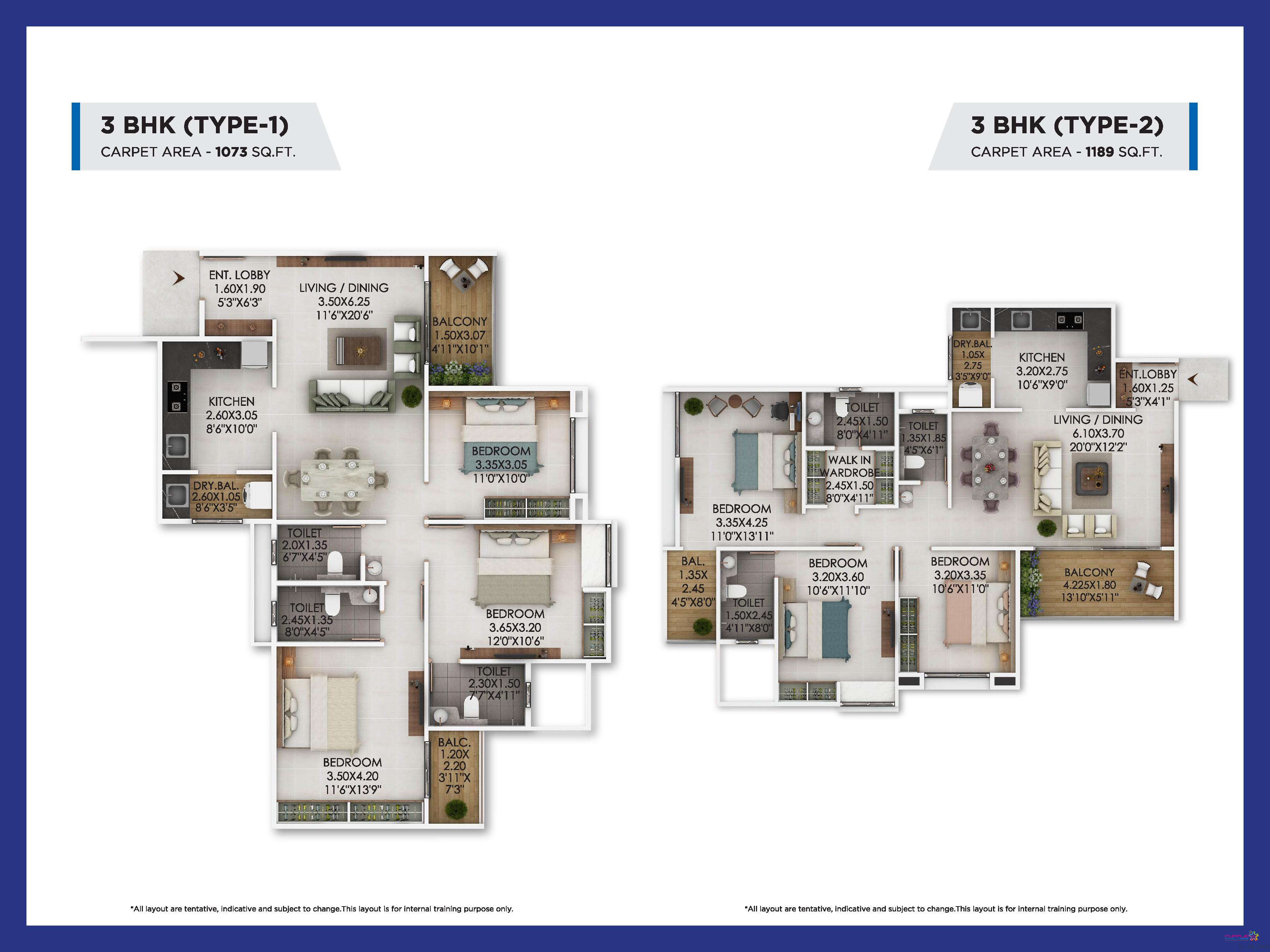 3 BHK - Carpet 1073 to 1189 sqft - 1.51cr Onwards