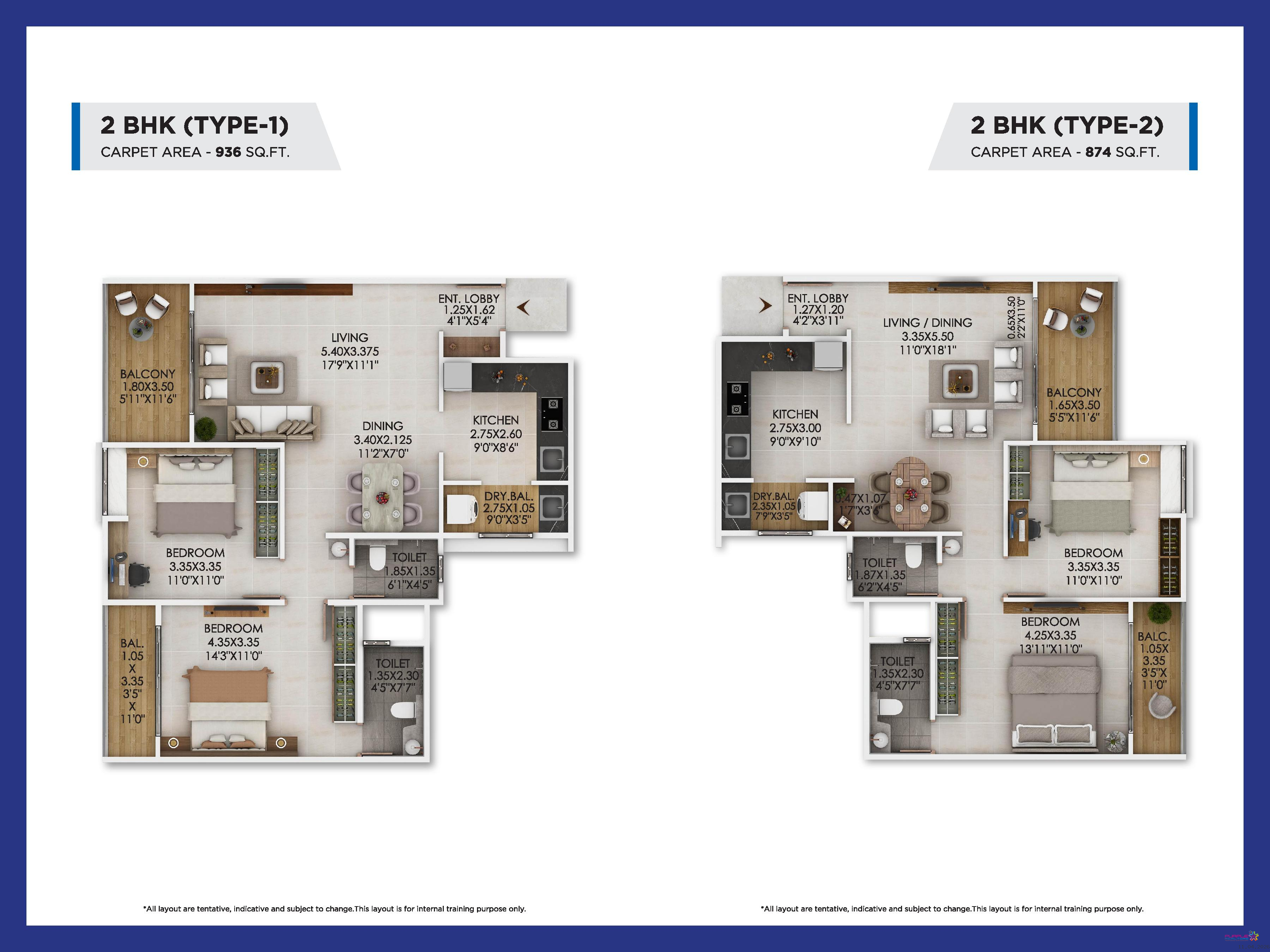 2 BHK - Carpet 740 to 936 sqft - 1.01cr Onwards