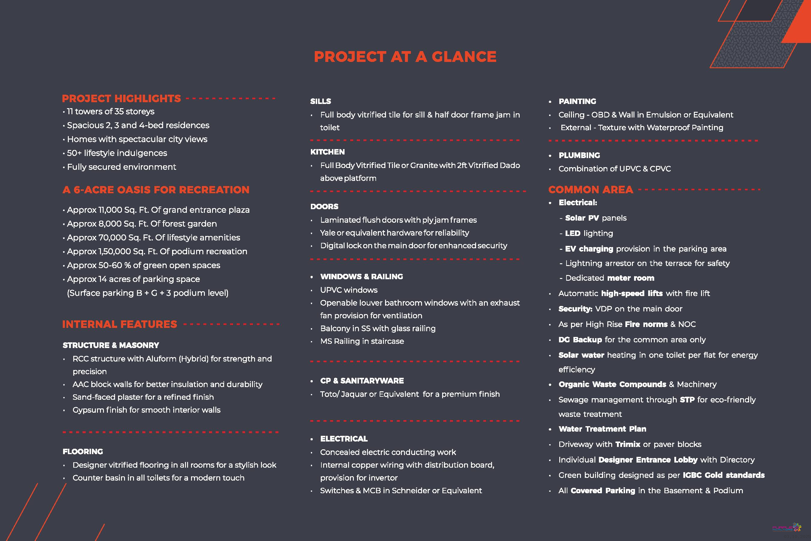 No of Floors:1 BASEMENT + GROUND + 3 PODIUM + 35 FLOORS